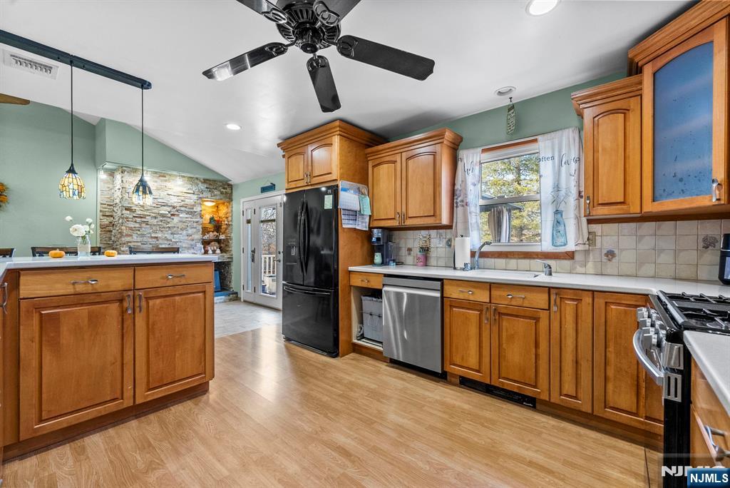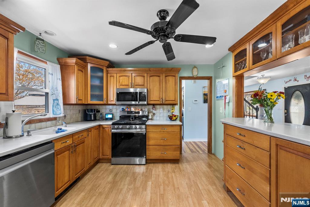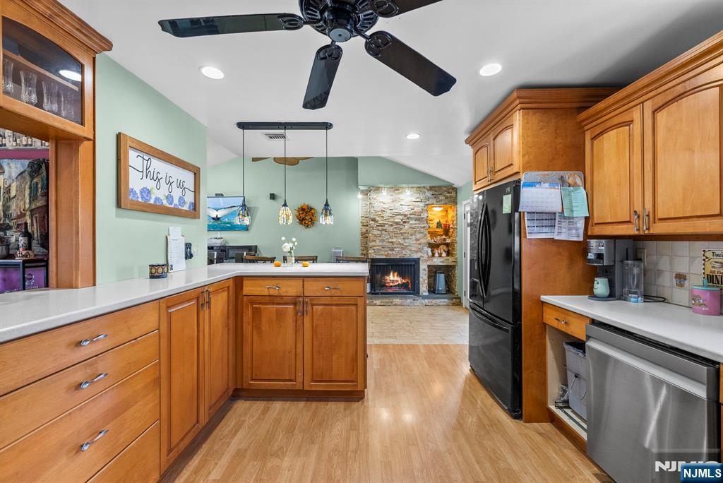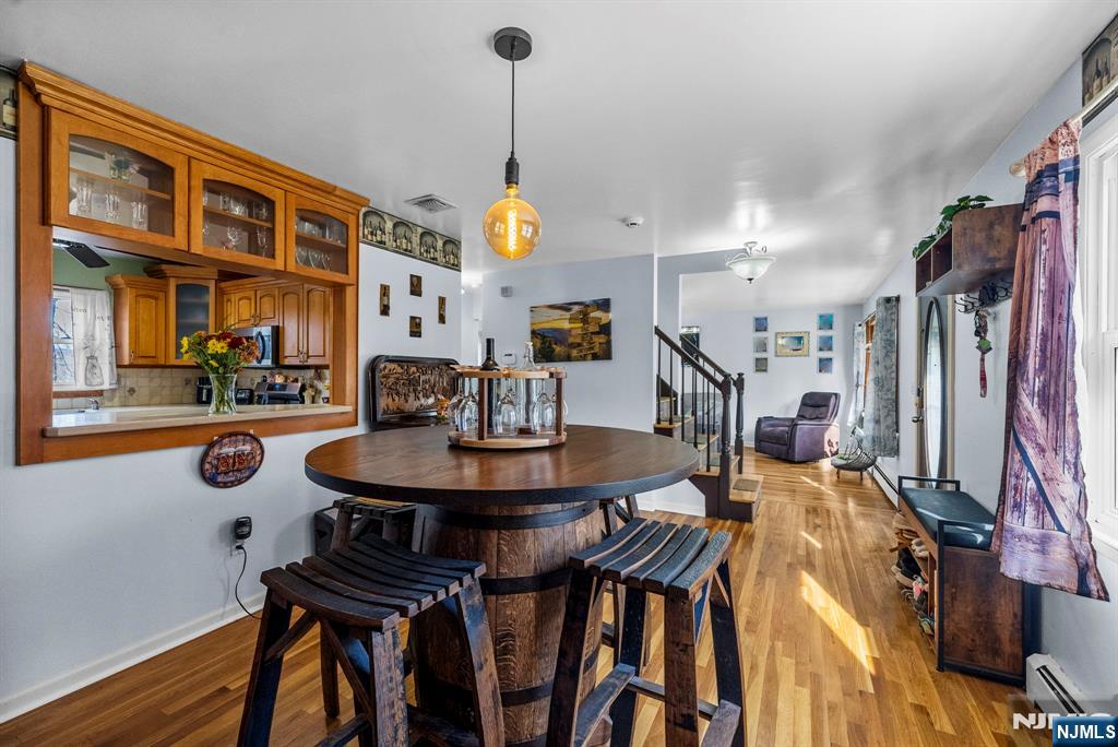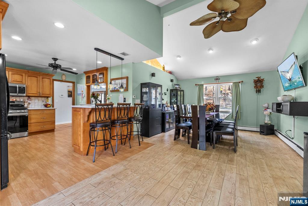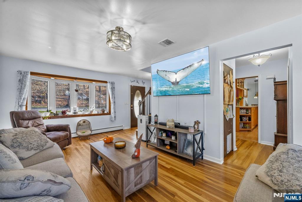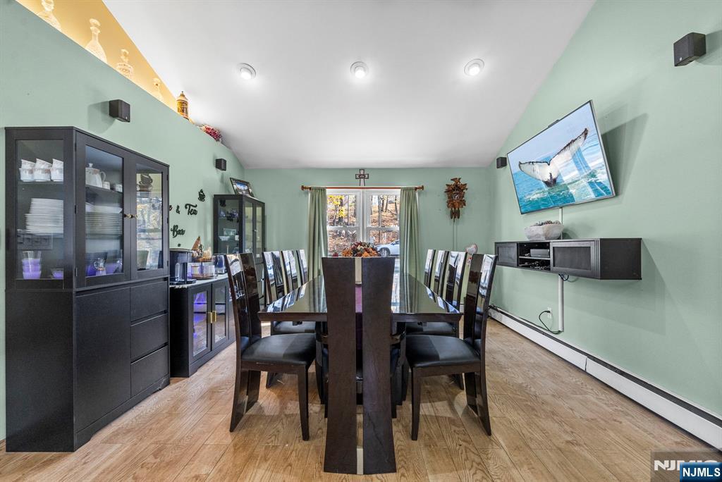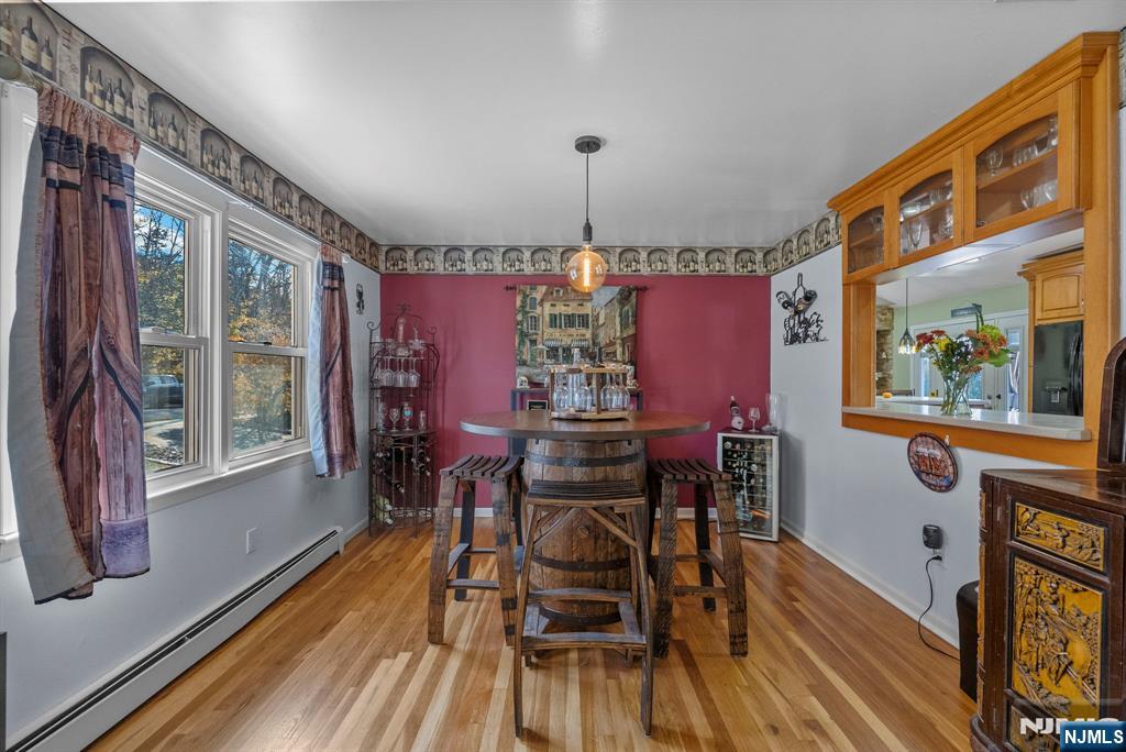 Step inside this beautiful colonial-style home and immediately feel the warmth of the cozy living room perfect for relaxing at the end of the day. The flow continues into the spacious eat-in kitchen, enhanced by custom cabinetry. Just off the kitchen, a dedicated wine room offers a stylish setting for entertaining guests. Toward the back of the home, the impressive family room features cathedral ceilings, a wood-burning fireplace, and a separate dining area. Flooded with natural light, this versatile space is ideal for relaxing, gathering or enjoying peaceful views of the backyard. A convenient main-level bath completes the first floor. Upstairs, the home offers four comfortable bedrooms and a full bathroom, along with a pull-down attic for generous storage. The lower level expands your living options even further, offering a bonus room, recreation area, laundry/utility room, and access to the two-car garage. Outside, the backyard is truly a retreat. Take in mountain views from the brand-new deck, enjoy outdoor meals or cool off in the above ground pool perfect for endless summer fun. Located in the peaceful borough of Wanaque, this home provides a quiet suburban lifestyle embraced by nature, while still offering convenient access to nearby amenities and city life.