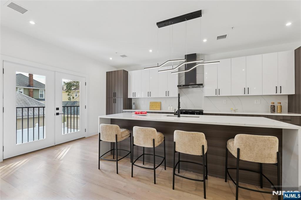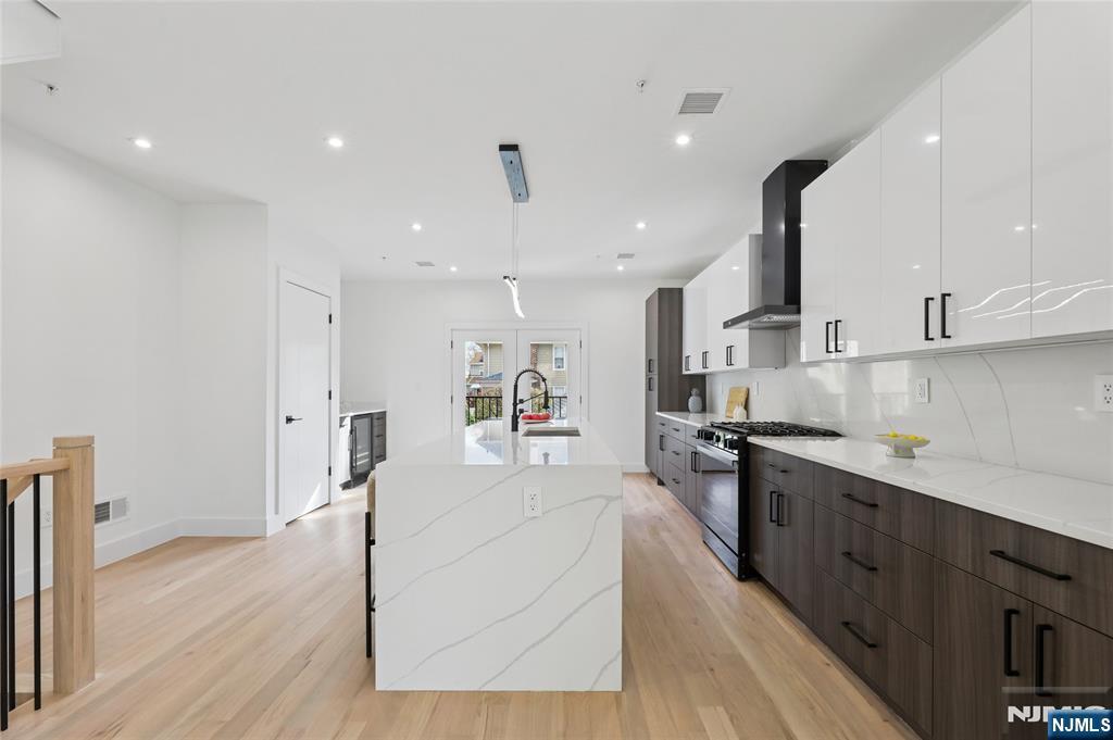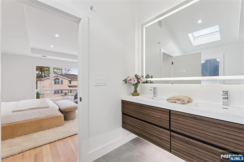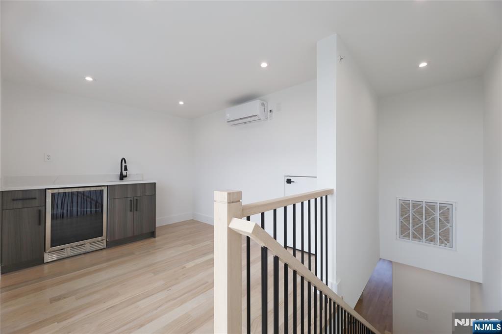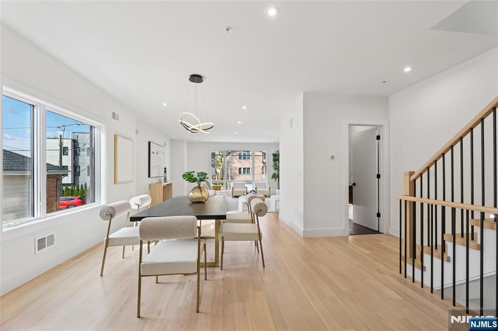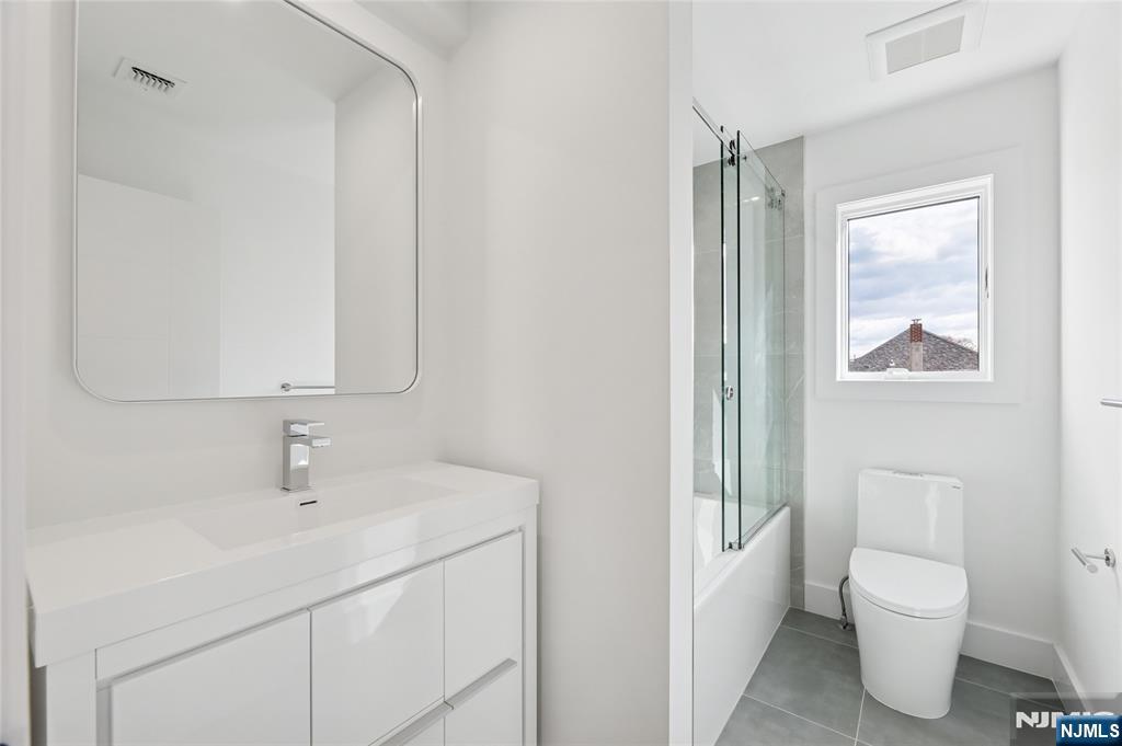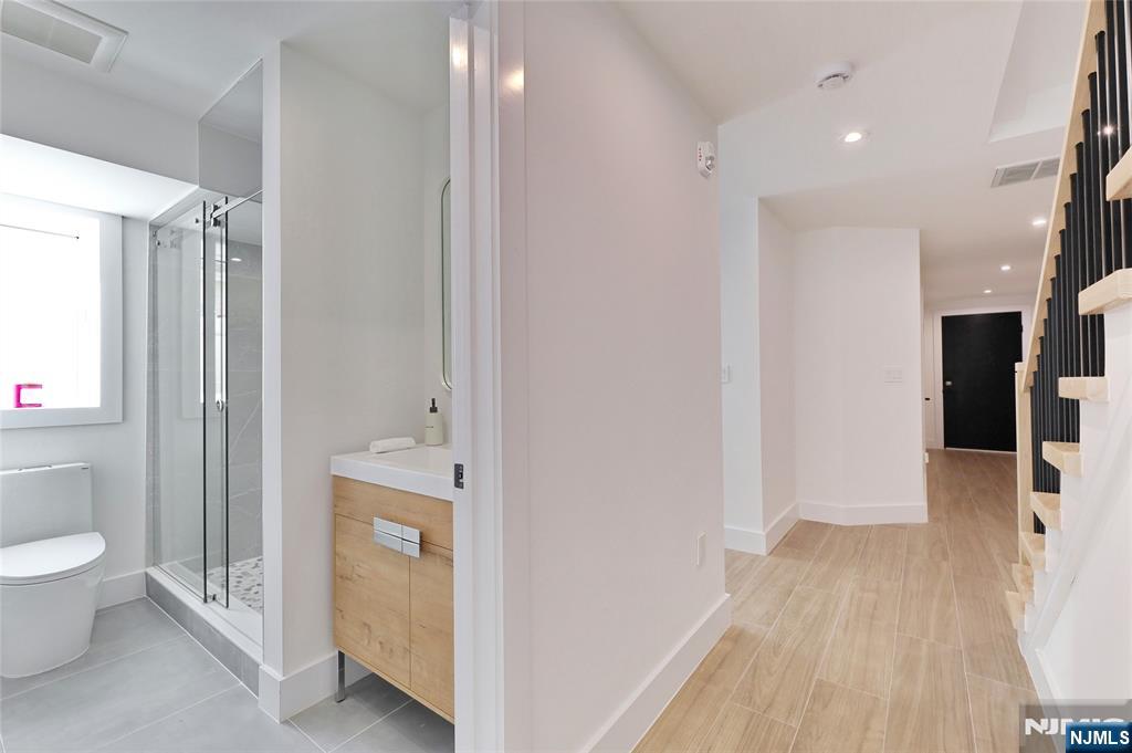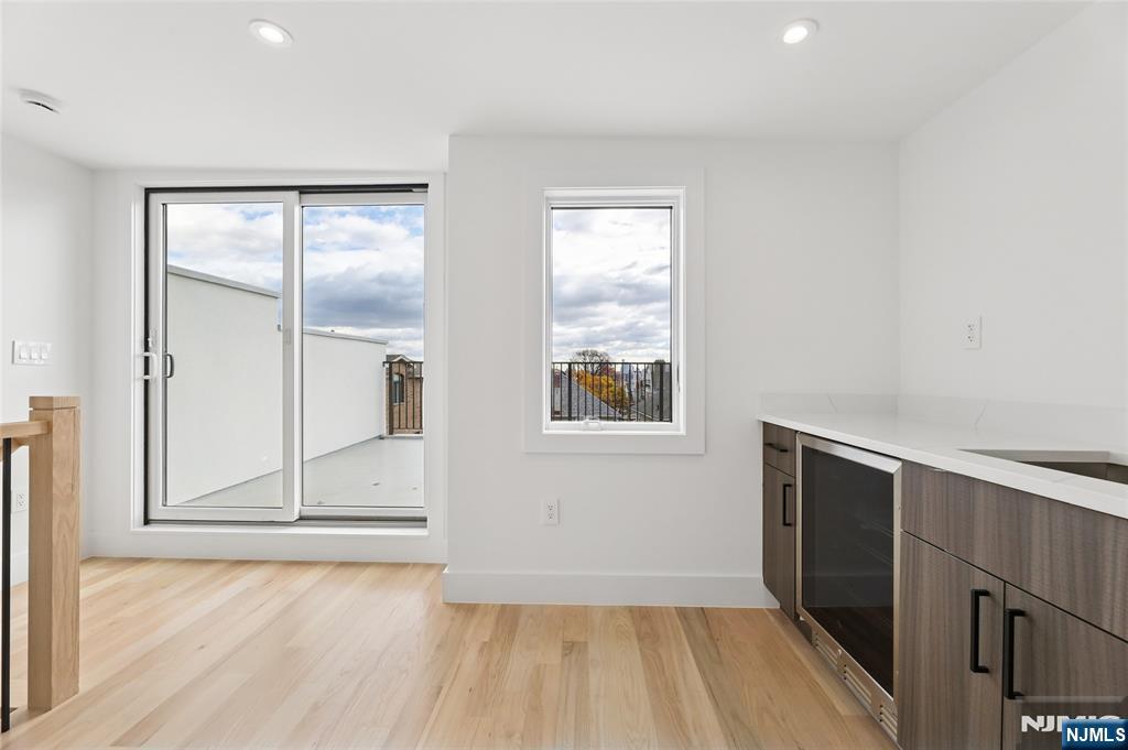 Luxurious modern design townhome nestled in Cliffside Park with incredible views of NYC. 4-story living space includes a roof terrace with a wet bar, sleek design, and carefully selected modern and top-of-the-line fixtures. The first floor boasts an open-plan modern kitchen with a quartz waterfall countertop, premium smart appliances, a powder room. It features 3 large bedrooms, 4 baths, a large recreation room on the ground floor, a roof deck with a wet bar, and a mudroom on the ground floor. The house has a fire sprinkler system, central AC and heat, a fireplace, great LED lighting, a hardwood floor, tons of storage, abundant natural light, a large attached garage, and a large car driveway. It is close to restaurants, shops, supermarkets.