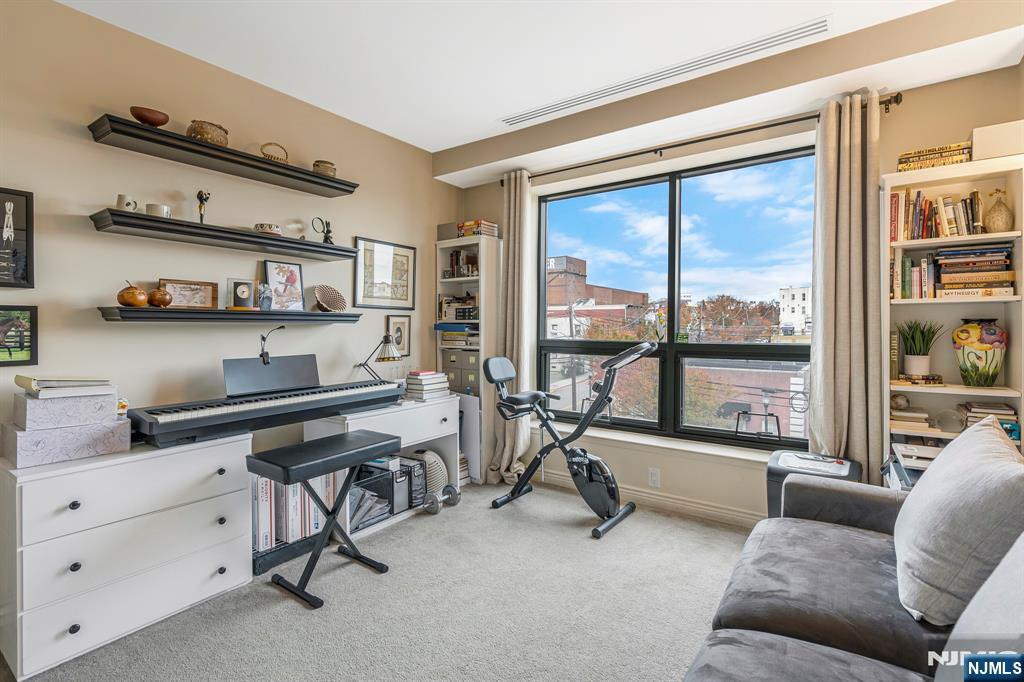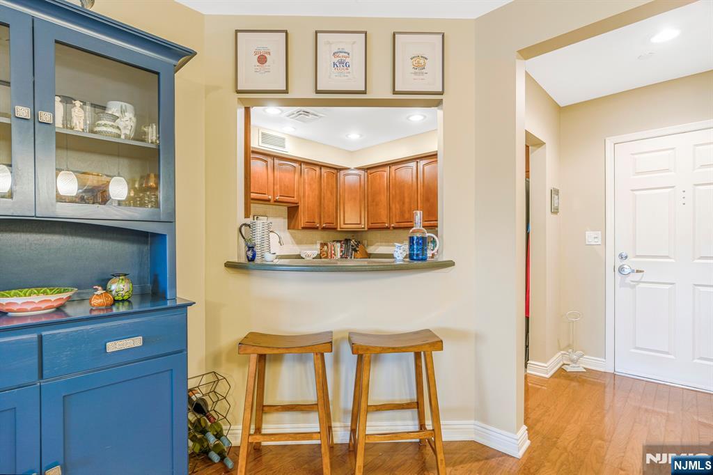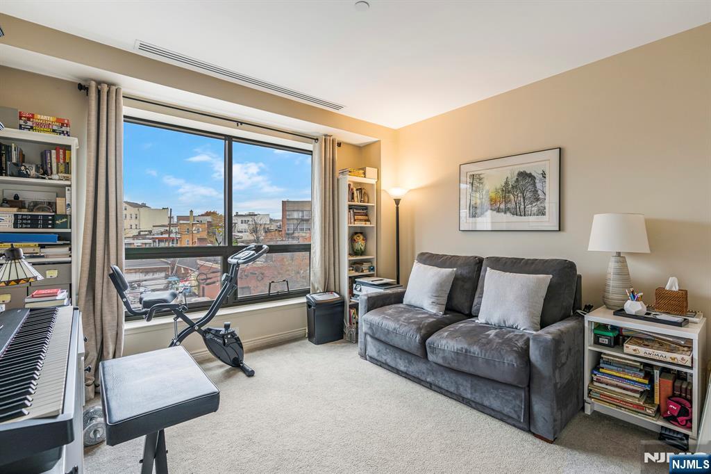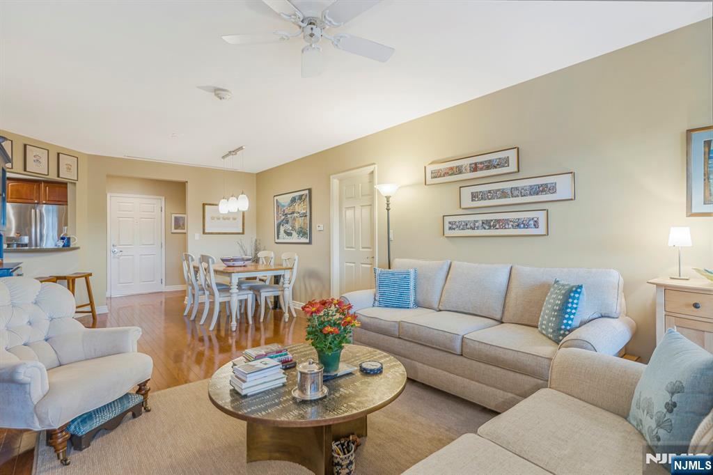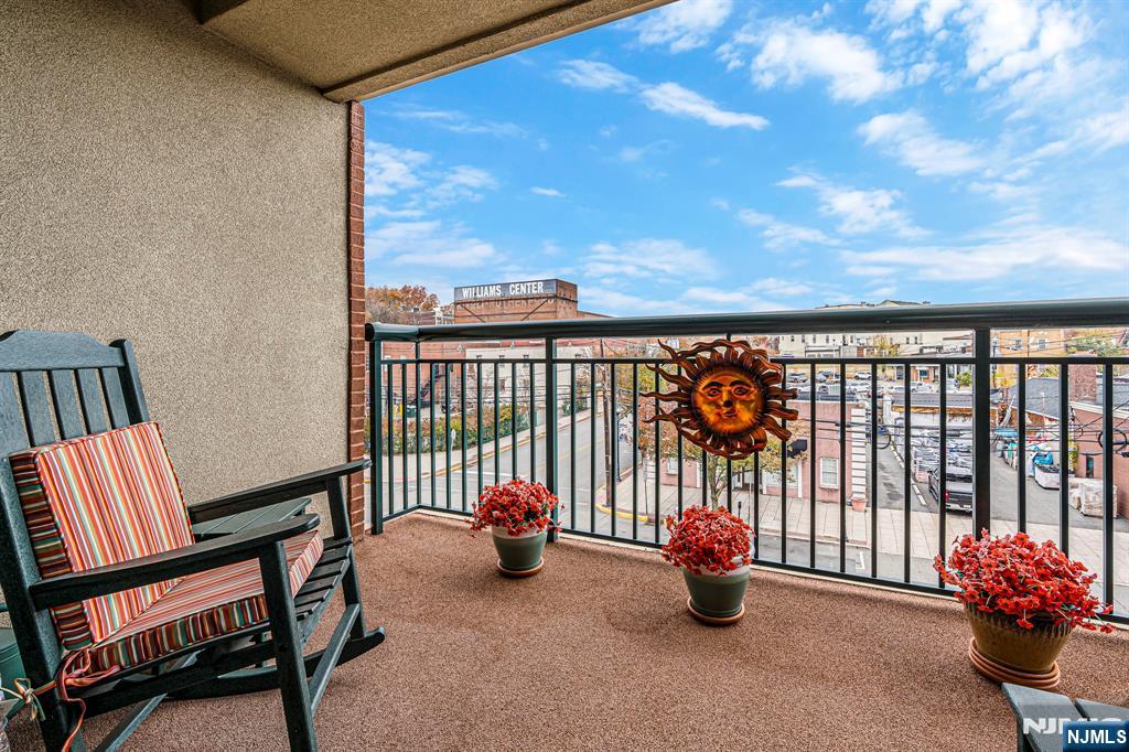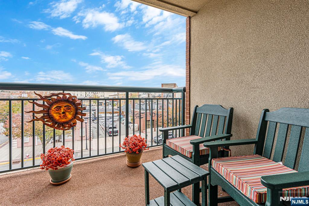 A commuter's dream to live at Station Square in downtown Rutherford. This corner light-filled 1320 sq. ft. unit features, two bedrooms and two full bathrooms. Spacious open living room/dining room with a private terrace. Large kitchen with lots of cabinets, S/S appliances and breakfast bar. Primary bedroom has a big walk-in closet, large bathroom w/ whirlpool tub, oversized shower and double sinks. The guest suite features a full bathroom with an additional walk-in closet + full size laundry. Both suites have large windows to enjoy lots of sunlight. Elevator building includes one assigned indoor parking space. This well-maintained elevator building offers a bike room with private storage units. The HOA includes water and a part-time super. And it is a fur baby friendly building. All NYC transportation is right there with trains/buses. Highways are both convenient and accessible. Rutherford dining scene is steps away!