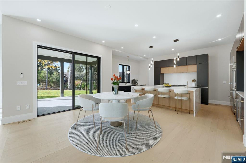 Luxury takes center stage in this remarkable new custom home offering over 6700 sq ft of beautifully finished living space on 0.35 acres. Dramatic one and a half story ceilings elevate the dining room, living room, and family room, complemented by oversized windows and high end designer finishes throughout, creating an atmosphere ideal for elevated daily living and entertaining. The chefs kitchen serves as the homes centerpiece, featuring custom cabinetry, quartz countertops, professional stainless steel appliances, and a large island with seating. The main level also includes a first floor guest suite, mudroom, and powder room. Upstairs, four spacious bedrooms feature nine foot tray ceilings, including a luxurious primary suite with two custom walk in closets and a spa like bath with soaking tub and double vanity. Additional highlights include oak floors throughout, radiant heat in all bathrooms except the basement, a central vacuum system, and extensive custom millwork. The fully finished lower level provides flexible living with a rec room, gym area, ensuite bedroom, dedicated wine storage with glass door, and pre wired home theater. Enjoy an oversized heated three car garage, generator, multi zone HVAC, full landscaping package, outdoor gas hookup on the covered porch, and a ten year home warranty. A rare opportunity to own new construction in a prime location, move in ready luxury with every detail thoughtfully crafted.