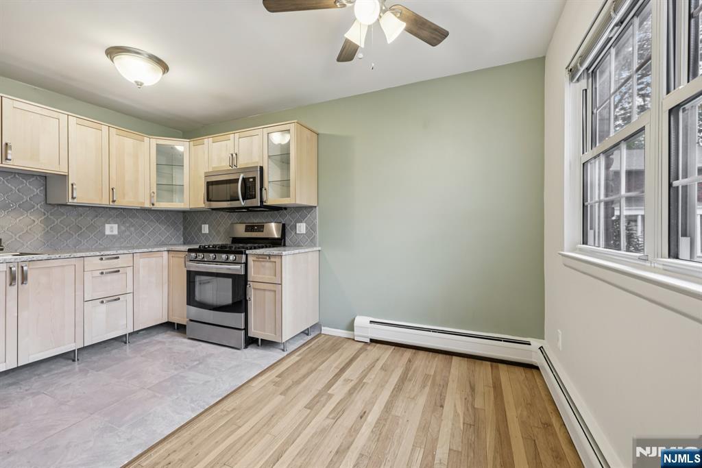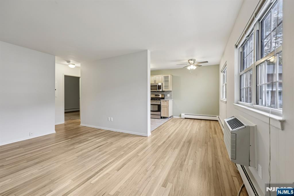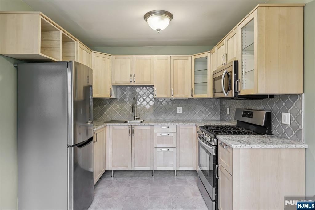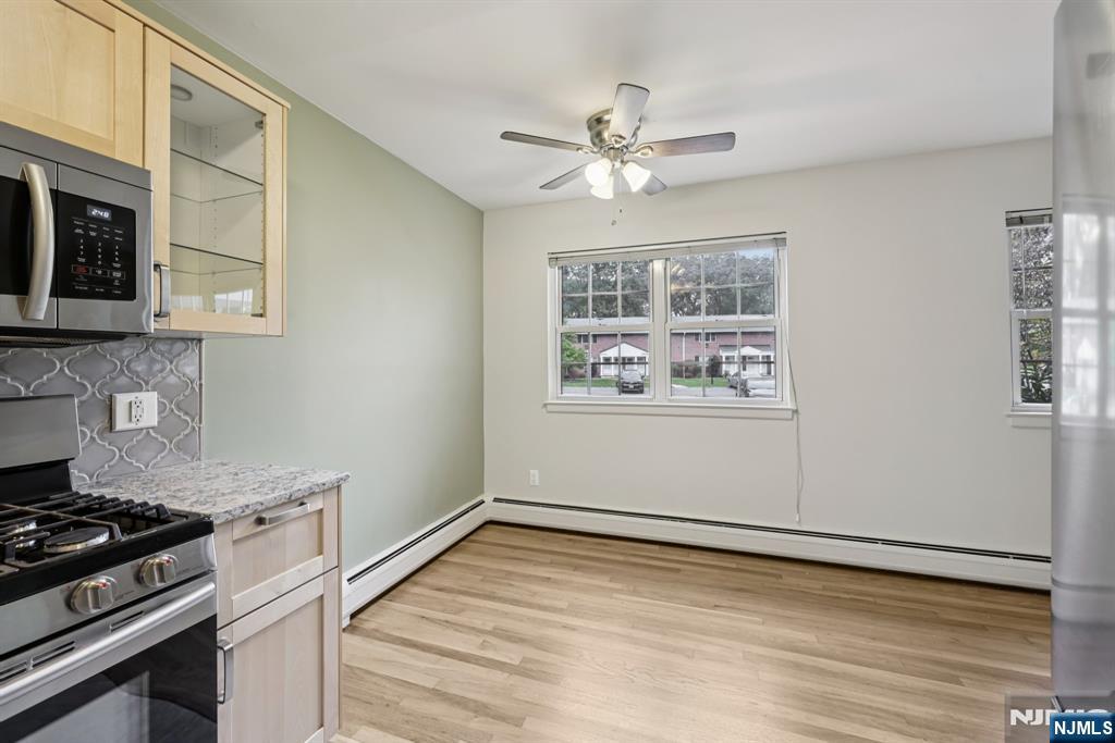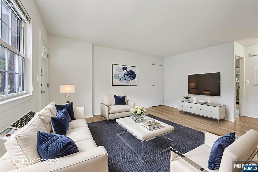 Rare first floor 2 BR, 1 Bath Condo located in Washington Drive. Beautiful redone hardwood floors in Living Room, Dining area and Bedrooms. Newer Kitchen with quartz counters, and stainless appliances. Freshly painted. Nice sized closets. Coin operated laundry in basement and storage bin. One assigned parking space #31 in back of building, as well as guest and street parking. Rent includes heat, hot water, cooking gas. Conveniently located near downtown RamseyWalk to stores and restaurants. Blocks away from Main Street Train station and NYC bus. No smoking, no pets. Call Jeannie 201-788-1042 for all showings.