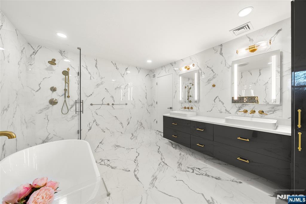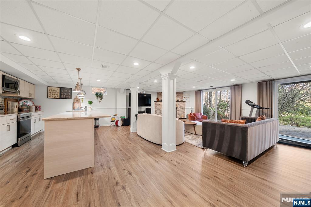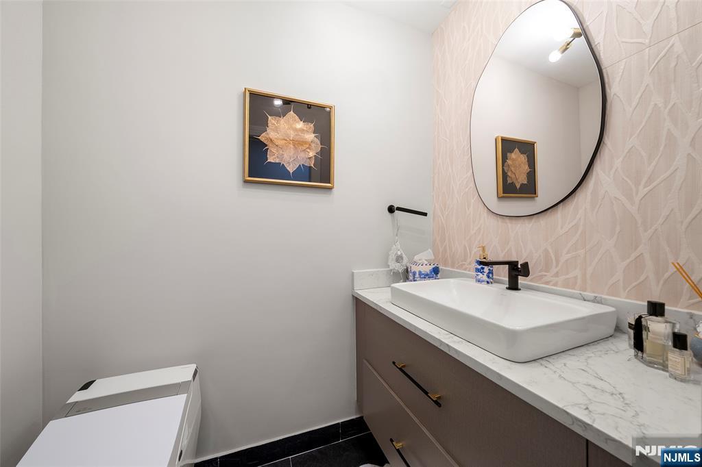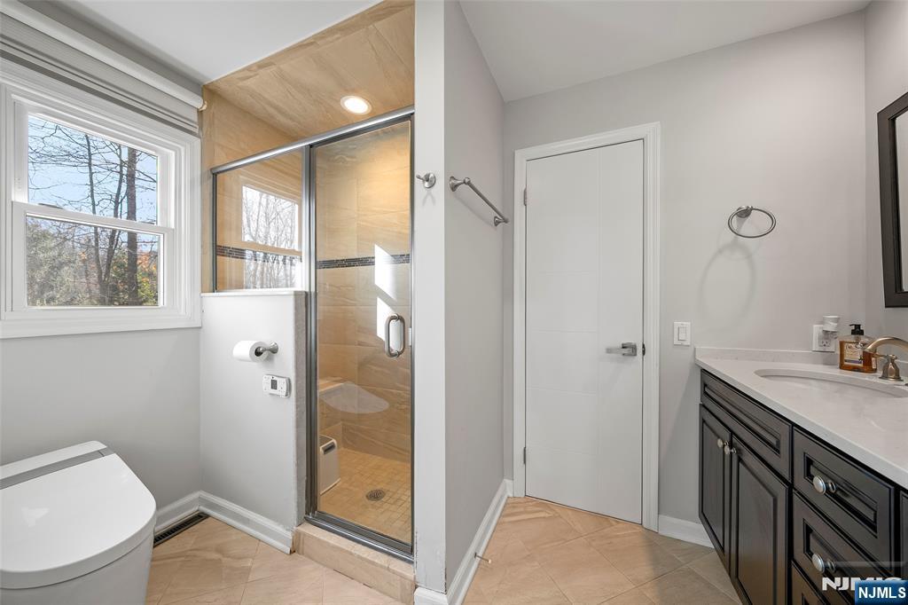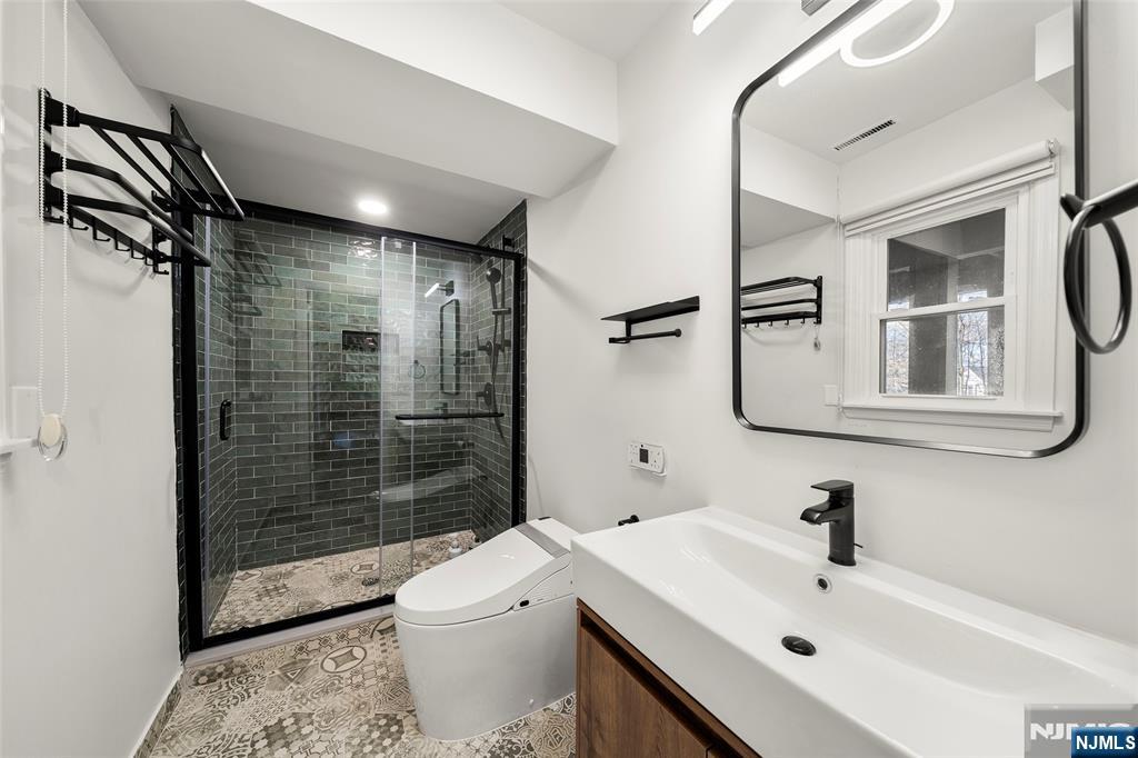 EXCEPTIONAL MODERN RETREAT IN FRANKLIN LAKES’ PRESTIGIOUS SOUTH GATE SECTION, SET ON A PRIVATE 1.2-ACRE CUL-DE-SAC LOT. THIS FULLY RENOVATED HOME BLENDS CONTEMPORARY DESIGN WITH LUXURY UPGRADES THROUGHOUT. A RADIANT-HEATED ENTRY FOYER LEADS TO AN OPEN, LIGHT-FILLED INTERIOR FEATURING FORMAL LIVING AND DINING ROOMS, A SLEEK NEW KITCHEN WITH QUARTZ COUNTERTOPS AND TOP-TIER APPLIANCES, AND A DRAMATIC GREAT ROOM WITH GAS FIREPLACE AND EXPANSIVE WINDOWS OVERLOOKING THE HEATED GUNITE POOL AND TRANQUIL BACKYARD. THE MAIN LEVEL INCLUDES A PRIVATE OFFICE, BEDROOM, RENOVATED FULL BATH, POWDER ROOM, AND LAUNDRY ROOM. UPSTAIRS, THE PRIMARY SUITE IMPRESSES WITH RADIANT-HEATED BATHROOM FLOORS, HIGH-END AUTOMATIC TOILETS, DOUBLE VANITY, OVERSIZED SHOWER, AND A CUSTOM WALK-IN CLOSET CREATED FROM A FORMER BEDROOM WITH BUILT-IN CABINETRY. ADDITIONAL BEDROOMS AND A RENOVATED FULL BATH COMPLETE THE LEVEL. THE FINISHED WALKOUT LOWER LEVEL OFFERS A FAMILY ROOM WITH FIREPLACE, SUMMER KITCHEN, SOUND-PROOF ROOM, CEDAR CLOSET, AND POWDER ROOM. ADDITIONAL FEATURES INCLUDE NEW WINDOWS, NEW HVAC, UPDATED ELECTRIC, HEATED DRIVEWAY, OVERSIZED DECK, SPRINKLER SYSTEM, WHOLE-HOUSE WATER FILTRATION, TWO-CAR GARAGE, AND CUSTOM MODERN BLINDS AND CURTAINS THROUGHOUT. PRIME LOCATION NEAR NATURE PRESERVES, ITC, TOP SCHOOLS, AND LOW TAXES.