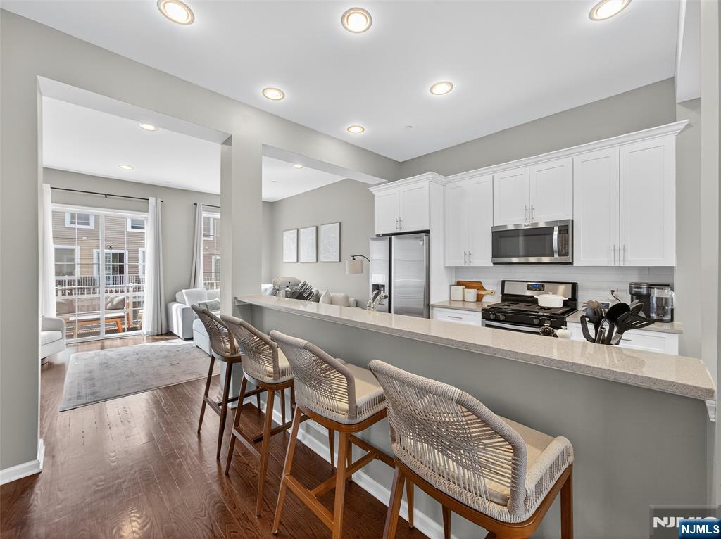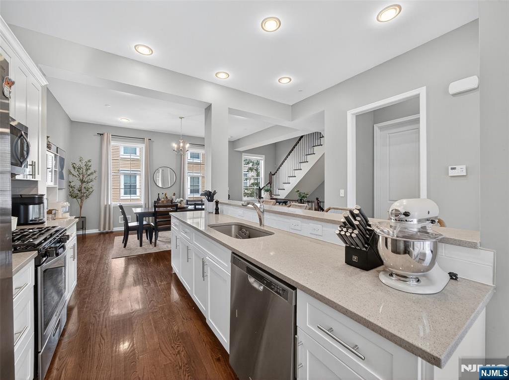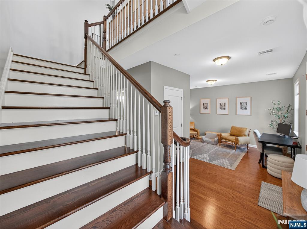 A stunning 2,258 sq. ft. NORTH-EAST facing Colonial-style home in the prestigious Wright Place Community of Wood-Ridge is designed to fit all your needs! Nestled on a beautifully landscaped street, it offers effortless access to Manhattanâ€â€just 30 minutes awayâ€â€and is close to major highways & turnpikes for convenient commutes to NYC, Hoboken, Jersey City, & Secaucus. Wood-Ridge features its own train station on-site & two buses to Manhattan every 10–15 minutes. The home offers front & rear entrances, a 2-car garage plus 2-car driveway (4 total parking), & a 1st floor with 9-ft ceilings, tall windows, two closets, & a spacious family room easily convertible into a 4th bedroom. The second floor showcases 10-ft ceilings, a bright dining area, & a modern kitchen with white cabinetry, breakfast bar, pantry, stainless steel appliances, & quartz countertops, seamlessly flowing into the living room with a cozy fireplace & private deck. The third floor features a luxurious primary suite with full bath & his-&-her closets, plus two additional bedrooms, a full bath, & a laundry closet. Additional highlights include hardwood floors, recessed lighting, 2-zone heating/cooling, & proximity to Catherine Doyle Elementary School. Residents enjoy access to a massive athletic complex, tennis courts, playgrounds, jogging track, dog park, fountain park, & on-site coffee & wine shopâ€â€perfect for those seeking an upscale, convenient lifestyle or strong rental income potential.