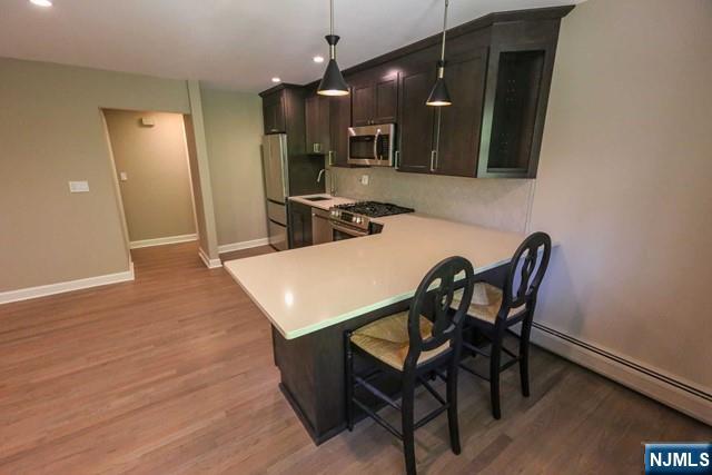 RECENTLY RENOVATED unit in the Washington Drive complex in Ramsey! Open floor concept with updates that include - BRAND NEW stainless steel appliances, cabinets, counter tops, A/C unit, hardwood floors and molding. Energy Star appliances. Completely updated bathroom top to bottom! SMART HOME capable, which includes - Wifi Controlled lights, fans, dimmers, Google Nest doorbell, and USB port outlets. PRIME LOCATION! Conveniently located near public transit (train station x2, bus), Major Highways, Interstate Shopping Center, schools, parks, and more. Storage space and washer/dryers in basement of building. If you're looking for an updated, modern, cozy 1 bedroom unit in Ramsey, look no further! Interview, credit check, and renter's insurance required.