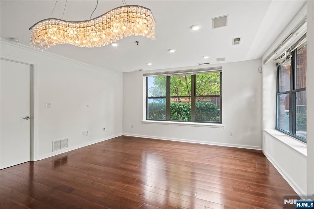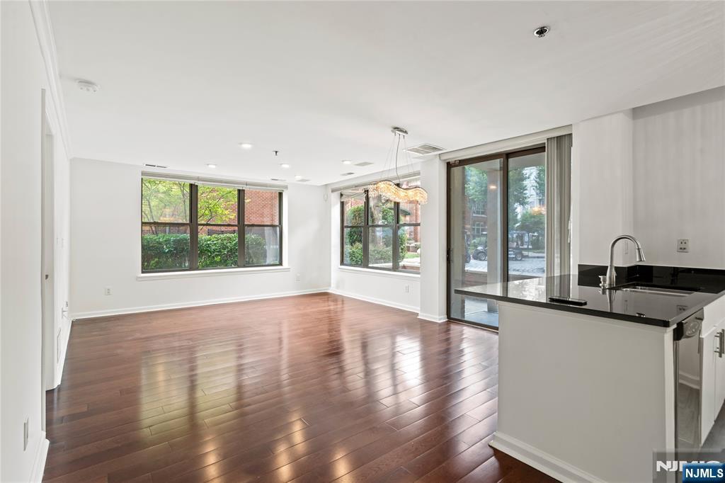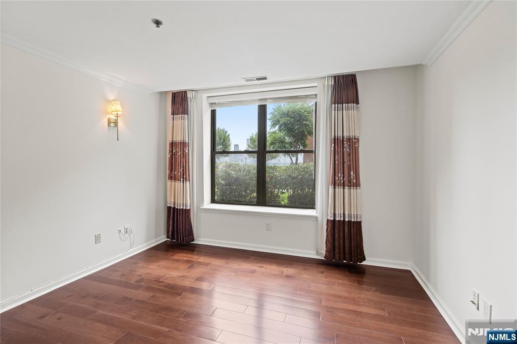 This beautiful 2 bed 2 bath home with 1222 sqft offers an open, sun-drenched layout with hardwood floors throughout. It features recessed lighting in the spacious living room, custom light fixtures, and custom blinds with a blackout shade in the primary bedroom. Both bedrooms include walk-in closets, providing generous storage. The kitchen boasts stainless steel appliances and granite countertops. Step out onto your large private patio and enjoy a semi-private entrance with only two units per floor. Located just steps from the pool and clubhouse, which features a fitness center, indoor basketball court, pool, wet bar and billiards room, business center, and theater. Enjoy resort-style amenities including, a children’s playground, 24/7 concierge service, and a premier Hudson River location. Commuter-friendly with walking access to the Light Rail, bus, and ferry to NYC. Conveniently close to shopping, dining, and entertainment. Utilities included: water, gas, sewer, cable, internet, parking, access to amenities. Tenant only pays electric and renter's insurance.