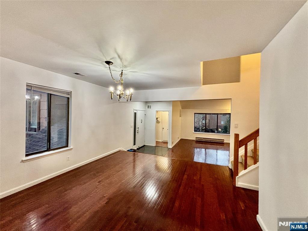 Beautiful 1451sf duplex with 2 bedrooms, 2.5 baths in Harmon Cove. Large Open floor plan. wood flooring throughout. Spacious living rm with wood burning fireplace. Open kitchen to family room. Master suite has upgraded master bath w/ standing shower. Large guest bedroom and upgraded guest bath with Jacuzzi tub. Central heating and cooling. Ample sunlight in every room and ample storage space. 2 cars parking. 24 hours security, tennis courts, basketball courts, club house, pool, kiddie pool, playground, bar and food service, water front trails and a marina. NYC bus, shuttle to train and school bus at club house. Water, Garbage, Snow Removal, Landscaping and amenities paid by Landlord