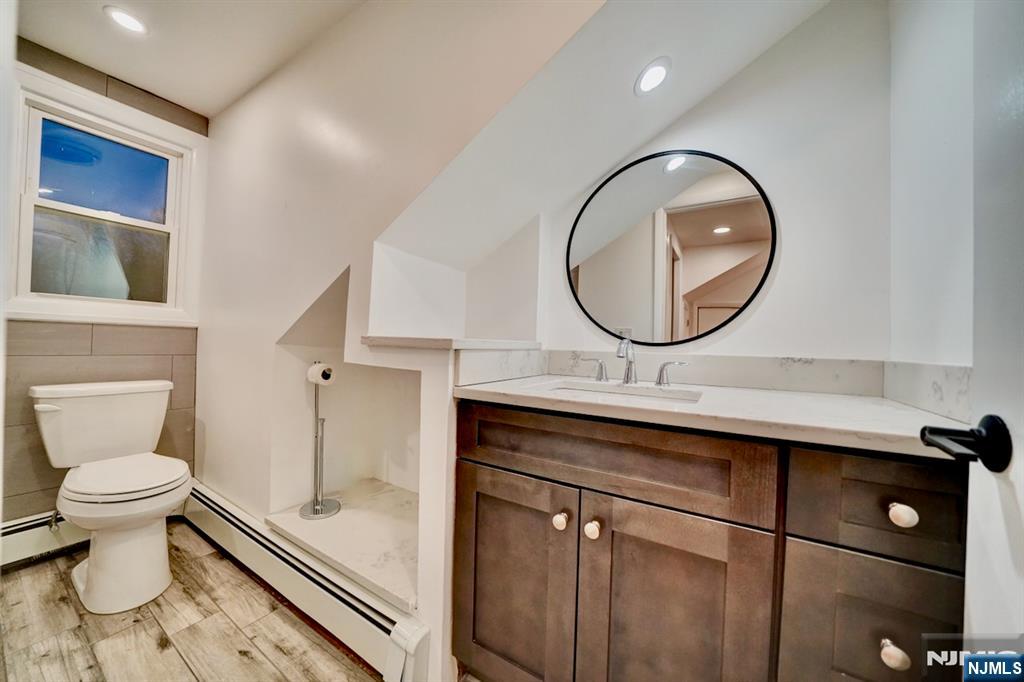 The joy of simply unpacking can be yours in this sophisticated and fully renovated second floor, one bedroom apartment. As you walk up to the private entrance, you'll first be greeted by a large mud room/porch. Next, you'll step inside where lots of windows allow light to cascade in to showcase the hardwood floors and recently redone eat-in kitchen featuring stainless appliances and charming dark cabinets. A living room completes the main space. A large bedroom with oversized closet give plenty of space for a king bed and full set of furniture. Lastly a renovated full bathroom with tub/shower. Tenant will have access to a shared driveway.