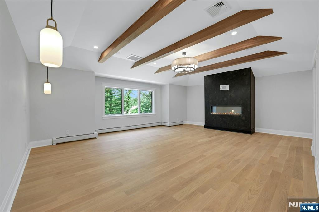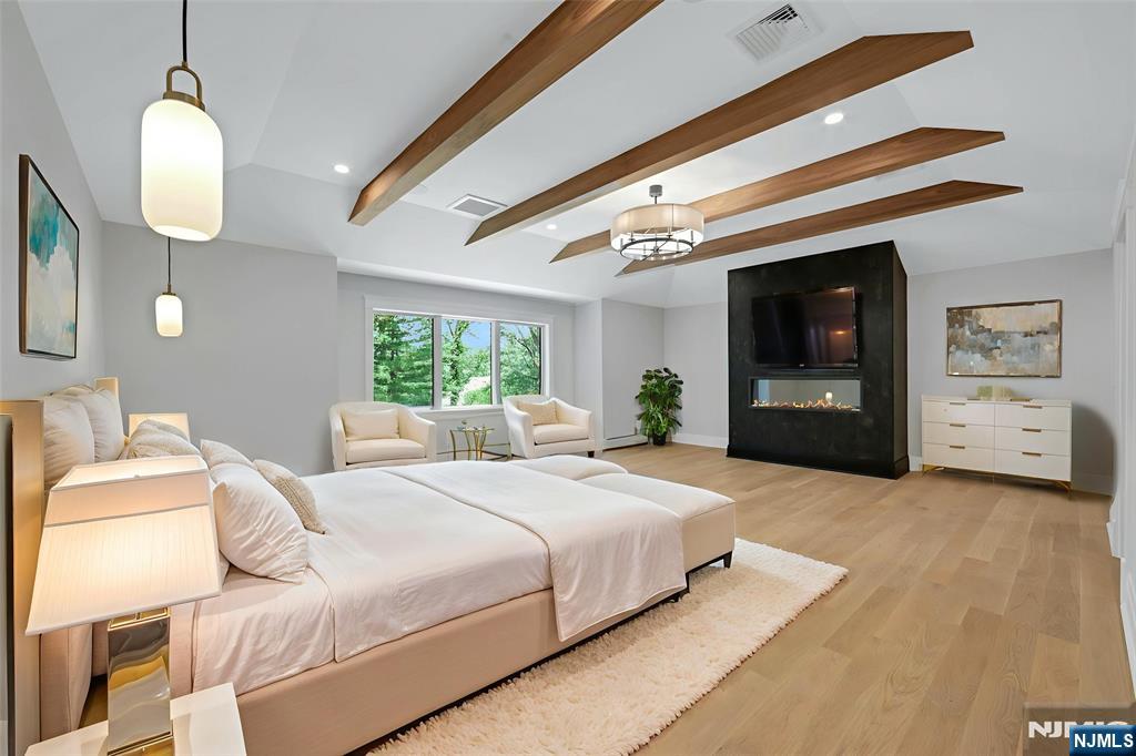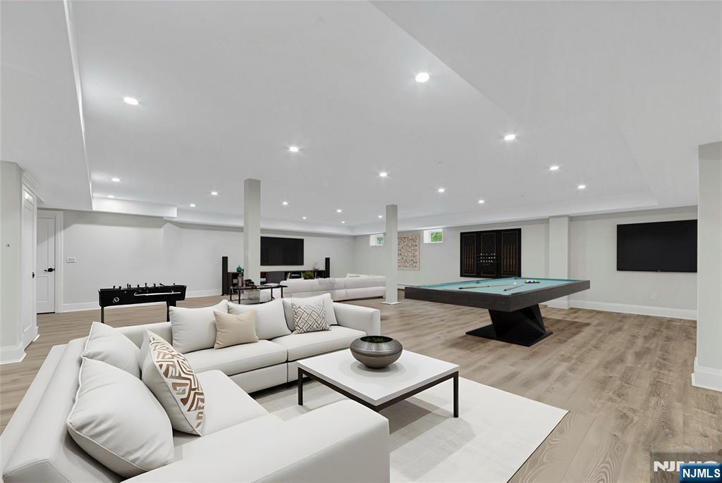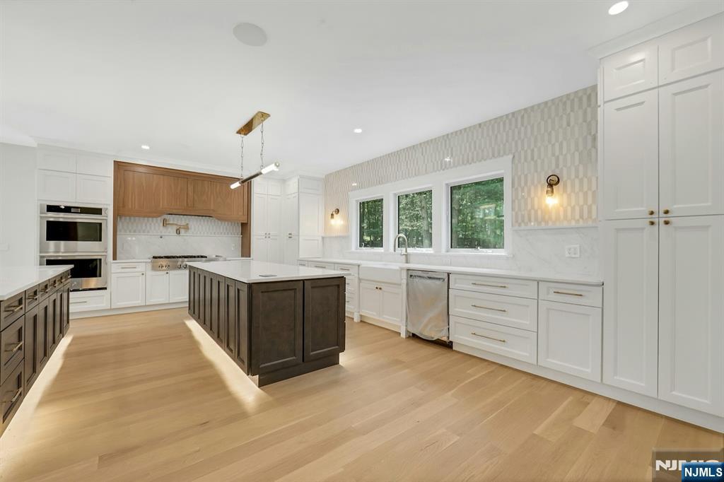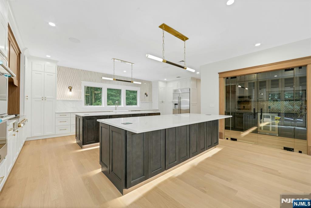 Introducing a stunning new construction in Ramsey, NJ. Nearly 8,000 sq ft of living space on 1.4 acres of private, secluded land. This five bedroom, 6.5 bath masterpiece features radiant heat in all baths and kitchen, top tier plumbing and electrical, and custom walnut woodwork throughout. Enjoy a chef's kitchen with double islands, a butler's pantry, and a wine room. Each bedroom offers custom closets, and the oversized second floor laundry adds convenience. Two fireplaces, two mudrooms, and a fully finished basement with a full bath complete the interior. Smart home technology includes pre wiring for TVs, whole home automation, video intercom, and a six zone in ceiling audio system. The exterior is board and batten with a 3 car garage and long, private driveway. In the backyard, you'll find a flat yard and patio. Take advantage of Ramsey's new low taxes. This is the home you've been waiting for!