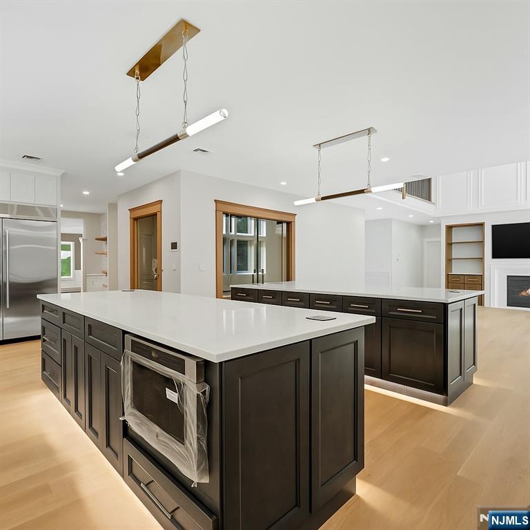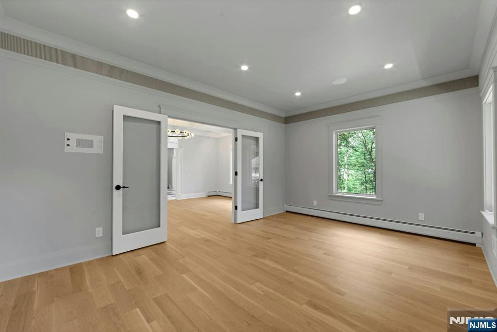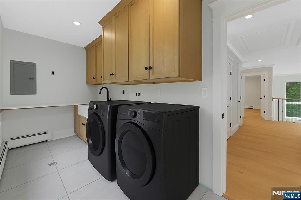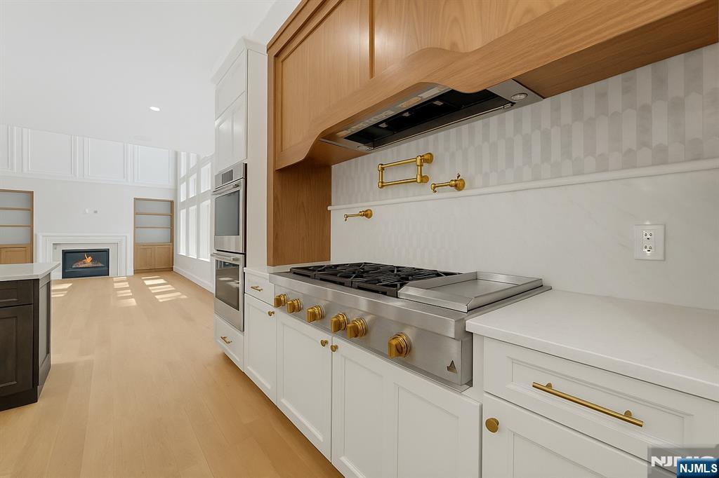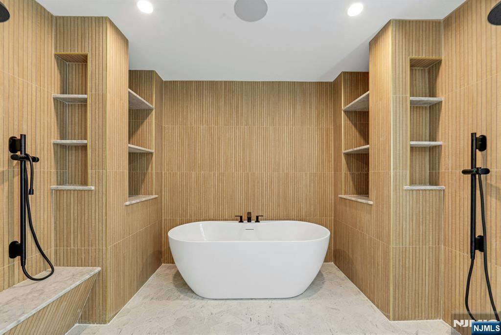 Introducing a stunning new construction in Ramsey, NJ. Nearly 8,000 sq ft of living space on 1.4 acres of private, secluded land. This five bedroom, 6.5 bath masterpiece features radiant heat in all baths and kitchen, top tier plumbing and electrical, and custom walnut woodwork throughout. Enjoy a chef's kitchen with double islands, a butler's pantry, and a wine room. Each bedroom offers custom closets, and the oversized second floor laundry adds convenience. Two fireplaces, two mudrooms, and a fully finished basement with a full bath complete the interior. Smart home technology includes pre wiring for TVs, whole home automation, video intercom, and a six zone in ceiling audio system. The exterior is board and batten with a 3 car garage and long, private driveway. In the backyard, you'll find a flat yard and patio. Take advantage of Ramsey's new low taxes. This is the home you've been waiting for!
