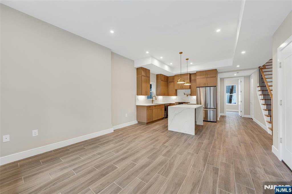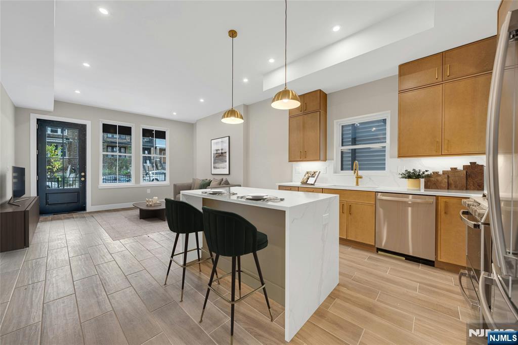 Step inside Unit 1 at 28 Clinton Avenue, a thoughtfully designed new-construction condominium that combines sophisticated finishes, timeless style, and modern comfort in Bergen-Lafayette. Spanning ~1,338 sq ft, this three-bedroom, two and-a-half-bath residence offers 10-foot ceilings, 8-foot doors, and white oak hardwood floors throughout. Natural light floods the home, creating an inviting and spacious feel. The chef’s kitchen showcases Fabuwood Luna cabinetry, a Pistachio island, quartz countertops and back splash,and brass fixtures, perfectly balancing contemporary elegance with warm design elements. Each bathroom is finished with backlit designer mirrors and premium materials, while bedrooms are spacious and bright, and the primary suite includes a private balcony and en-suite bath. Step outside to enjoy your private landscaped backyard, featuring a fresh lawn, mulched garden beds, gray vinyl fencing, and paver patioâ€â€a rare and serene outdoor escape. Additional highlights include Rheem HVAC systems, 40 gallon powervent hot water tanks, and energy-efficient Andersen 100 Series windows. Located in Bergen-Lafayette, one of Jersey City’s fastest-growing neighborhoods, this home is surrounded by ongoing investment and development, making 28 Clinton Ave the perfect opportunity for both lifestyle and long-term value.