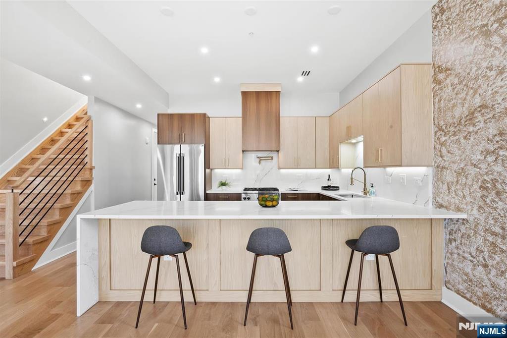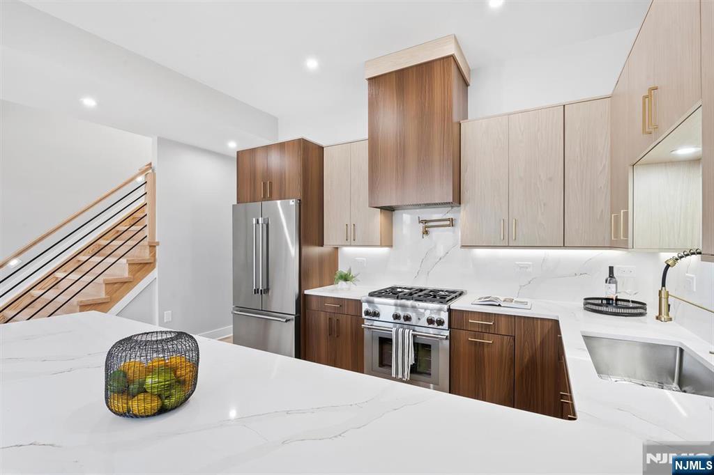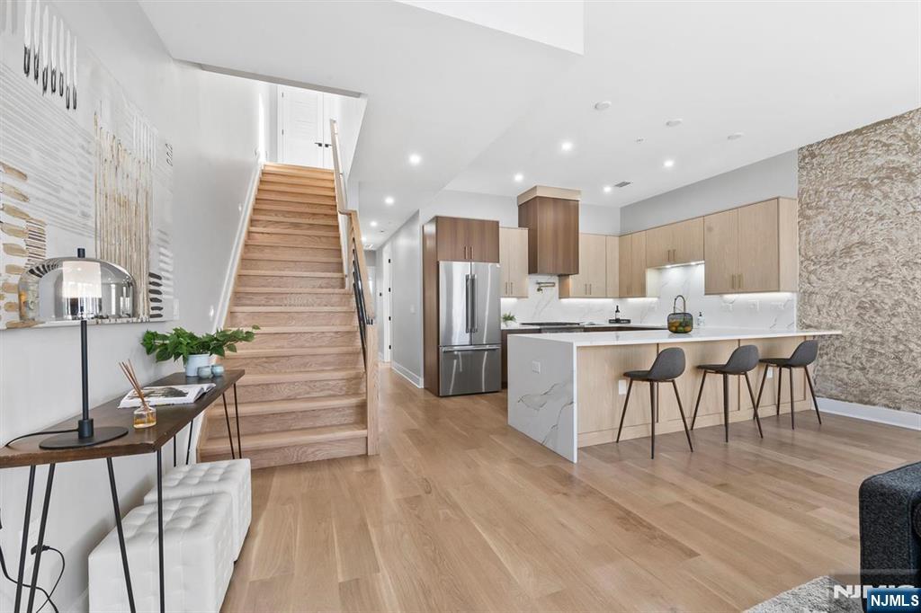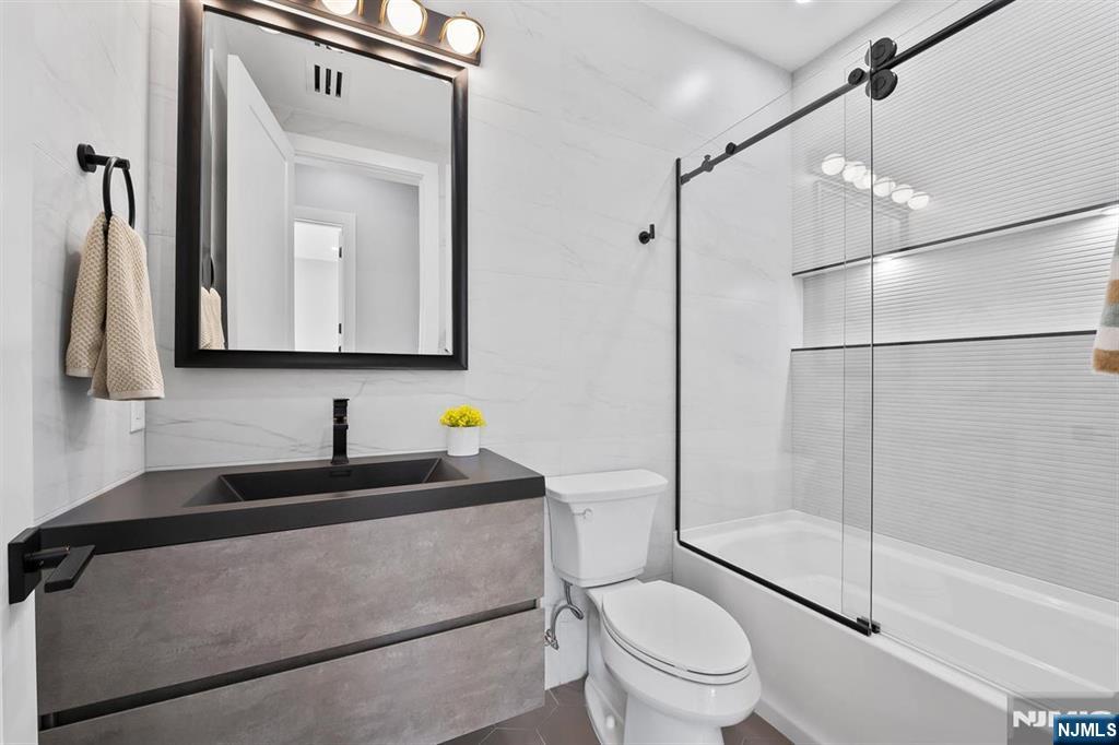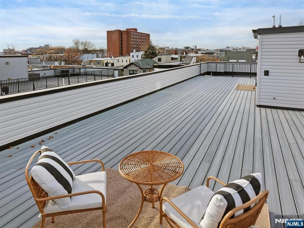 Welcome to 146 Sherman Ave, Unit 3, an elevated 3-bed, 2-bath condo crowned with a private rooftop deck showcasing breathtaking NYC skyline views. This top-floor residence offers an airy, sun-filled layout with hardwood floors, oversized windows, and a seamless open-concept design perfect for modern living. The contemporary kitchen features sleek cabinetry, quartz countertops, and stainless steel appliances, creating the ideal space for cooking, hosting, and gathering. The primary suite includes a beautifully finished en-suite bathroom with a soaking tub and generous custom built closet space, while two additional bedrooms provide versatility for guests, a home office, or a nursery. Both bathrooms are outfitted with high-end fixtures and stylish tilework for a clean, modern aesthetic. The standout feature of Unit 3 is the exclusive private roof deck, a rare retreat with panoramic views of the Manhattan skyline. Perfect for summer lounging, outdoor dining, or hosting unforgettable gatherings, this rooftop oasis elevates your lifestyle in every way. Situated in the heart of Jersey City Heights, you're moments from Central Avenue’s vibrant shops and eateries, local parks, and convenient transportation to NYC. Experience luxury living with unmatched skyline views. Unit 3 at 146 Sherman Ave is truly one of a kind.