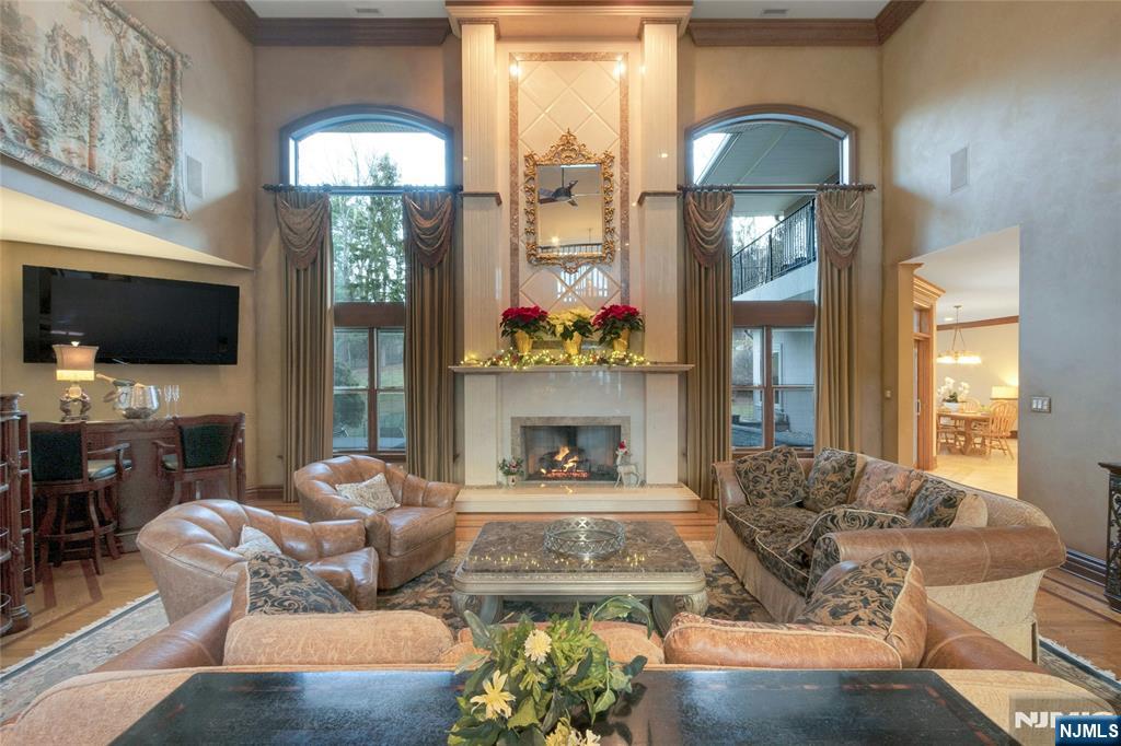 Custom Designed Manor on almost 2 acres of private property in Mahwah’s prestigious Rio Vista. This extraordinary 10,000 sq ft residence is not simply a home; it is a celebration of artisanship, scale, and refined living. Solid mahogany doors welcome you into a dramatic foyer, with sweeping curved staircase which rises with sculptural perfection, impeccably cut solid wood spindles and trim. The foyer flows into a soaring living room, where radiant heat continues seamlessly from marble to hardwood floors. A magnificent floor-to-ceiling feature fireplace is flanked by huge windows which fill the room with natural light. Ceiling molding? Carved from a single piece of solid wood, creating a level of craftsmanship rarely seen today. The formal dining room showcases an intricate inlaid floor of maple and walnut, setting the stage for elegant entertaining. The West Wing primary suite is its own sanctuary, complete with fireplace, private patio, 2 walk-in closets, and immense bathroom (easily could be dual baths). Sophisticated black walnut study. Expansive cherry chef’s kitchen, with island, pantry, and ready for the culinary enthusiast. Second level with 4 beds, 3 baths, theatre and games room. The 3rd level is set as a performance arts stage. Finished basement with party/bar, games, bedroom 6 and bathroom. Built with integrity and intention, this is a home that stands resolute, grand, warm, beautifully detailed, and created to last for generations, just waiting for your touche