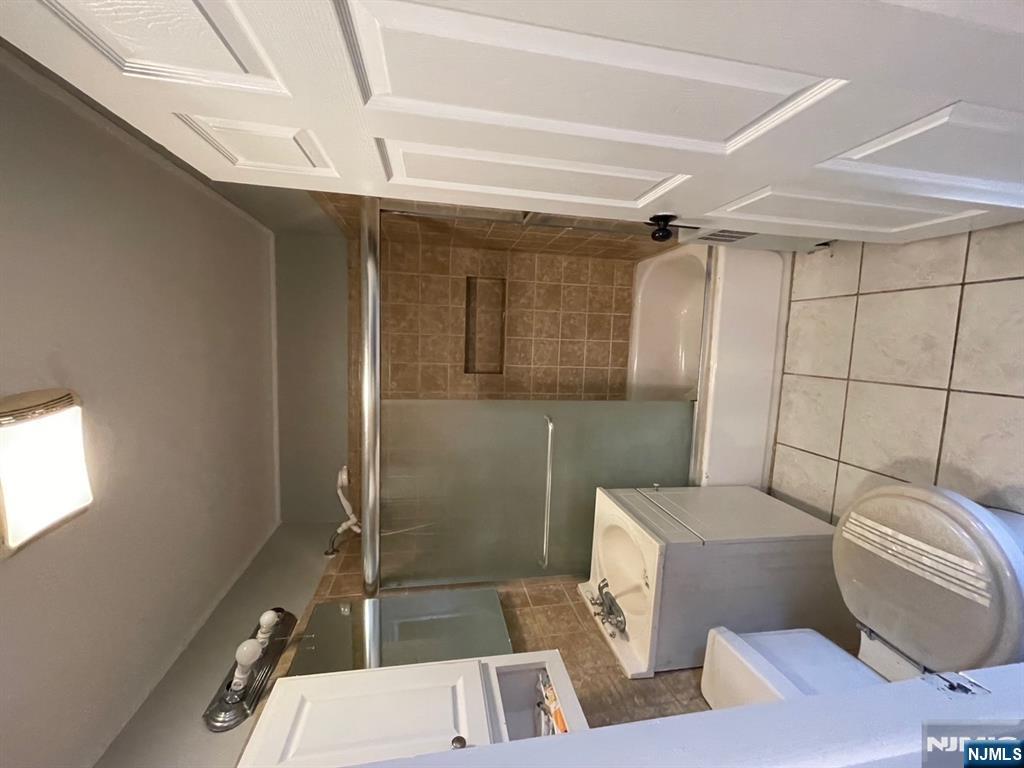 Step into a unique opportunity offering expansive living space combined with exceptional commuter convenience. This contemporary home provides a versatile layout ideal for extended household living, offering privacy, comfort, and flexibility across multiple levels. The first-floor features a bright living room, two bedrooms, a kitchen, full bathroom. The second floor offers two additional bedrooms, an oversized walk-in closet, a kitchenette, and direct access to a deck overlooking the beautifully maintained backyard. The fully finished basement adds even more living space and includes two family rooms, a full bathroom, a kitchenette, a laundry room, and direct access to the yardâ€â€perfect for recreation, guests, or additional living needs. The beautifully landscaped yard highlights a significant investment in custom paver work, offering refined outdoor living and effortless maintenance. Elegant fencing surrounds the property, providing both privacy and visual appeal. The above ground pool, a storage shed, ample green space make it ideal for enjoyment .A fully paved driveway adds convenience, durability, and enhanced curb appeal. Additional highlights :newer roof, gutters, state of the art smart sprinkler system, security cameras . Ideally located for commuters, just minutes from the Harrison PATH Train Station and highways. A rare opportunity offering long term value, space, privacy, and convenience all in one exceptional property. Property is being sold strictly as-is.