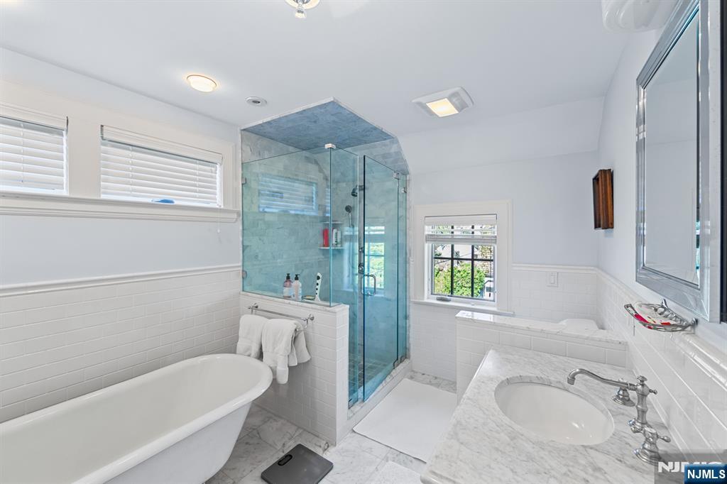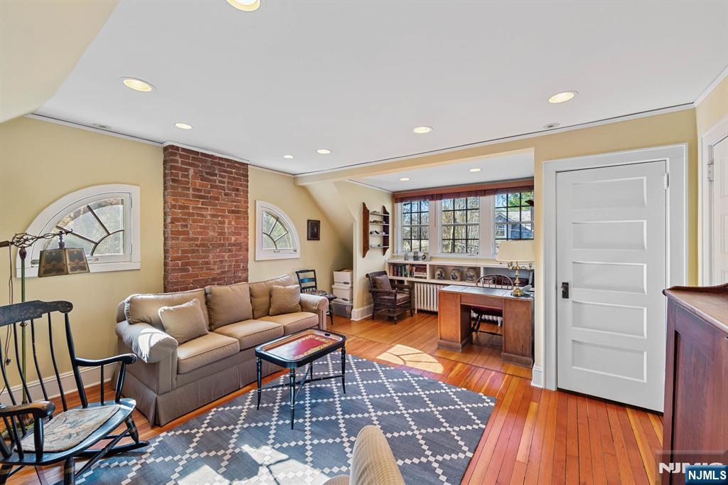 Charming Arts & Crafts–inspired Center Hall Colonial featuring 5 bedrooms and 3.5 baths on beautifully landscaped property with a large fenced backyard. The first floor offers a gracious foyer, formal dining room, living room with working fireplace, and a sunlit, fully renovated kitchen with top-of-the-line appliancesâ€â€perfect for entertaining. The second floor includes a primary suite with a full bath and two large walk-in closets, an additional bedroom and a full bath, plus an office and laundry. The third floor features three bedrooms, a full bath, and ample storage. Built-ins on the first and third floors add character throughout. Enjoy lovely front and rear porches, a Belgian block driveway, and a detached two-car garage with an artist studio above. Conveniently located near shops, restaurants, transportation, and houses of worship in Englewood, New Jersey.