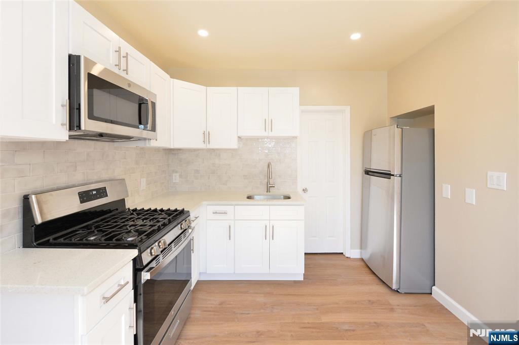 Spacious first-floor apartment in a newly renovated two-family home, ideally located just steps from NJ Transit and NYC transportation. The main level offers a comfortable living room, eat-in kitchen, bedroom with attached bonus room/office, and full bath. The ground floor adds additional living space, a bedroom, and laundry room access. Convenient location with great space inside and out!