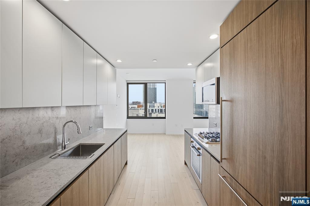 Come move in to this top-of-the-line studio in the heart of Jersey City! Upon entrance, you'll be greeted with your state-of-the-art kitchen; this comes equipped with a massive stone countertop, stainless steel Kohler appliances and custom cabinetry. Down the hall, you'll discover your spacious living/dining room/sleeping area, complete with sleek white oak flooring, oversized floor-to-ceiling windows, and a generous walk-in closet. The abundant natural light that floods the room exudes a warm and welcoming atmosphere. This luxury building also includes world-class amenities, boasting a sky lounge, rooftop terrace, fitness center, sundeck & pool, children's playroom, and game room. Being moments away from the Grove Street PATH station makes this location a commuter's dream. Come schedule a showing for this one-of-a-kind building!