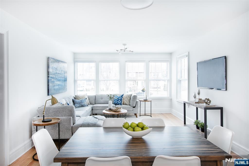 Move right into this fully renovated, modern rental featuring a bright open-concept living, dining, and kitchen area perfect for entertaining. The stylish kitchen offers quartz countertops, KitchenAid stainless steel appliances, and soft-close cabinetry, while oak hardwood floors, 9-foot ceilings, and oversized new windows enhance the space with warmth and natural light. Both bedrooms include custom closets, plus additional basement storage. Enjoy shared backyard access, in-unit laundry, energy-efficient heat and central air, and smart features including a Nest doorbell. Conveniently located steps from the NJ Transit 190 bus and a short walk to the train to NYC, with easy access to Rutherford’s downtown shops and dining. No pets or smoking. Street parking only.