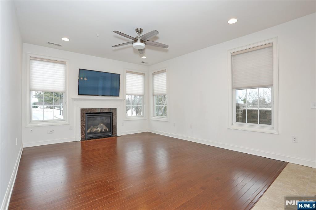 Enjoy upscale one floor living at the sought after Four Seasons at Ridgemont 55 plus community. This 2 bedroom, 2 bath unit offers 1,957 square feet of living space with many upgrades. Entry foyer invites you into the dining room with tray ceiling, open to living room with beautiful wood flooring throughout. Eat-in-kitchen with custom cabinetry, granite countertops, ss appliances and center island. Open concept from the kitchen to the family room with gas fireplace offers a fabulous entertainment flow w/breakfast area with sliders leading to a large private covered balcony. The primary bedroom suite has two walk-in closets, full bath with double vanities. Second bedroom, full bath and laundry room complete the living space. Garage parking with 2 parking spaces and 2 storage units. Enjoy resort-like amenities with Clubhouse for activities and social events throughout the year, exercise room, card room, outdoor pool, jacuzzi, bocci court and putting green. Close to major highways, restaurants, and shopping. One floor living at its best!