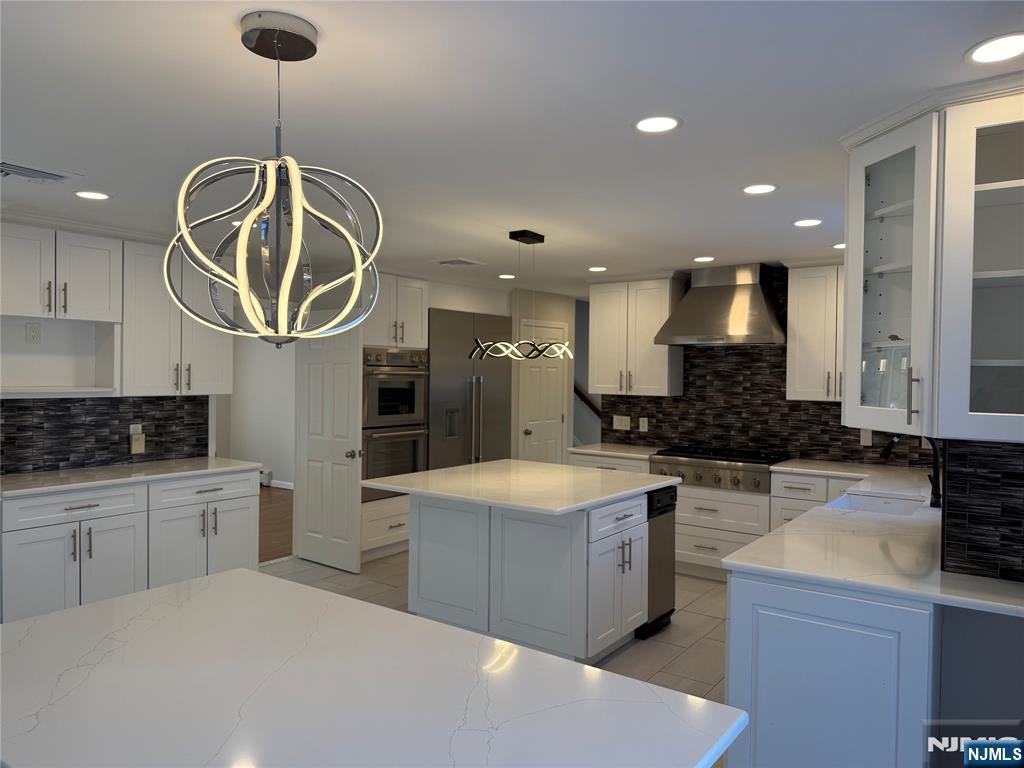 Beautifully updated 2-story contemporary blending architectural drama with a traditional center hall feel. A striking 2-story foyer and soaring volume ceilings set the tone, flowing into formal and casual living spaces including a gracious living room, music/library/den area, and expansive great room ideal for entertaining. The renovated kitchen features quartz countertops with a matching quartz dining table that can remain. Premium Thermador stainless steel appliances are included. Freshly painted house with extensive updates completed within the past few years, offering true move-in-ready appeal. The spacious primary suite offers a tranquil retreat with fitted closets and spa-like bath. While generously sized bedrooms provide abundant closet space that has been efficiently designed. A sun-filled, fully finished walk-out basement adds flexible living space and excellent storage. Major improvements include: Roof (2 yrs), Well (2 yrs), Water heaters (2 yrs), Furnace (2 yrs; serviced October 2025), multi-zone A/C (2 systems with 1 under 5 yrs and the other under 10), 5-zone baseboard heat, and the chimney flue has recently been professionally cleaned. Outdoor living features Trex decking, paver patio, in-ground sprinklers, and serene rear views overlooking a babbling brook with wooded views on over 1.3 acres. Built 1987. This wonderful home also has a 3 car attached garage and ample outdoor parking on the circular Belgium block driveway.