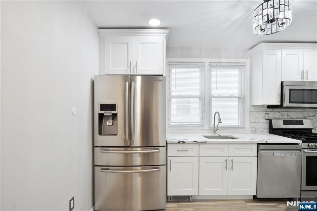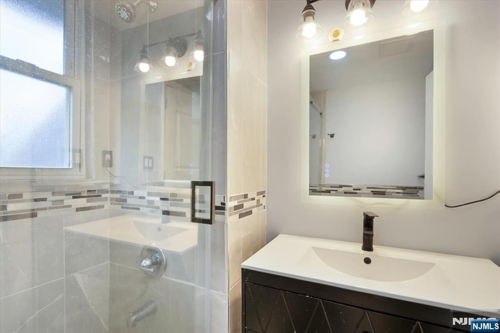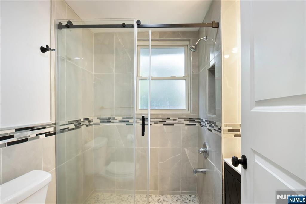 This beautifully renovated three level home for rent offers exceptional space, flexibility, and ultra modern upgrades throughout. The main level features a bright open concept living and dining area with decorative windows, a cozy den ideal for relaxing or working from home, and a sleek eat-in kitchen with white shaker cabinetry, quartz countertops, stainless steel appliances including a smart refrigerator, built in microwave and dishwasher, a pantry closet, and excellent natural light. Also on this level are two BDRMS, one featuring a spacious double closet and the other highlighted by a charming stained glass window, along with a full bath with glass shower doors and modern finishes. The second floor includes three bright BDRMS with HDWD floors, a modern full bath featuring a large stall shower with glass doors, and an oversized hall closet located in the hallway leading to the second level, offering exceptional storage. The fully finished lower level includes two large and versatile bonus rooms, a beautiful modern full bath, a full size washer and dryer, and a generous storage closet. Additional highlights include driveway parking for four cars, a private fenced backyard with a spacious covered patio, easily accessible through two rear entrances, Belgian block detailing, built-in gas grill, and recessed lighting throughout. Ideally located near the Little Falls train station, NYC transit, major highways, schools, restaurants, and shopping.