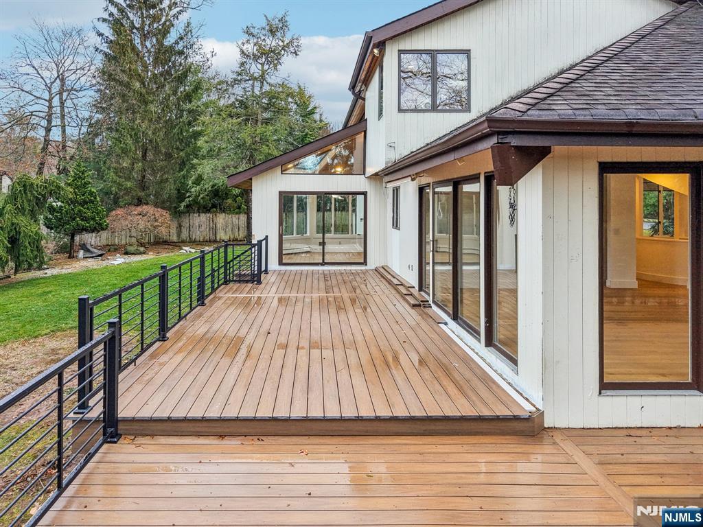 Presented by Sarah Chung. Located in Closter’s highly sought-after East Hill neighborhood, just a short distance from Hillside Elementary School and the town center, this architecturally distinctive home offers both convenience and an exceptional living environment. The home is filled with natural light, with windows on all sides creating a bright and airy atmosphere throughout the day. The entire house has been fully renovated and freshly painted, featuring brand-new kitchen appliances, a new washer and dryer, and a newly built deck. Landscaping will be completed in the spring, further enhancing the outdoor space. The main level includes a living room, formal dining room, updated kitchen, and a sun-filled breakfast room overlooking the backyard, along with a powder room and a laundry area. Upstairs, the spacious primary suite provides a comfortable retreat with a renovated bathroom and generous closet space, accompanied by three additional bedrooms and a full bath. The walk-out lower level offers flexible living space with a recreation room, an additional bedroom, a full bathroom, and direct access to the backyard. Lawn care is provided by the landlord, while the tenant is responsible for snow removal. This move-in-ready rental is a rare opportunity to enjoy a bright, fully renovated home in one of Closter’s most desirable neighborhoods.