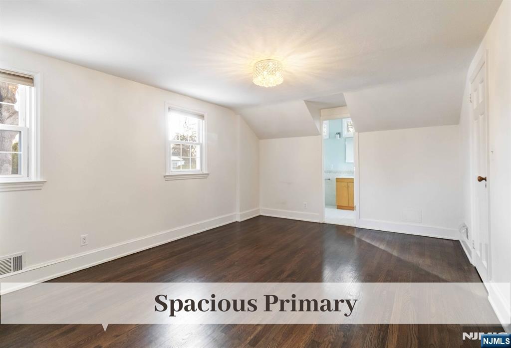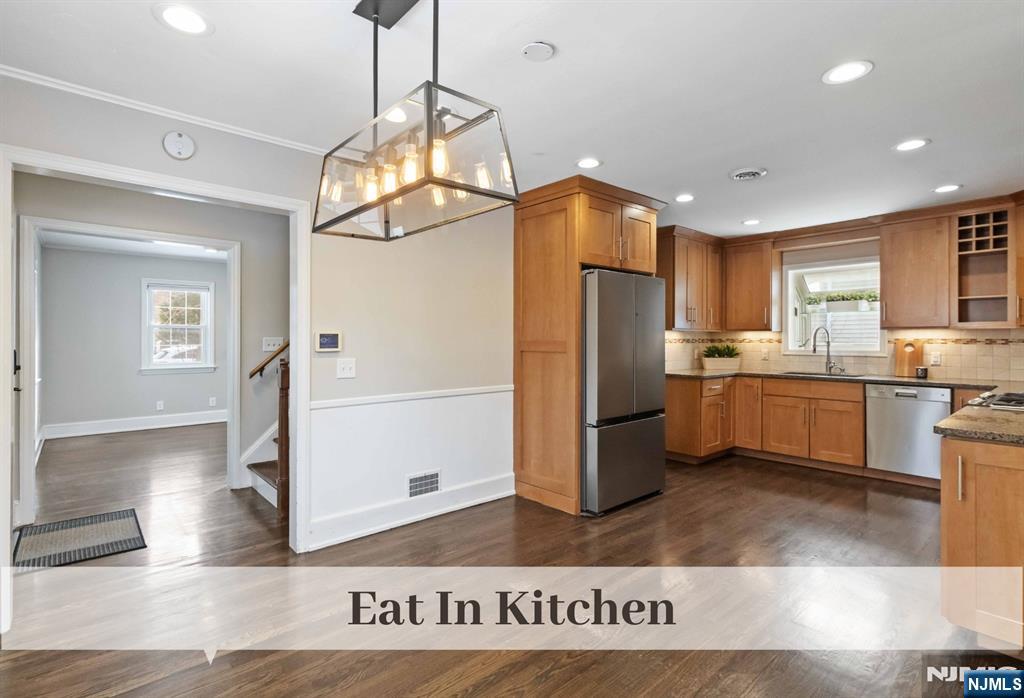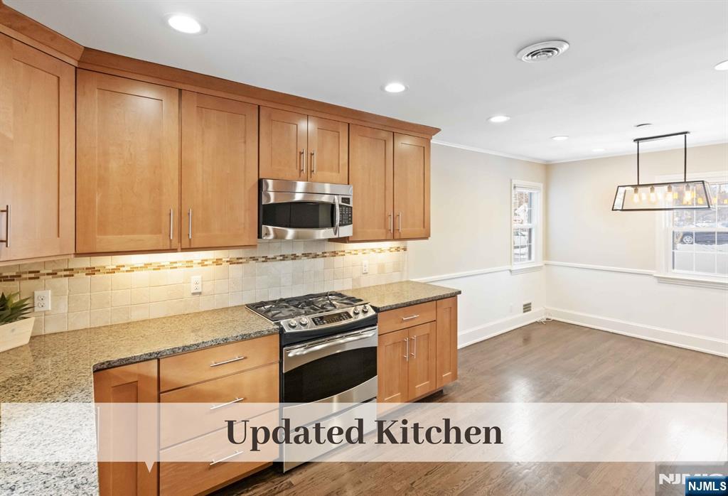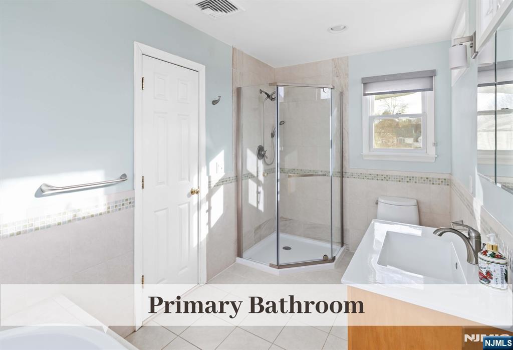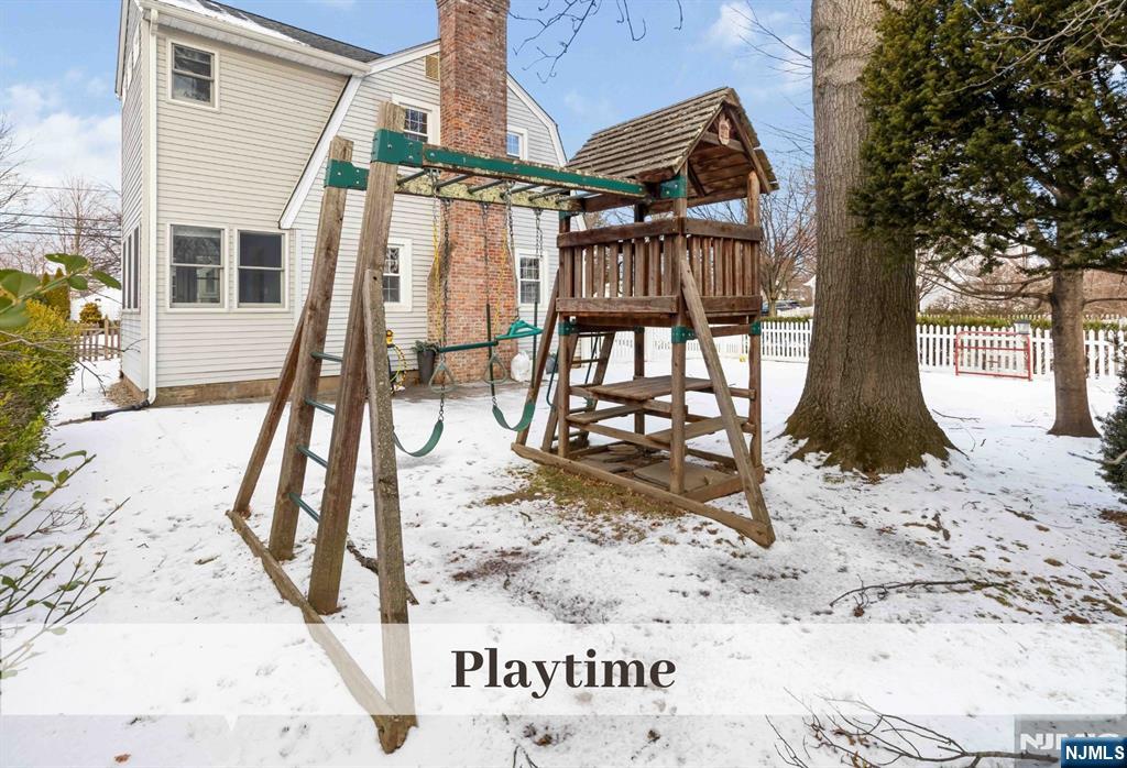 Meticulously maintained Colonial available sought-after Travell District. This inviting home offers a spacious living room with a gas fireplace, a separate den/office, and a convenient powder room on the first floor. The upgraded kitchen features stainless steel appliances and a dining area with easy access to the yard. The second floor includes a generous primary bedroom with an updated en-suite bath featuring a soaking tub and separate shower, along with two additional bedrooms and a renovated full bath. A large basement with high ceilings provides an excellent play area and flexible space. Additional highlights include an attached one-car garage, driveway parking for two cars, and a newly fenced, level yard. Ideally located on a quiet street close to Ridgewood schools, parks, and a bus stop with service to NYC.