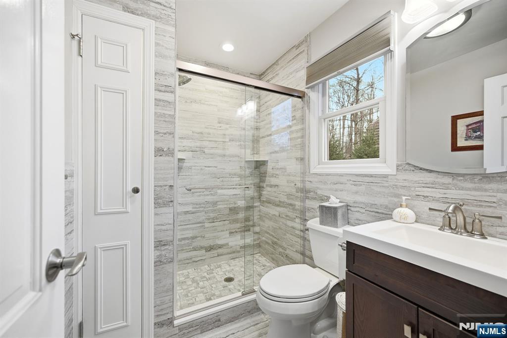 Experience the luxury of sophisticated ranch living in this expansive 4 bedroom, 4.5 bath home in desirable Upper Saddle River. Entry foyer welcomes you into the open floor plan with dramatic vaulted and sun-drenched open living room and dining room leading to chef’s kitchen with high-end appliances, center island, breakfast area and family room with stone fireplace. Beautiful primary suite with luxurious bath and closets galore overlooking the private backyard. There is a second en suite bedroom-perfect for your guests, and a third and fourth bedroom with main bath. The massive basement features entertaining area, office space, full bath and laundry room. Retreat to your private outdoor oasis with expansive tiered deck, heated pool with a cascading waterfall and integrated spa—picture perfect! Move right into this beautifully updated home. Bonus features include 5-car garage, full-home generator, and public sewers.