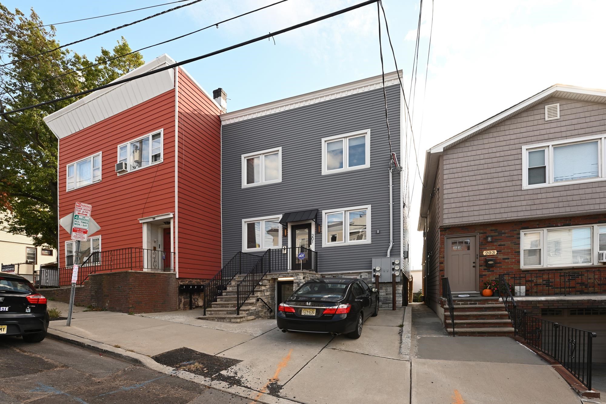 **PRIVATE BACKYARD + PARKING** Your next chapter begins at 201 Zabriskie #1, a beautifully redesigned two-story home in the heart of Jersey City Heights. Spanning nearly 1,800 square feet, this spacious 3-bedroom, 2.5-bath residence perfectly blends smart function, design, character, and comfort. This is true modern city living, complete with a fully finished private backyard and valuable private, off-street parking. Tucked away just moments from Leonard Gordon Park, Tonnelle Avenue, and the Holland Tunnel, this peaceful retreat offers quick access to the energy and amenities of the Heights and NYC. Step inside to a bright, open-concept main level. The living area is instantly inviting, centered around a cozy fireplace featuring a custom wood mantle and shiplap detail. Wood tile floors and custom lighting flow seamlessly into the full-size dining area and the gourmet kitchen, designed equally for everyday living and stylish entertainment. The kitchen is a sleek contemporary dream with Calcutta Bellow white quartz waterfall countertops and matching backsplash, custom cabinetry, and black stainless steel appliances and fixtures. It also boasts a large eat-in island, perfect for casual meals or larger gatherings. While the main level hosts two sizable bedrooms, each with a walk-in closet, the upper level is dedicated entirely to the private primary ensuite, offering a secluded sanctuary. Throughout the home, excellent built-in cabinets and closet space provide function and ease for daily living. The bathrooms feature luxurious touches, including a gorgeous glass shower with floor-to-ceiling herringbone tile, a spacious double vanity, and warm brass fixtures. Modern upgrades include central heating and air, a stacking LG washer & dryer, and a state-of-the-art video intercom system. Situated on a quiet, tree-lined street, this home delivers the best of modern city living in a prime location. Owners enjoy recently renovated Leonard Gordon Park with walking paths, playgrounds, farmers’ markets, and gardens. Jersey City Heights is known for its vibrant community, eclectic art scene, excellent schools, beautiful parks, and remarkably easy access to NYC. This is more than a home—it’s where smart luxury meets prime location. Welcome home to 201 Zabriskie #1.