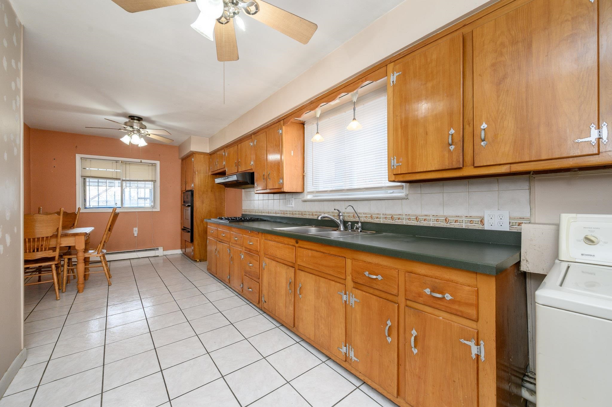 Location, location! Lovely 2 Bed 2 Bath Raised Ranch with Full Finished Basement on a prime corner lot in thriving West New York could be the one for you! Well maintained in a great commuter location, just steps to public transportation with easy accessibility to NYC, major roads, a block away from Miller Park, shopping, restaurants, and so much more. Tiled foyer entry gives way to a spacious interior with generous room sizes and plenty of natural light all through. Large formal living room and separate elegant dining room make entertaining easy, boasting brand new plush carpeting (with hardwood beneath the living room), along with luxe tin ceilings. Sizable eat-in-kitchen offers ample cabinet storage, tiled flooring, and plenty of dinette space, along with convenient laundry facilities. Down the hall, find the main full bath and accessible first floor bedroom. Finished full basement boasts another large, private bedroom, 2nd full bath and walk-in closet. Versatile rec/family room with wet bar and bonus kitchenette space, too! Plenty of extra storage space and access to utilities. Rear carport with driveway parking is an added bonus, fenced-in for your privacy. Upgrades inc a new furnace installed 12/21/24 with 10 yr transferrable warranty, along with a new electrical box installed on 3/25/25. An excellent starter home for first time buyers or a great rental property to add to your portfolio. Don't miss out! *Coming Soon - Showings begin Saturday 1/10*