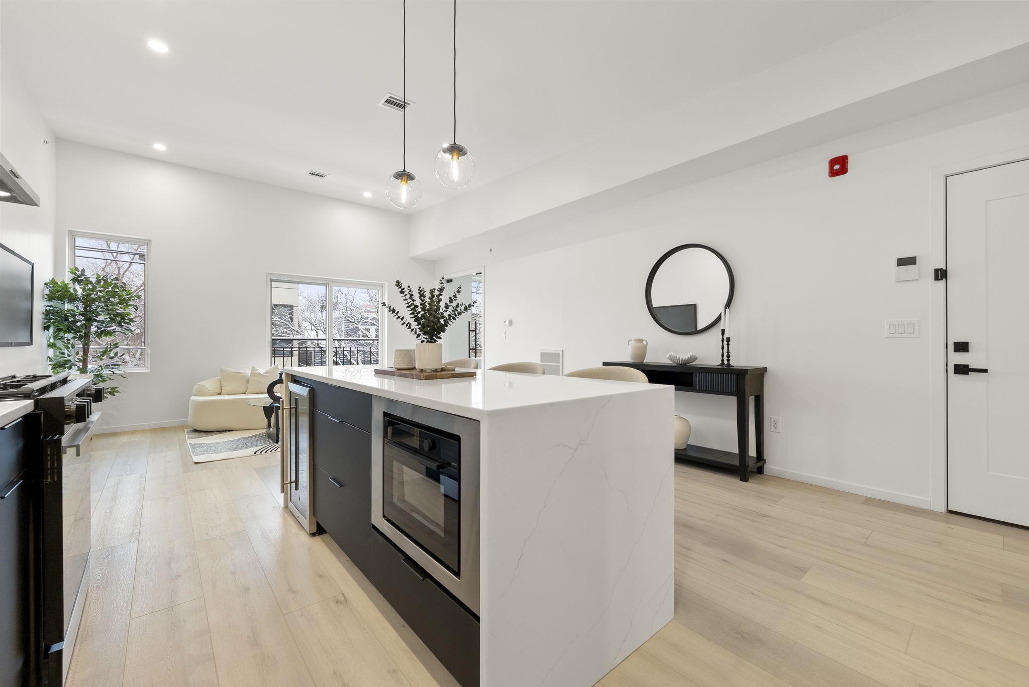 Elevated Living Starts Here!! Nestled in the heart of The Heights, the fully renovated 63 Webster Ave offers three luxurious condos. Unit 3 features 2 bedrooms, 2 baths, and a glass enclosed Office/Den space, designed with sleek modern finishes and smart layouts. Enjoy access to the roof deck—perfect for relaxing, working outdoors, or hosting casual get-togethers with a view. The Heights neighborhood of Jersey City boasts vibrant energy and is commuter-friendly, just a few blocks from Pershing Field Park and Riverview-Fisk Park. Enjoy top-rated restaurants, cozy cafés, and local markets all within reach. *virtually staged rooftop photos *preliminary floor plans on architectural drawings. Final floor plans to come