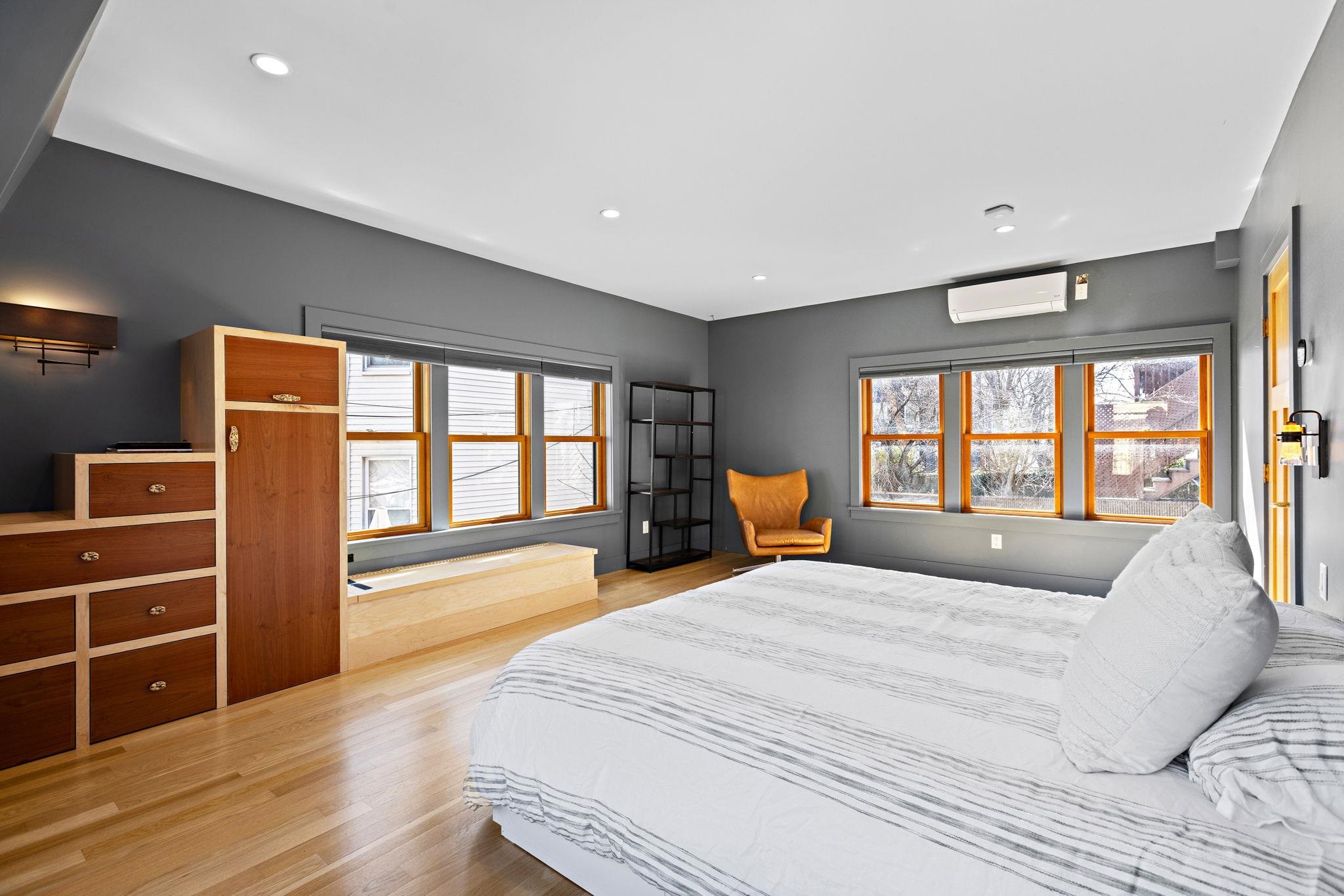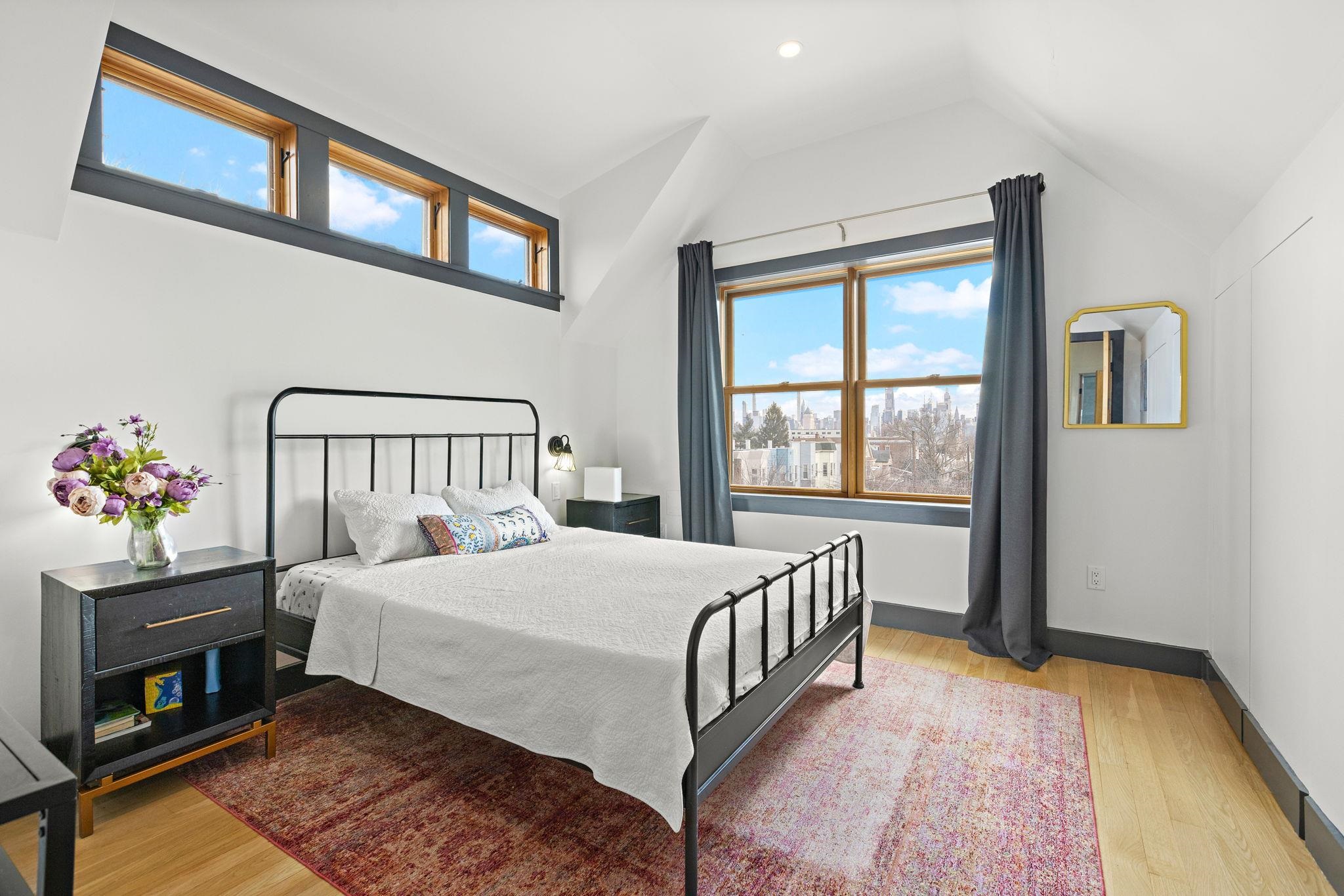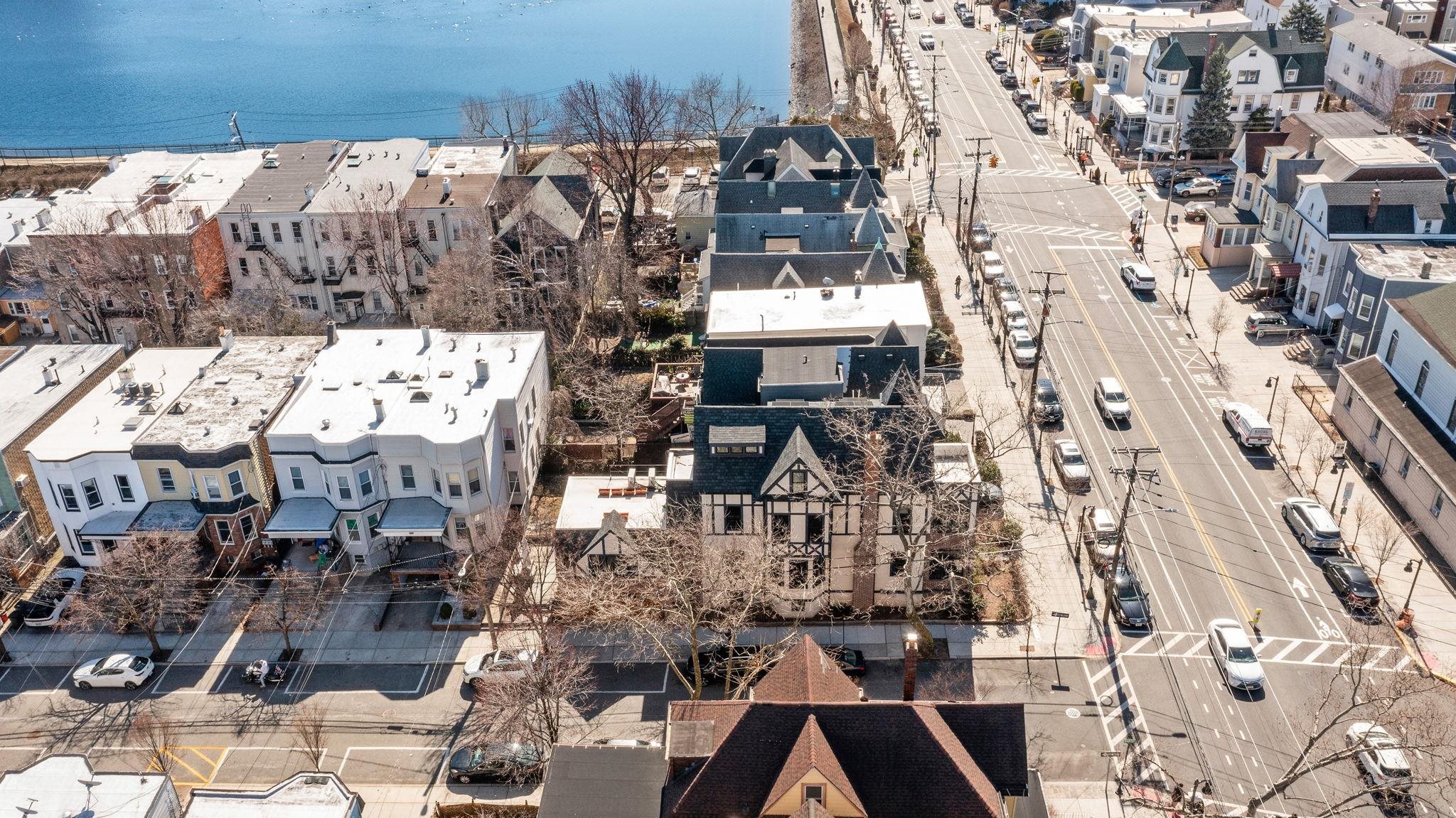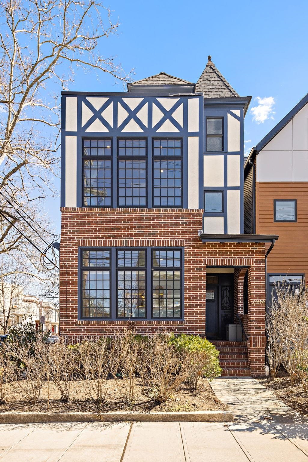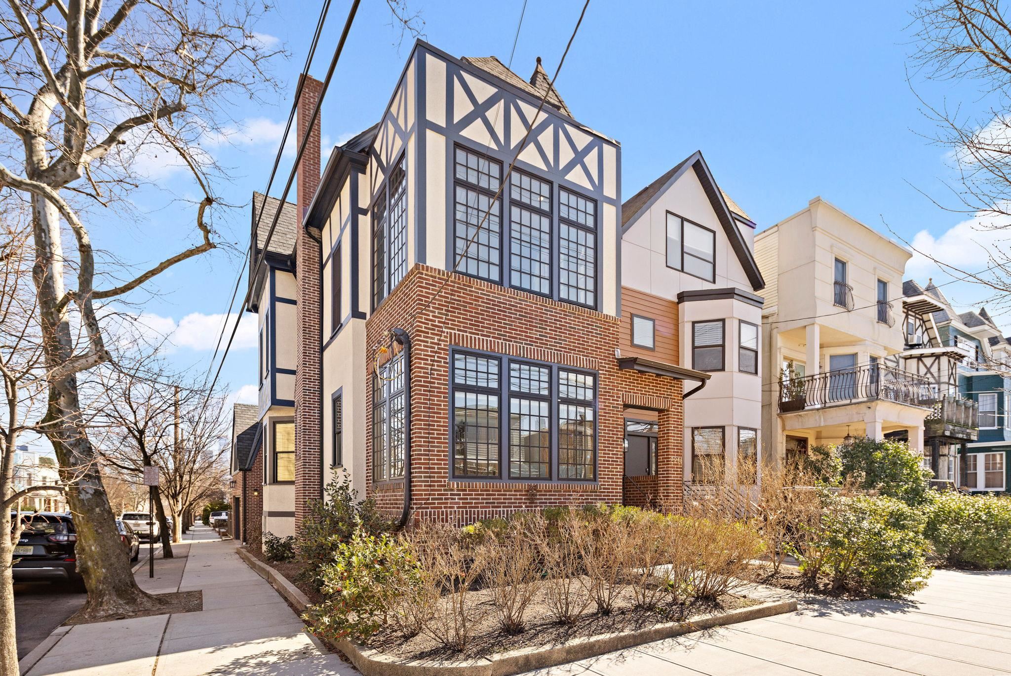 This exquisitely restored 2-family English Tudor in Weehawken, featuring a two-car garage, seamlessly combines charm with modern elegance. Fully renovated from top to bottom, this stunning home sits on a spacious corner lot, just moments from the park and township reservoir. With its refined design and impeccable craftsmanship, every detail exudes sophistication, making this residence an absolute stand out in the area. Renovated in 2021, with further upgrades in2023 and 2024, this home offers an exceptional living experience. Upon entering through the vestibule, you are greeted by beautiful mosaic tiles leading to a five-bedroom, three-bathroom home spanning three levels of thoughtfully crafted, custom design. The first floor boasts an open layout, featuring an expansive chef’s kitchen, a sunlit eat-in dining room, and a generous living room with wall-to-wall shelving. The kitchen is a culinary masterpiece with recently refinished wood cabinetry, sleek quartz countertops, and top-of-the-line stainless steel appliances including a Miele steam combination oven, built-in microwave and a kitchen sink with a reverse osmosis filter. Beyond the living room, you’ll find a bedroom with a Murphy bed—ideal as an office or study—and a den currently serving as a workout area. The second floor is an entertainer’s paradise, featuring a state-of-the-art wet bar and kitchen complete with a stainless steel wine fridge, dishwasher, and double ovens. This level also includes a spacious game room and a second living room with an HD video projection setup. The expansive primary bedroom offers custom handcrafted closets and an en-suite bathroom, along with a sunroom that features a luxurious bronze soaking tub. The third floor houses three bedrooms, two with vaulted ceilings, and one with soaring ceilings that provide breathtaking views of New York City. This level also includes another full bathroom and a washer/dryer. Throughout the home, you'll find spa-like bathrooms with frameless glass shower enclosures, custom lighting, crown moldings, and ample storage. The private apartment entrance leads you upstairs to a sun-filled main bedroom with custom shelving and storage, a full bathroom, and a washer/dryer. Alternatively, you can head downstairs to the second bedroom and newly renovated kitchen with wood cabinetry, tiled backsplash, quartz countertops and stainless steel appliances. This apartment is ideal as an in-law suite or a rental unit, offering the potential for rental income to offset your expenses. Additional features include built-in split A/C systems, radiant heated floors, an on-demand water heating system, a Springwell whole-house water filtration system, pristine hardwood floors, solar panels with net metering, and smart home technology, including Nest, Google Home, Lutron Caseta, and electronic locks. The two-car garage, with custom barn-style doors and remote operation, is equipped with an electric Tesla charger and offers additional storage space. At the rear of the home, an outdoor patio with slate flooring provides the perfect space for barbecuing and unwinding. This location provides excellent transportation options, with convenient access to buses and ferries that can get you to Midtown Manhattan in just 15 minutes. Weehawken boasts a variety of shops and restaurants, along with a stunning waterfront complex featuring multiple pools for relaxation and recreation.