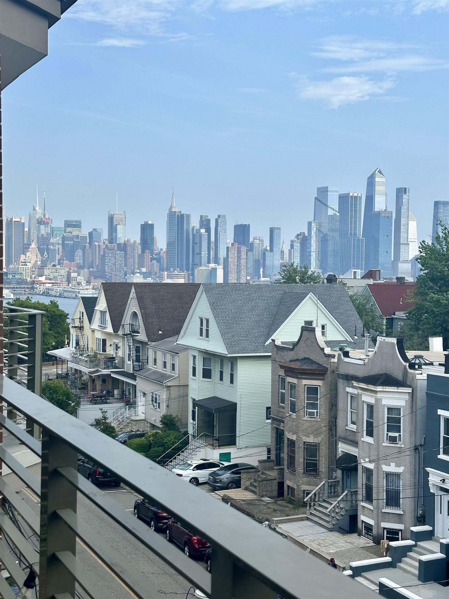 Live above it all in this spacious luxury one-bedroom, two-bath condo perched atop the Weehawken cliffs. Ideal for commuters, this top-floor residence is just moments from bus and ferry access to NYC and offers an oversized private terrace with floor-to-ceiling glass doors showcasing stunning NYC skyline views and unforgettable sunrises and sunsets. The open-concept kitchen and living area is perfect for everyday living and entertaining, featuring granite countertops, stainless steel appliances, 42†cabinetry, and a mosaic backsplash. Additional features include 9’ ceilings, crown molding, Brazilian hardwood floors throughout, Andersen windows, custom automatic shades, in-unit washer/dryer, and central HVAC. Reserved parking in garage is included—an exceptional convenience in this highly desirable location