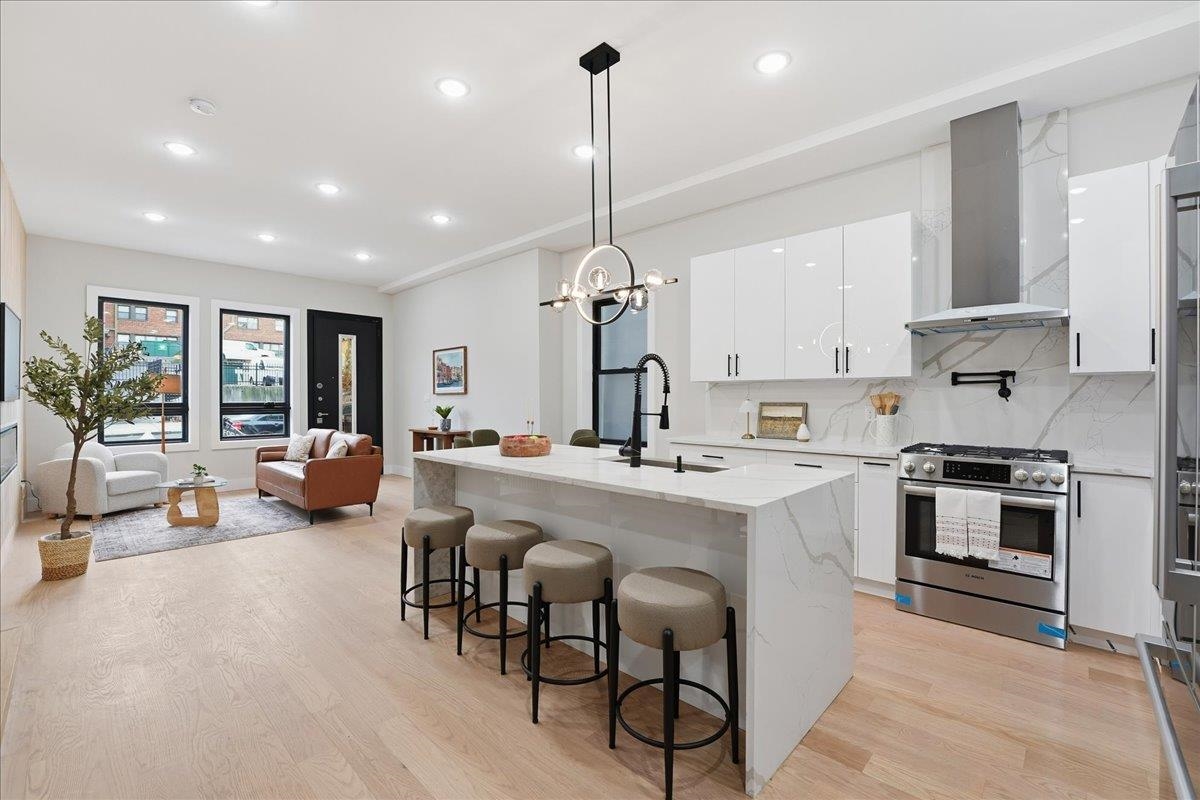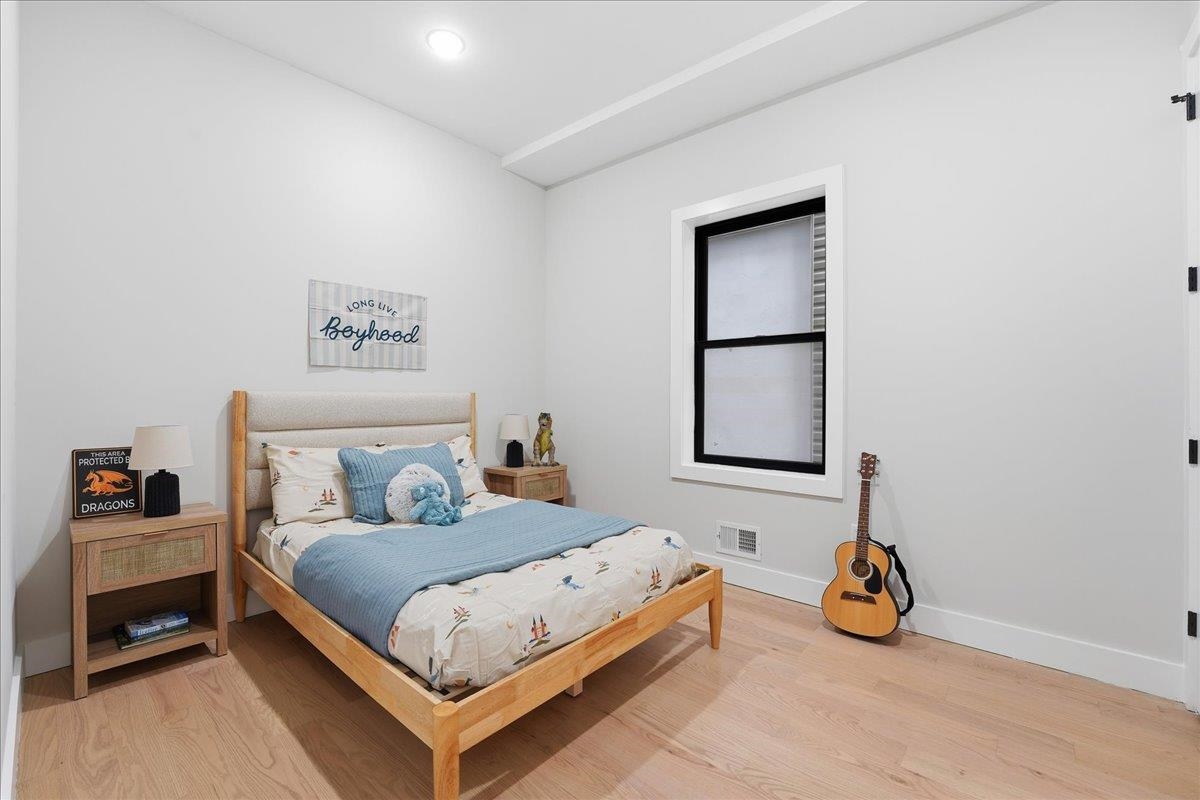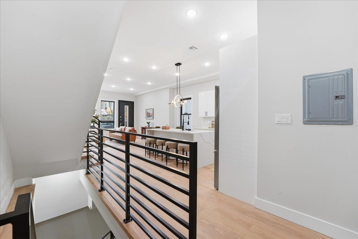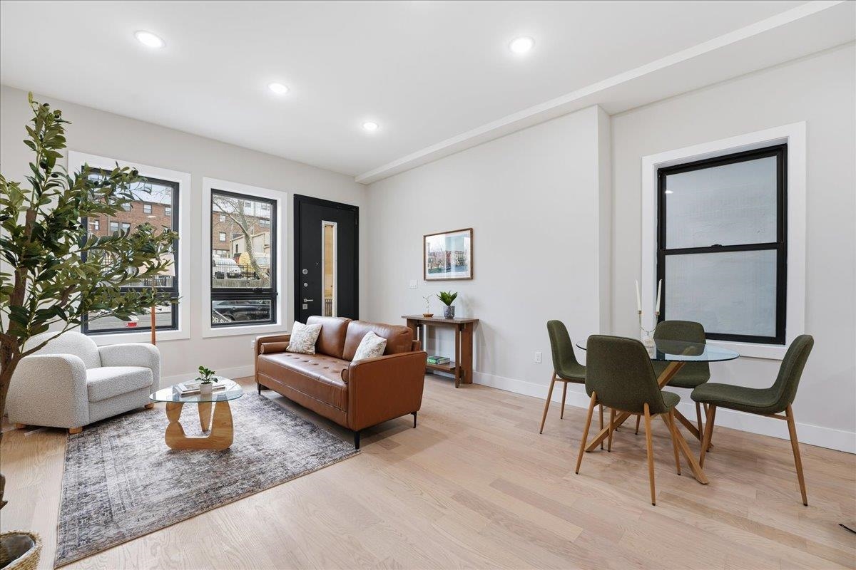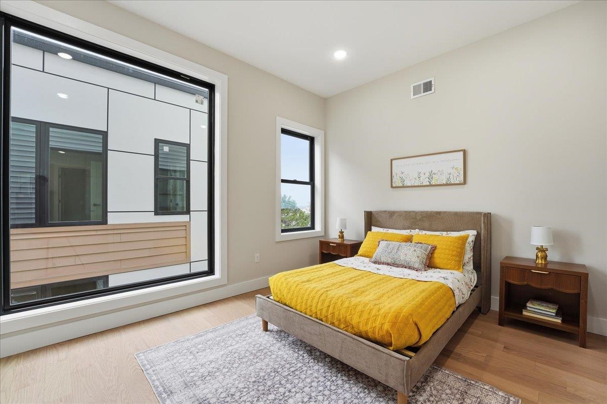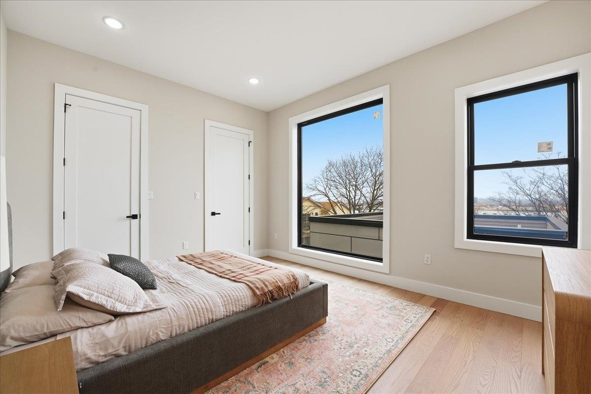 Welcome to this stunning 2,245 sq ft new construction condo nestled in the quieter Western Slope section of Jersey City Heights. This spacious three-level home offers 4 bedrooms, 3.5 bathrooms, and a thoughtful layout ideal for today’s lifestyle. The main level welcomes you with soaring 10-foot ceilings, Andersen windows, and 5-inch-wide hardwood floors that run throughout the home. An open-concept living and dining area flows seamlessly into the modern kitchen, featuring Samsung stainless steel appliances, crisp white cabinetry, and clean contemporary finishes. Two bedrooms on the first floor offer flexibility for guests, kids, or a home office. Upstairs, you'll find two private bedroom suites, each with its own beautifully tiled en-suite bath featuring floor-to-ceiling tilework. The lower level adds even more living space with a large family room complete with a wet bar, plus a bonus flex room, ideal for an office, home gym, or extra storage. Situated on the serene, low-traffic Western Slope of Jersey City Heights, this home offers the perfect blend of peace and accessibility, with parks, shopping, and commuter routes just minutes away. A rare opportunity to own a spacious, well-crafted condo in one of Jersey City's most desirable up-and-coming neighborhoods.