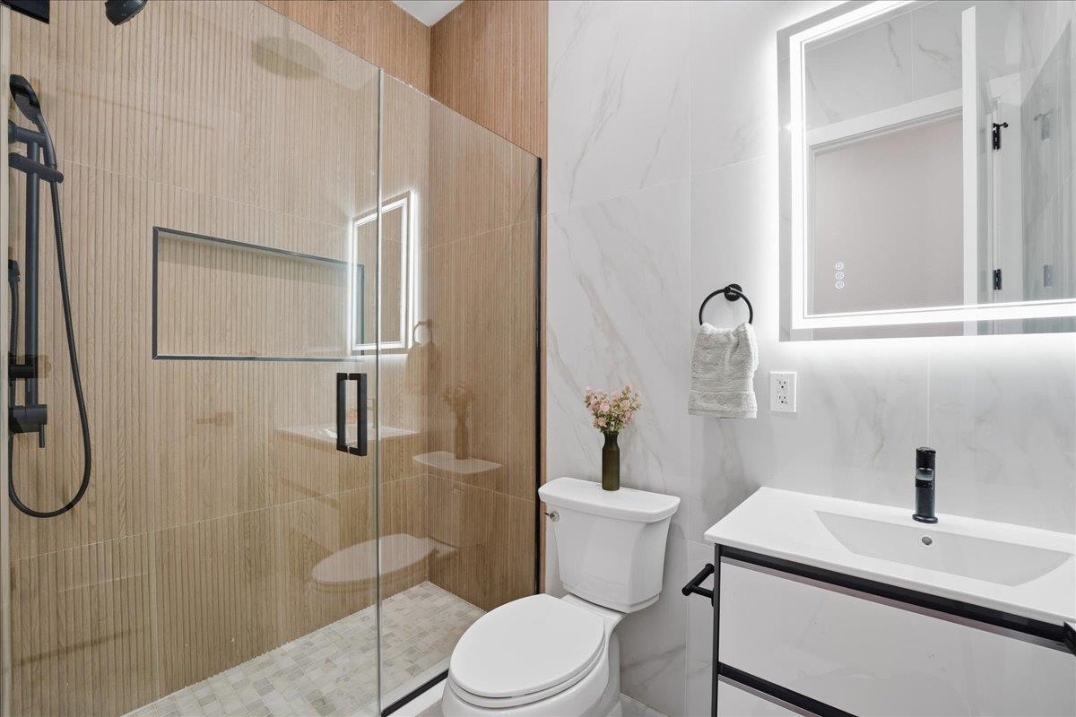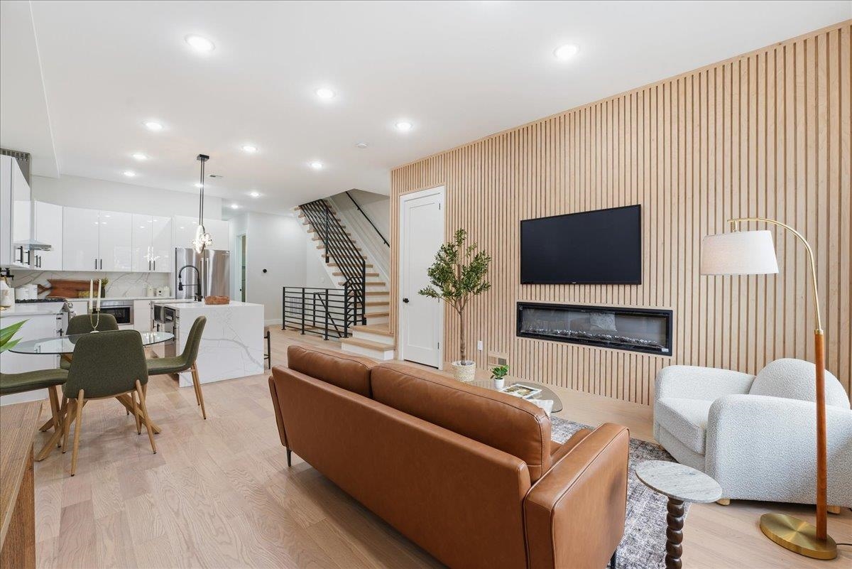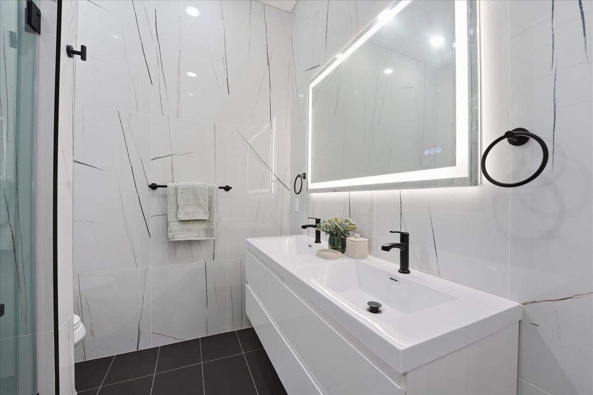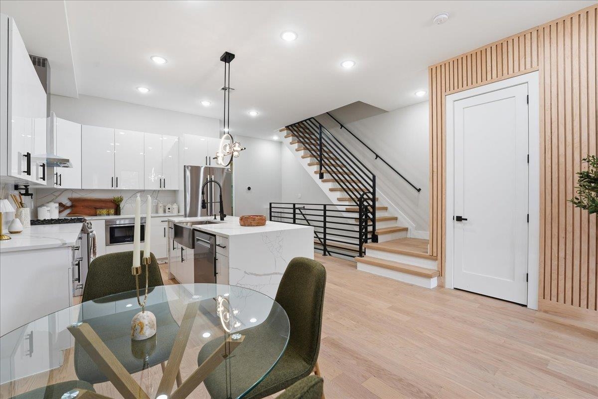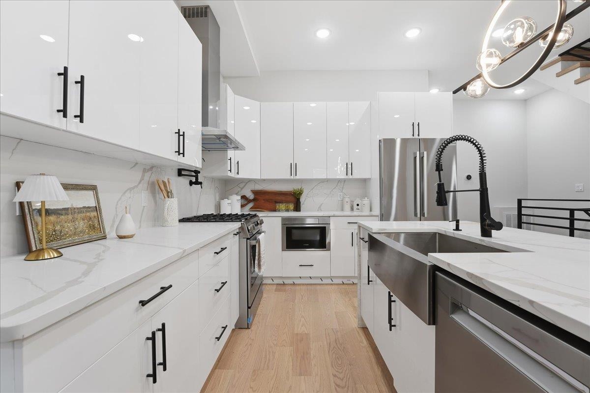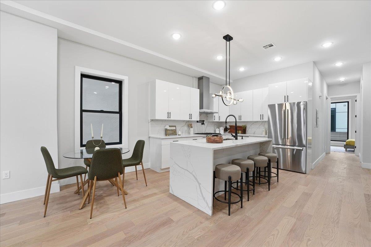 Welcome to this stunning 2,245 sq ft new construction condo nestled in the quieter Western Slope section of Jersey City Heights. This spacious three-level home offers 4 bedrooms, 3.5 bathrooms, and a thoughtful layout ideal for today’s lifestyle. The main level welcomes you with soaring 10-foot ceilings, Andersen windows, and 5-inch-wide hardwood floors that run throughout the home. An open-concept living and dining area flows seamlessly into the modern kitchen, featuring Samsung stainless steel appliances, crisp white cabinetry, and clean contemporary finishes. Two bedrooms on the first floor offer flexibility for guests, kids, or a home office. Upstairs, you'll find two private bedroom suites, each with its own beautifully tiled en-suite bath featuring floor-to-ceiling tilework. The lower level adds even more living space with a large family room complete with a wet bar, plus a bonus flex room, ideal for an office, home gym, or extra storage. Situated on the serene, low-traffic Western Slope of Jersey City Heights, this home offers the perfect blend of peace and accessibility, with parks, shopping, and commuter routes just minutes away. A rare opportunity to own a spacious, well-crafted condo in one of Jersey City's most desirable up-and-coming neighborhoods.