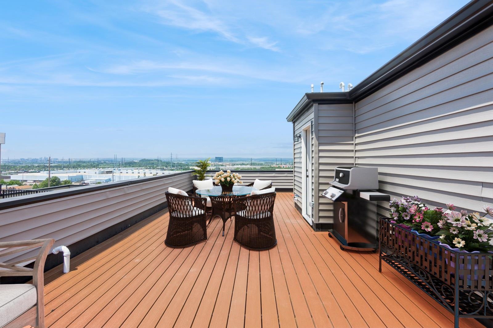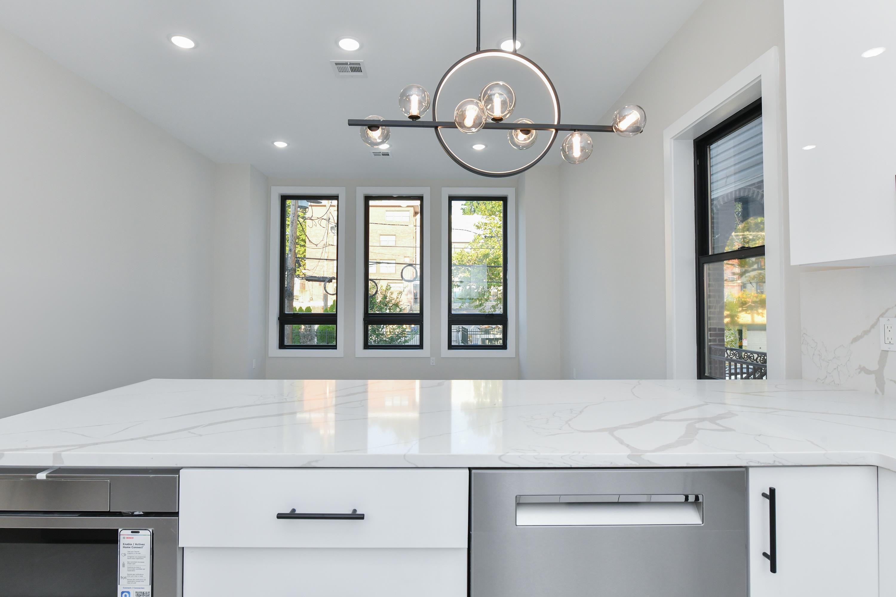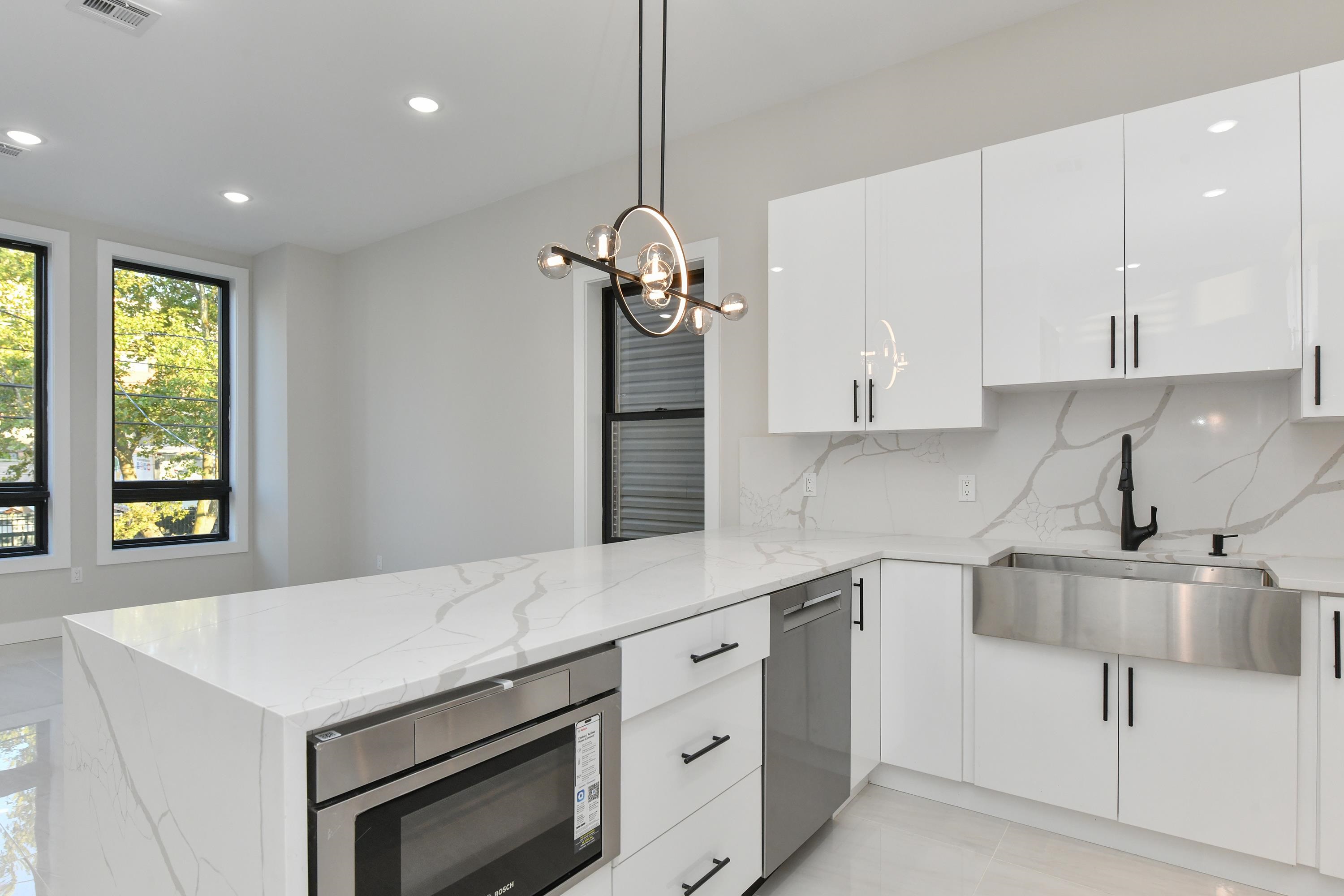 Welcome and step into this elegant 1,576 sq ft duplex condo in the tranquil Western Slope section of Jersey City Heights. This thoughtfully designed 3-bedroom, 2.5-bath home offers multiple living spaces, top-tier finishes, and a massive private roof deck perfect for indoor-outdoor living. The first floor features a spacious living room, a designated dining area, and a modern kitchen with an oversized island, Samsung stainless steel appliances, sleek white cabinetry, and durable quartz countertops. A stylish half bath completes the main level. Upstairs, you’ll find a bright and spacious layout with three bedrooms and two full baths, including a large primary suite with a beautifully tiled en-suite bathroom. At the front of the home, a second expansive living area is framed by massive Andersen windows that flood the space with natural light, ideal for lounging, entertaining, or working from home. Enjoy the outdoors from your private 565 sq ft roof deck, built with Trex decking for long-lasting, low-maintenance enjoyment. With 5-inch-wide hardwood floors throughout, 10-foot ceilings, and high-quality finishes, Unit 2 offers the perfect blend of function and sophistication in one of Jersey City’s most peaceful and conveniently located neighborhoods.