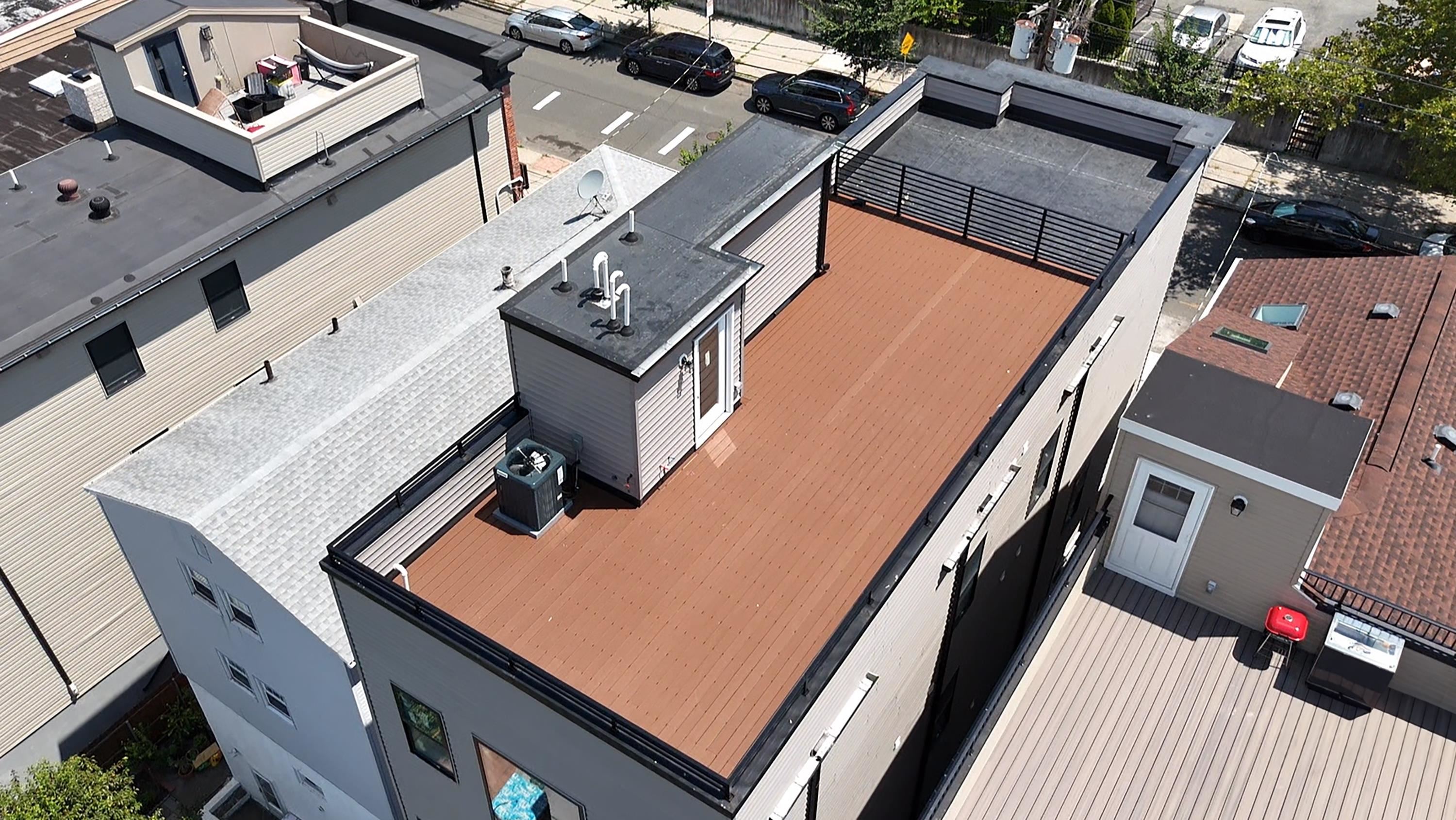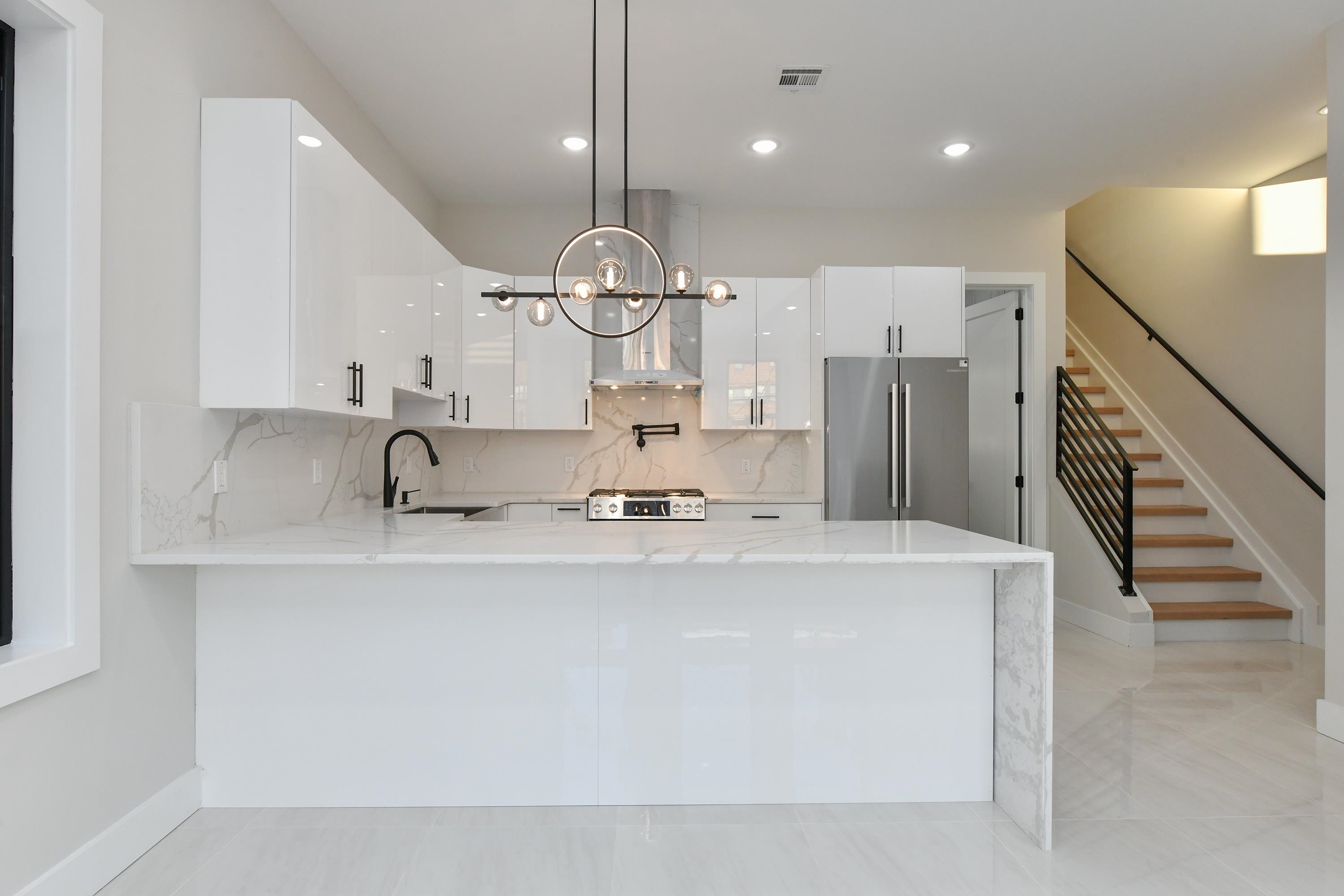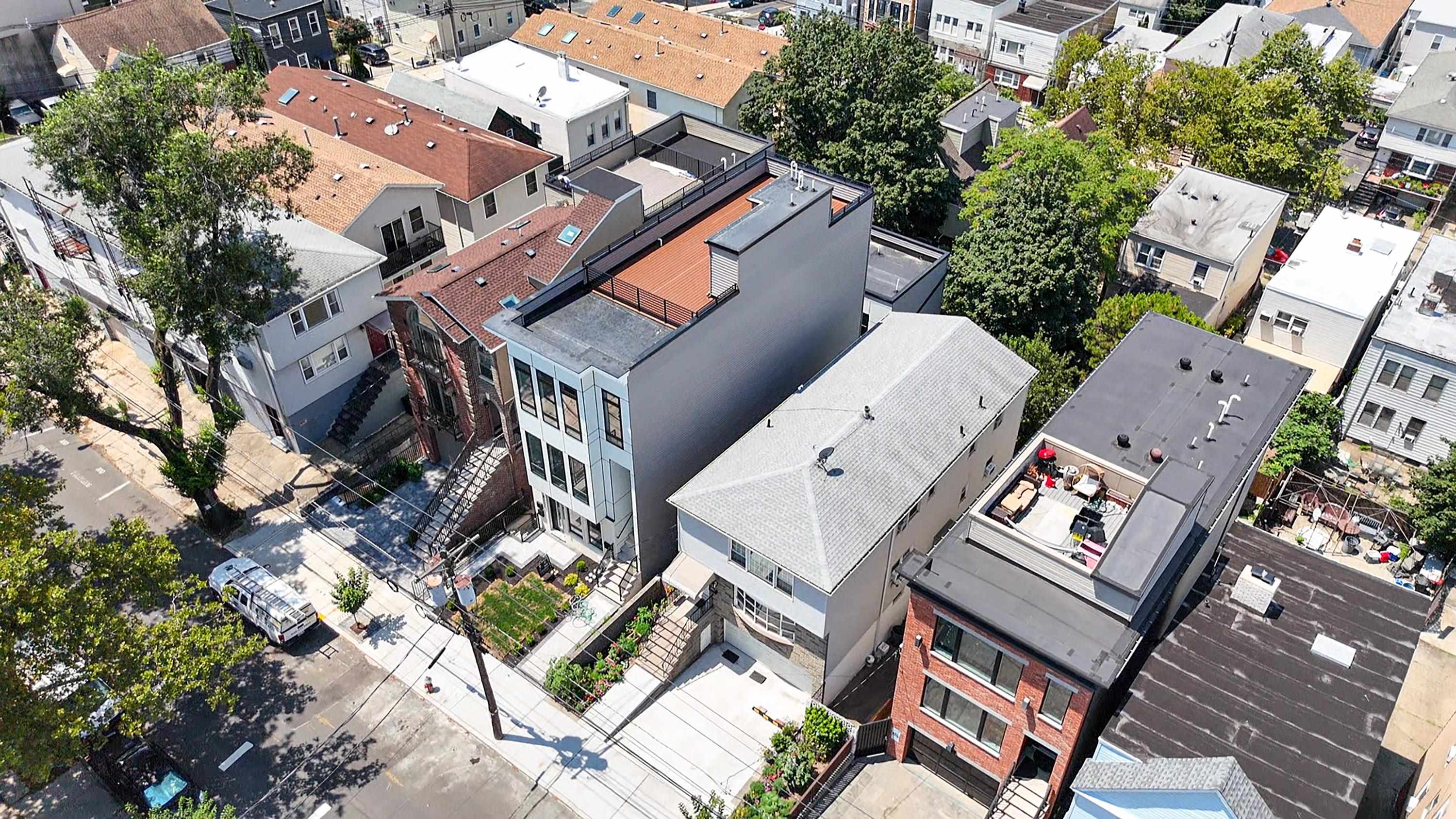 Welcome and step into this elegant 1,576 sq ft duplex condo in the tranquil Western Slope section of Jersey City Heights. This thoughtfully designed 3-bedroom, 2.5-bath home offers multiple living spaces, top-tier finishes, and a massive private roof deck perfect for indoor-outdoor living. The first floor features a spacious living room, a designated dining area, and a modern kitchen with an oversized island, Samsung stainless steel appliances, sleek white cabinetry, and durable quartz countertops. A stylish half bath completes the main level. Upstairs, you’ll find a bright and spacious layout with three bedrooms and two full baths, including a large primary suite with a beautifully tiled en-suite bathroom. At the front of the home, a second expansive living area is framed by massive Andersen windows that flood the space with natural light, ideal for lounging, entertaining, or working from home. Enjoy the outdoors from your private 565 sq ft roof deck, built with Trex decking for long-lasting, low-maintenance enjoyment. With 5-inch-wide hardwood floors throughout, 10-foot ceilings, and high-quality finishes, Unit 2 offers the perfect blend of function and sophistication in one of Jersey City’s most peaceful and conveniently located neighborhoods.