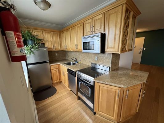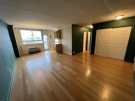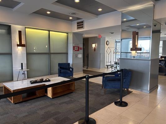 Rent this charming 695 sq. ft., one-bedroom, one-bath condo offers a spacious living/dining room combo, a functional galley kitchen, and laminate flooring throughout. High ceilings with crown molding, large closets, and a private balcony with stunning views complete the space. Enjoy 24/7 building staff and fantastic amenities, including a heated pool, sundeck, courtyard, co-working space, resident's lounge, table tennis, gym, deli, storage, dry cleaner, laundry, and on-site daycare. Located near Washington Park and bordering Hoboken/Jersey City Heights, you'll have easy access to NYC via Express Bus, Light Rail, or the free shuttle to Hoboken PATH. Hoboken's top spots like Trader Joe's and ShopRite are just an elevator ride away. All Utilities included in rent. Parking an additional $150/month
