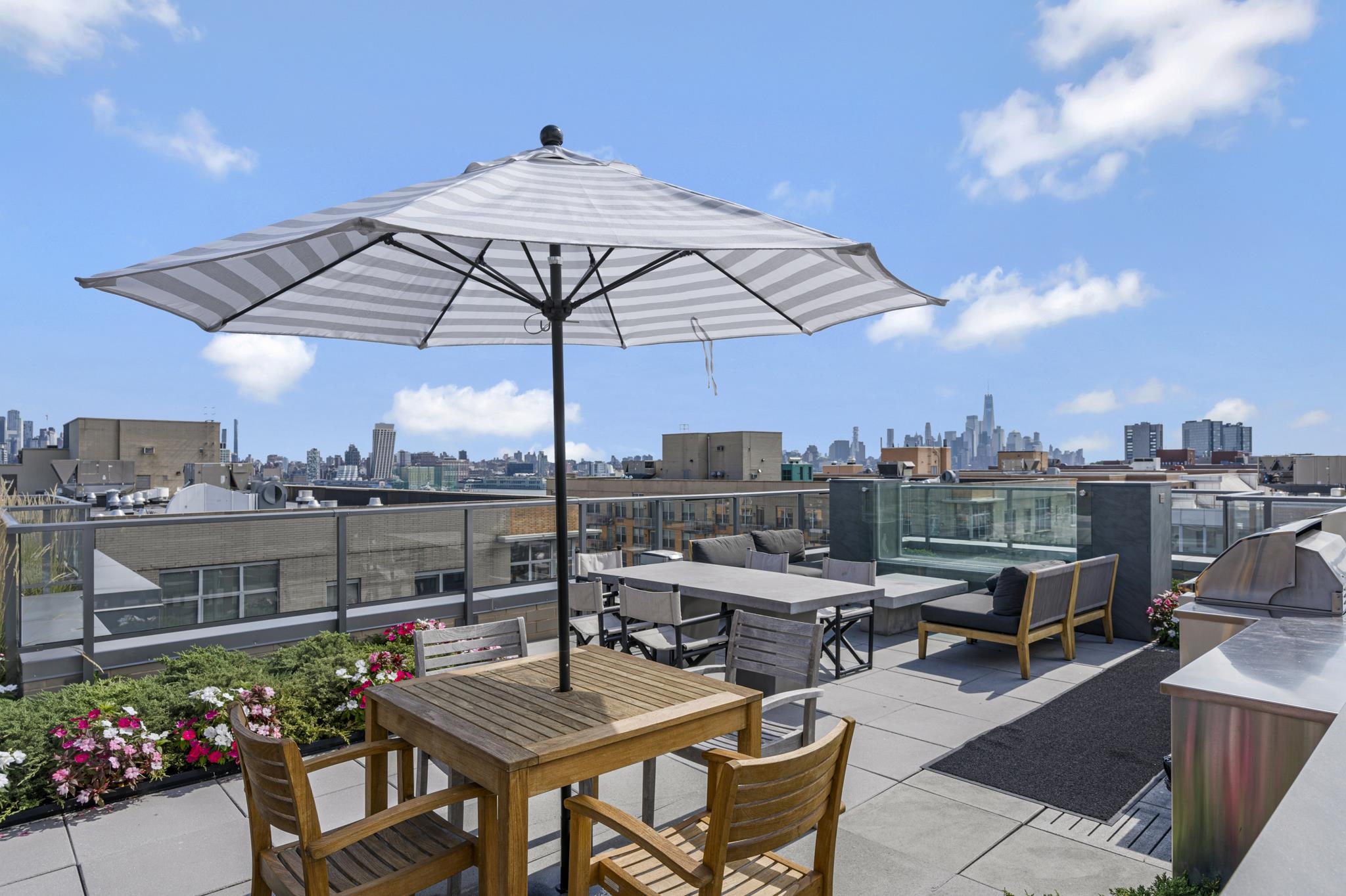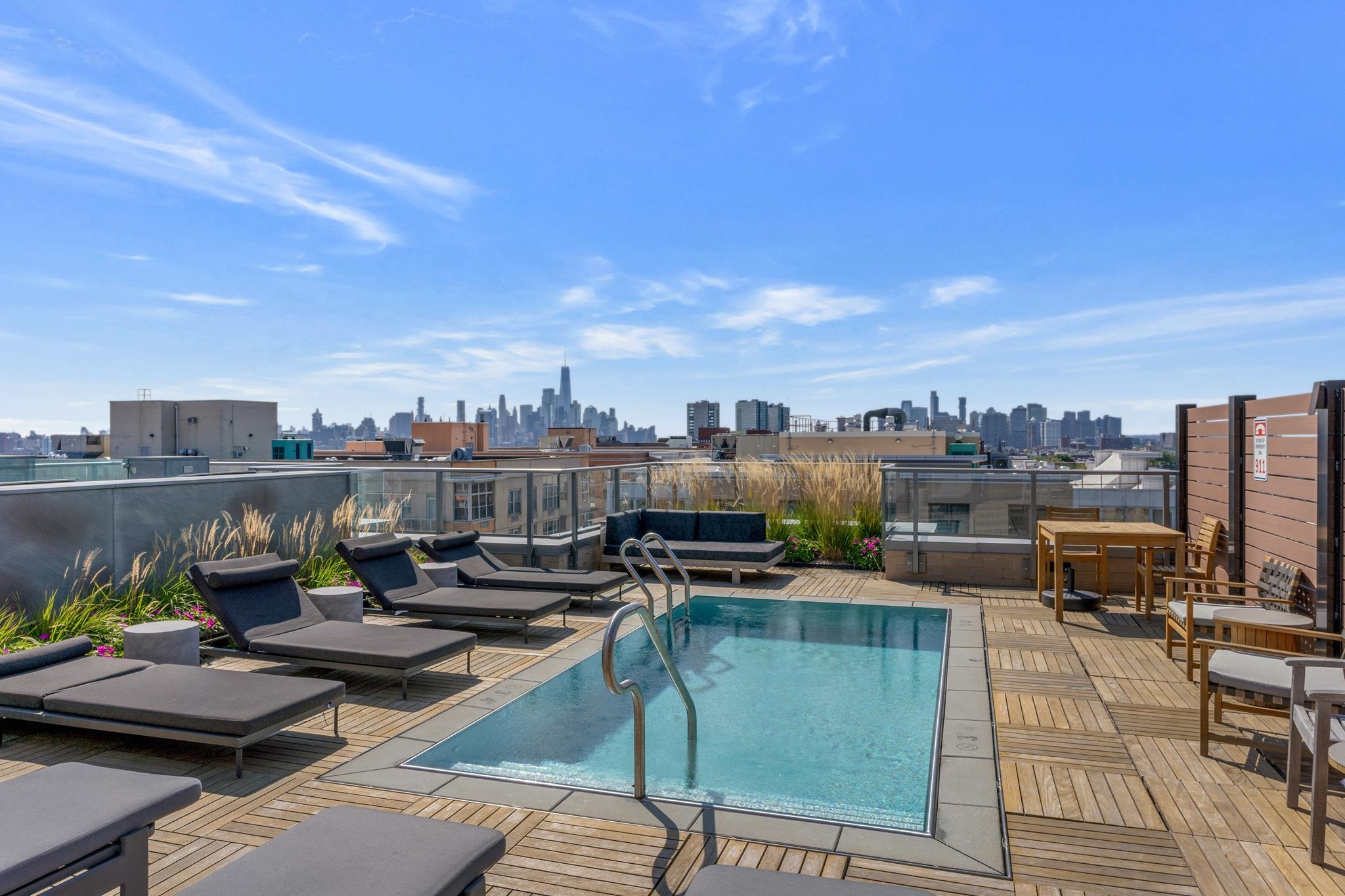 Residence 6C at 1425 Hudson is the kind of uptown waterfront home that rarely lingers, and for good reason. Perfectly positioned just steps from the 14th Street Ferry and a resident shuttle to the Hoboken PATH, this 1-bedroom, 1-bath residence delivers effortless access to Manhattan while offering a refined retreat at home. The west-facing layout is bathed in warm afternoon light through dramatic floor-to-ceiling windows, creating an airy, modern living space ideal for both everyday living and entertaining. The kitchen is sleek and functional with honed quartz countertops, custom cabinetry & backsplash, and top-tier Thermador appliances, while the bedroom offers generous storage and a calm, comfortable escape. A spa-like bath, wide-plank hardwood floors, central air, motorized blinds, and in-unit washer/dryer complete the package. Set within one of Hoboken’s premier boutique full-service buildings, residents enjoy 24-hour concierge, a state-of-the-art fitness center, children’s playroom, and a stunning rooftop with grills, plunge pool, and panoramic Manhattan skyline views. This is luxury living with unbeatable convenience, and a smart move for buyers who recognize true value when they see it.