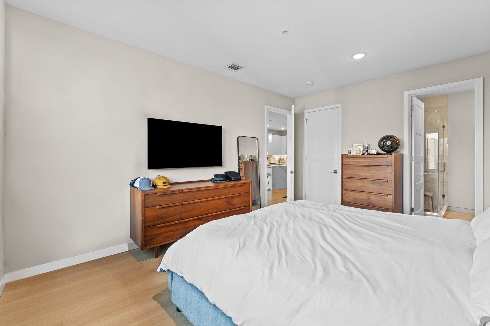 Bright & spacious 2 bedroom, 2 bathroom condo in modern 2019 constructed boutique condo building which features garage parking, elevator access and a large shared yard & patio. This second floor unit features luxury finishes throughout with wide-plank wood flooring, designer kitchen & bathrooms, central AC, in-unit laundry, Ring security cam & system, large windows, a large private balcony and more! Large open living room has plenty of room for a dining table and opens up to the kitchen, which features quartz countertops, stainless steel appliances, and a beautiful waterfall peninsula, offering plenty of counter space. Primary bedroom includes an en suite with a double vanity, glass enclosed shower and a rain shower head. Second bedroom is spacious and includes a walk-in closet with an infrared sauna. Situated on the border of Hoboken and Jersey City Heights, the neighborhood is known for its rich cultural heritage, vibrant arts scene, walkable streets, local shops, restaurants, parks, and sweeping views of the Manhattan skyline from atop the Hudson Palisades. Washington Park’s multi-million dollar renovation includes 10 tennis courts, 2 pickleball courts, basketball courts, a large playground, a splash pad, dog park, picnic benches, walking trails and more! Commuters will love the quick access to New York City: NJ Transit buses provide frequent service to Port Authority in 20 - 30 minutes. You’re also just a couple of blocks to the 9th St Light Rail, which can get you to the PATH train or to downtown Hoboken / Jersey City. For drivers, Route 495 and the Lincoln Tunnel make car commutes into Manhattan a breeze. Whether you’re seeking urban convenience, cultural vibrancy, or an affordable alternative to Manhattan / Hoboken living without sacrificing space or comfort, this home delivers with style, location, and unbeatable access to everything the area has to offer.