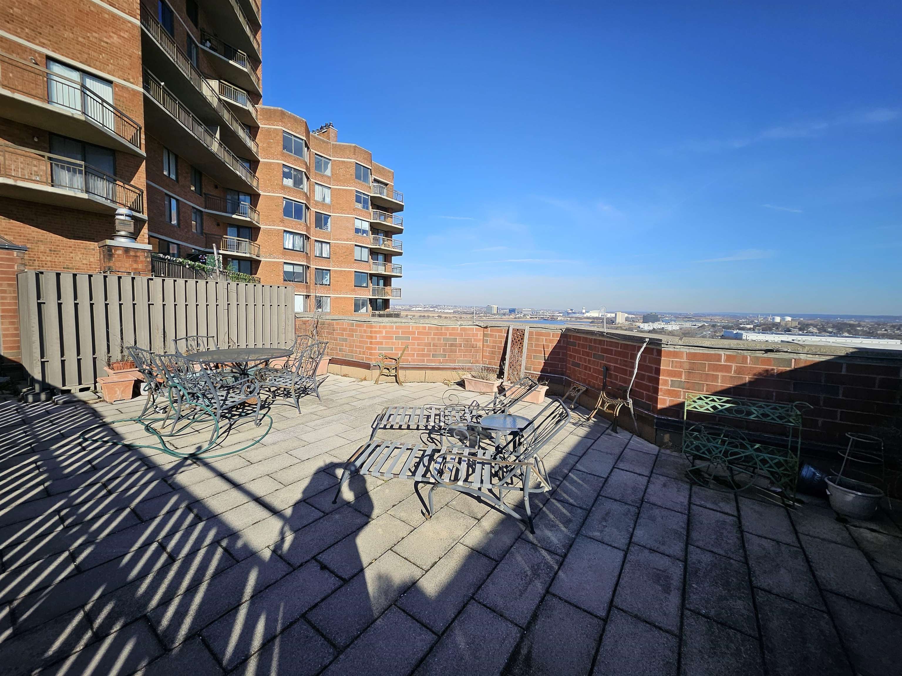 An exceptional and a rare opportunity to own the only penthouse currently available in Harmon Cove Tower. Panoramic view from rooftop terrace as well as another terrace from dining room. This distinguished 2-bedroom, 2-full-bath residence features a built-in fireplace and an expansive private rooftop terrace, creating an elevated living experience ideal for both refined entertaining and everyday luxury. The generous floor plan provides a blank canvas for a discerning buyer to customize and modernize to their lifestyle and taste. Offered AS-IS, this penthouse presents an unmatched opportunity to create a residence tailored to your vision in one of the building’s most coveted property. A rare and exclusive home with endless potential.