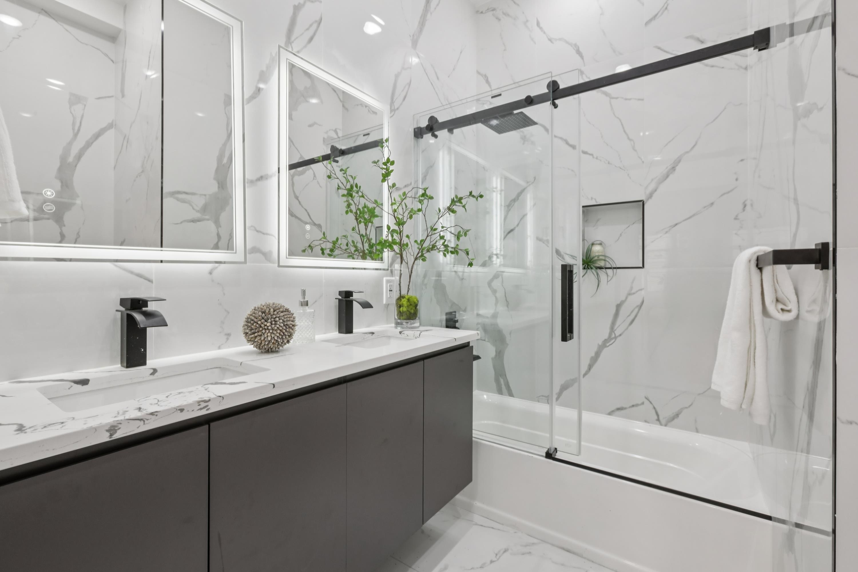 Eligible for a 5-year tax abatement and a special interest rate program with 5.375% (no PMI) and only 5% down, this home offers an incredible opportunity to experience the best of modern city living. Nestled in the vibrant Jersey City Heights neighborhood this stunning new construction duplex condo is 4-bedroom, 2.5-bathrooms offering over 2,000 square feet of modern elegance and thoughtfully designed living space. Upon entry, you’re welcomed into a bright open concept living and dining area, filled with natural light from expansive windows and enhanced by real oak hardwood floors throughout. The modern European-style kitchen serves as the focal point of the home, featuring a sleek quartz waterfall island, stainless steel appliances, ample storage, and contemporary finishes — perfect for both everyday living and entertaining. The main level offers two spacious bedrooms and a full bathroom, providing flexibility for guests, a home office, or family use. The upper level hosts two additional bedrooms and one-and-a-half baths, including a serene primary suite with a spa-like en-suite featuring a glass-enclosed shower and refined fixtures. Completing the home are desirable features such as in-unit laundry, abundant closet space, and a serene deck patio that extends your living space outdoors. Located in the heart of Jersey City Heights, residents enjoy easy access to local shops, trendy restaurants, parks, and transportation — offering the perfect blend of neighborhood charm and urban convenience.