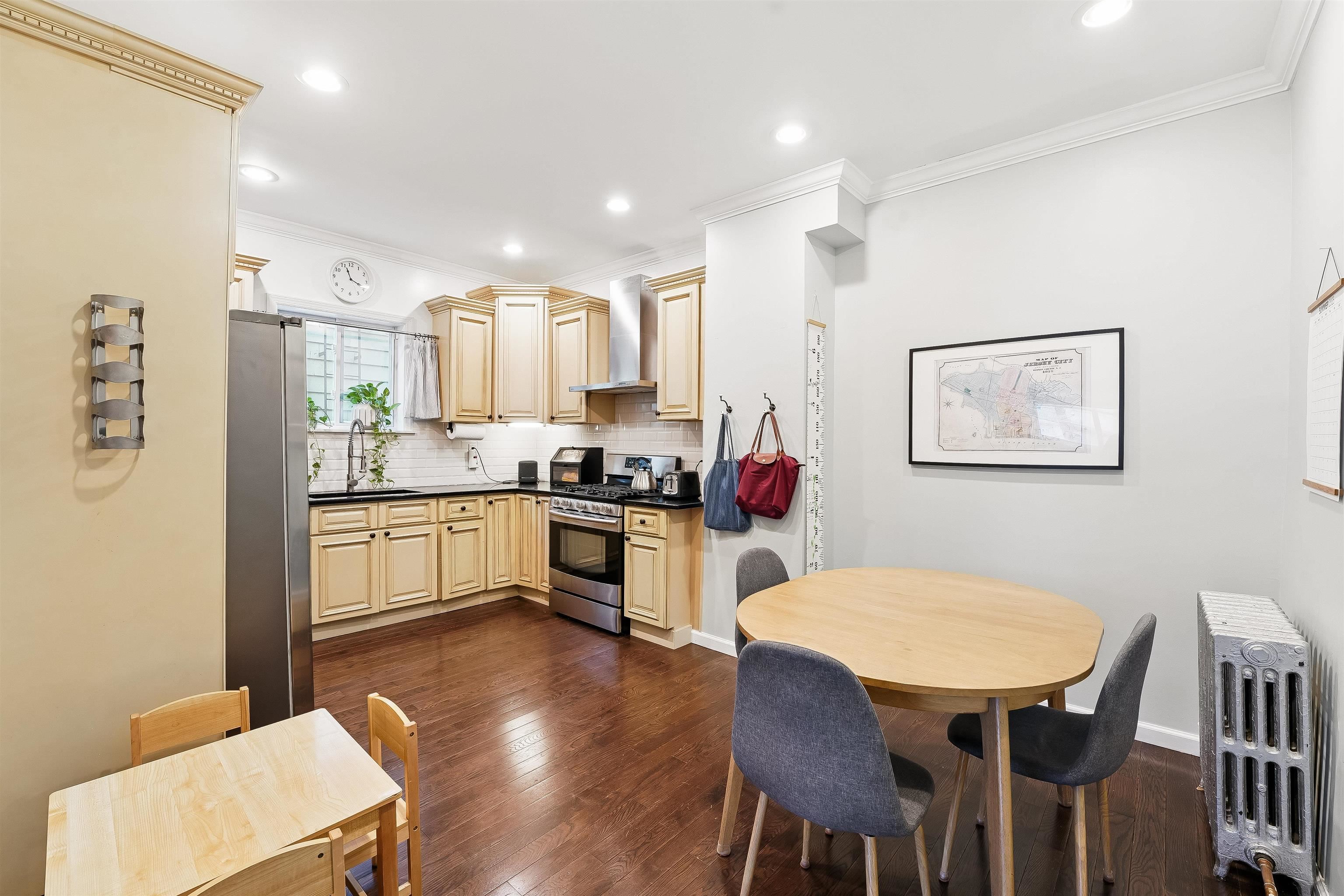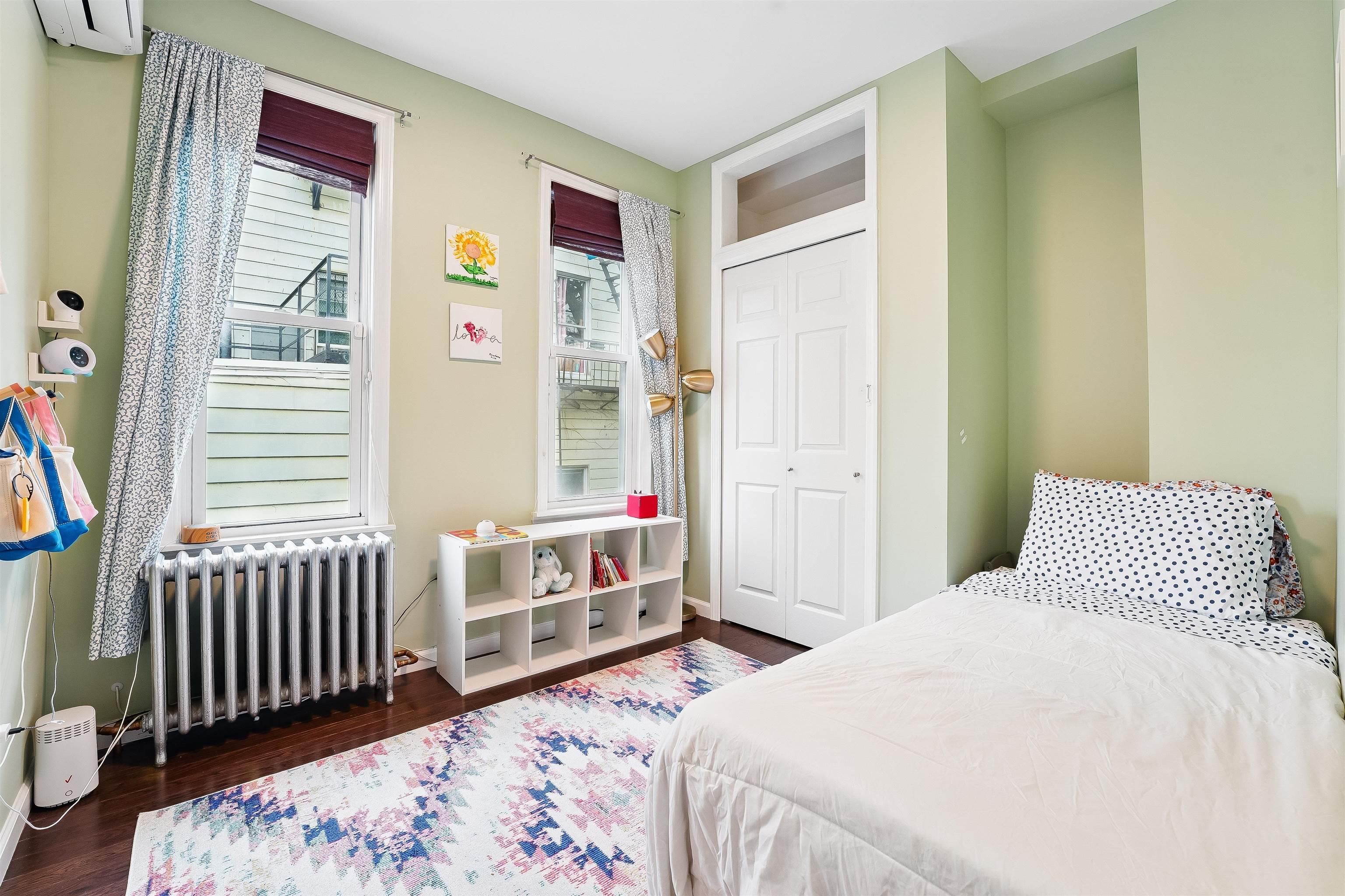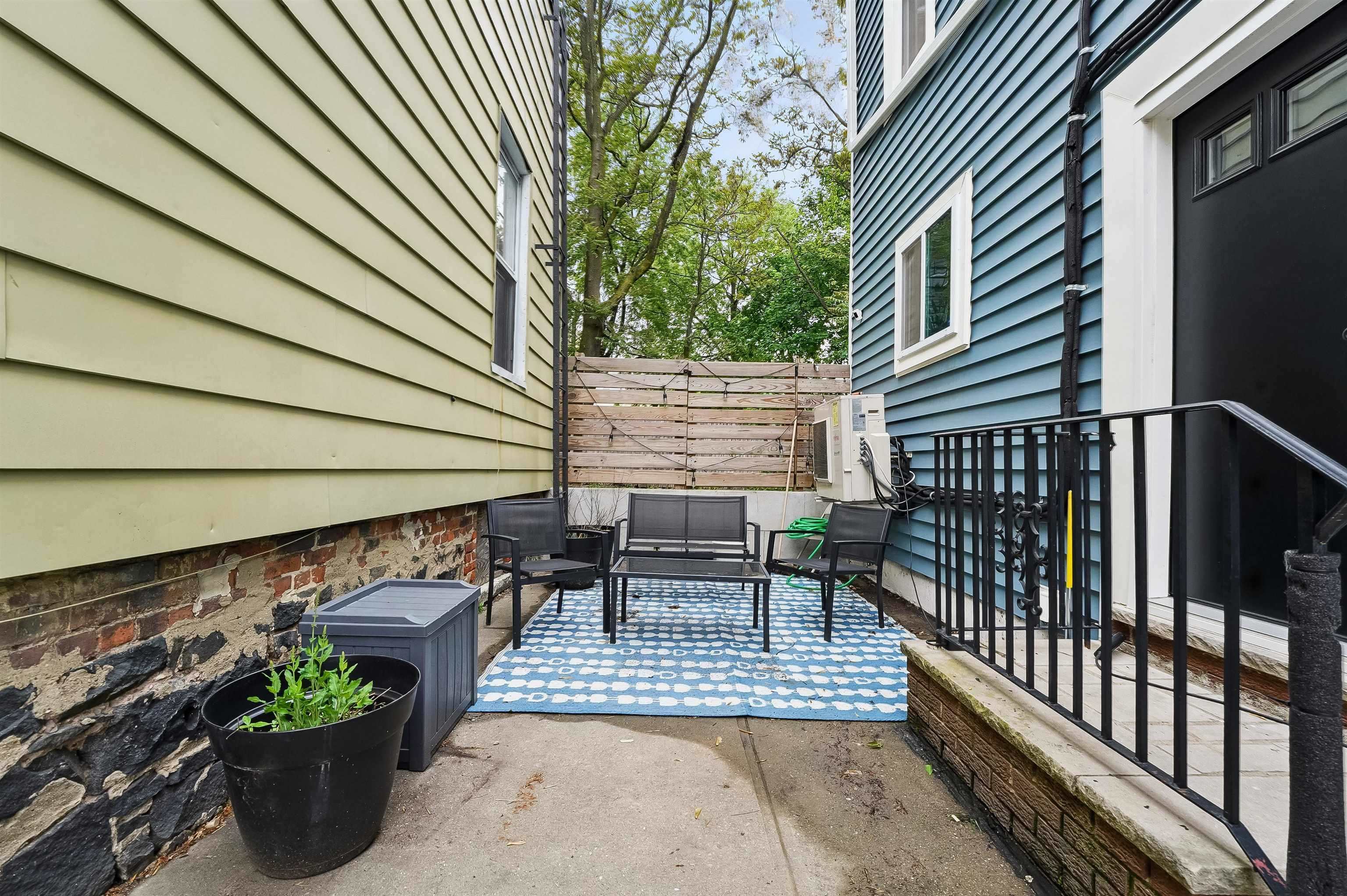 This move-in-ready home checks every box with private gated parking, outdoor space, and generous living areas ideal for entertaining. It offers 2 spacious bedrooms plus a home office or potential 3rd bedroom and 1.5 updated baths. The sun-filled living room features high ceilings, hardwood floors, and a powder room, flowing into a bright eat-in kitchen with ample cabinetry, under-cabinet lighting, and a vented stove. Comfort is ensured year-round with new mini- splits throughout. Enjoy gated parking plus an extra city-permitted spot and a private garden, perfect for BBQs and quiet evenings. The unfinished basement provides abundant storage, a full-size washer/dryer, and whole-house water filtration. Ideally located near parks, shops, cafés, and transit for a quick NYC commute.