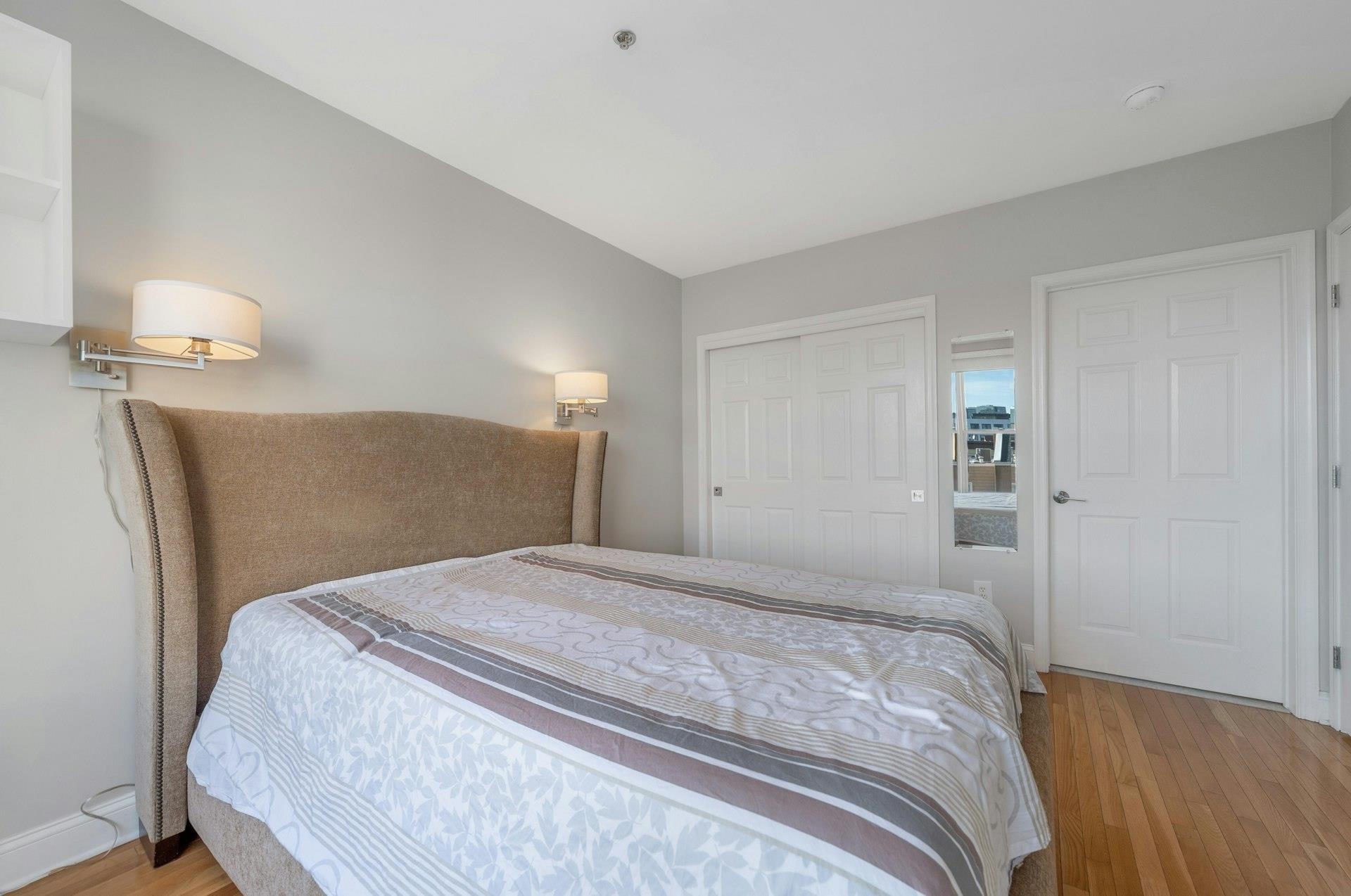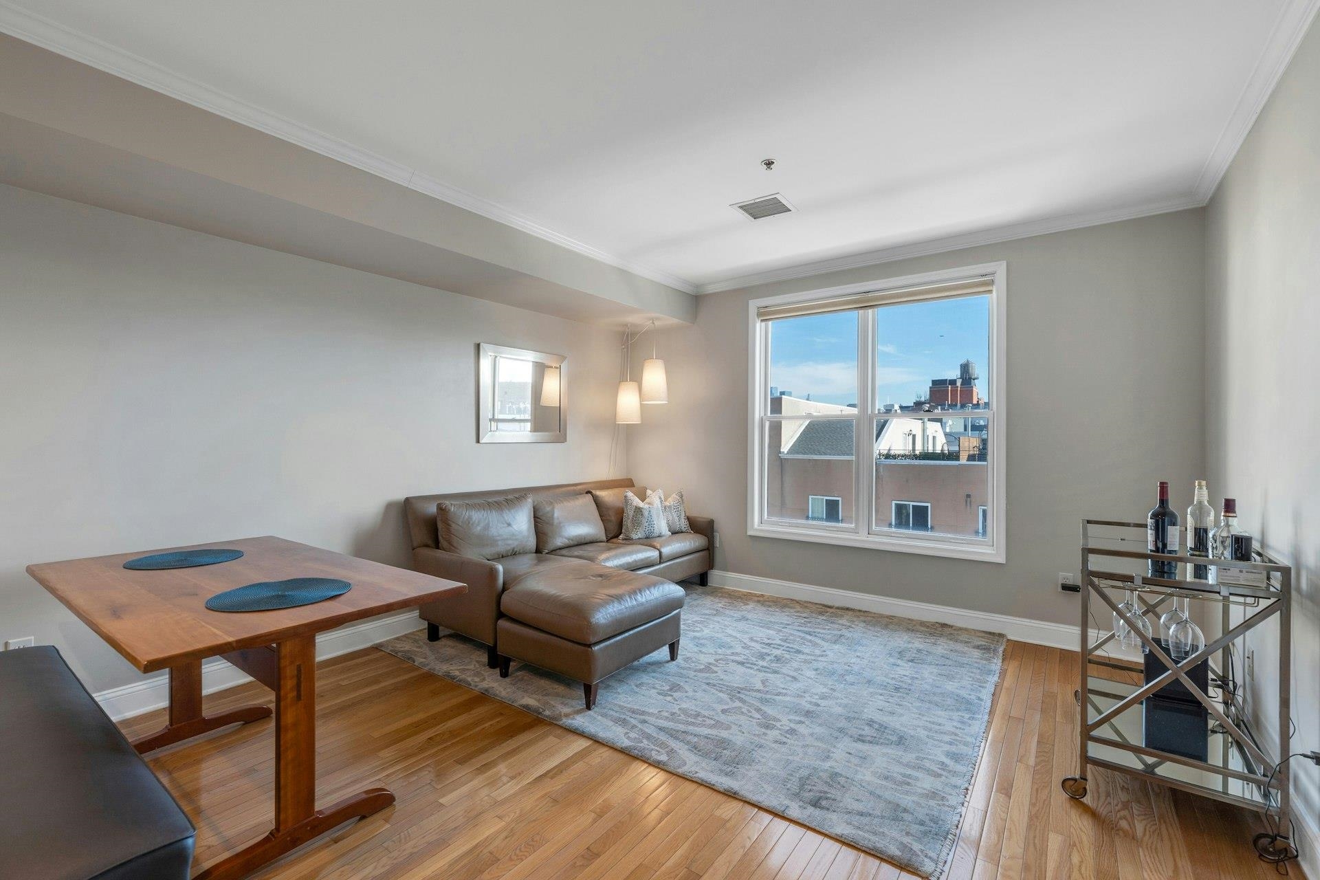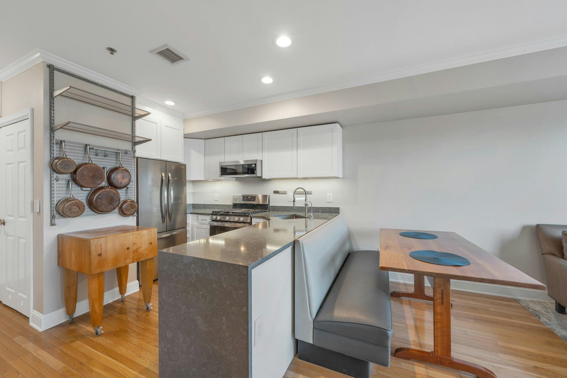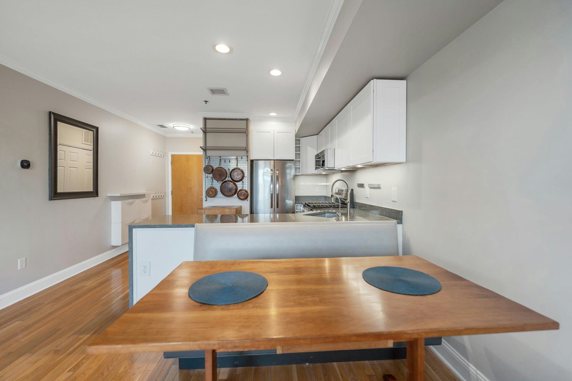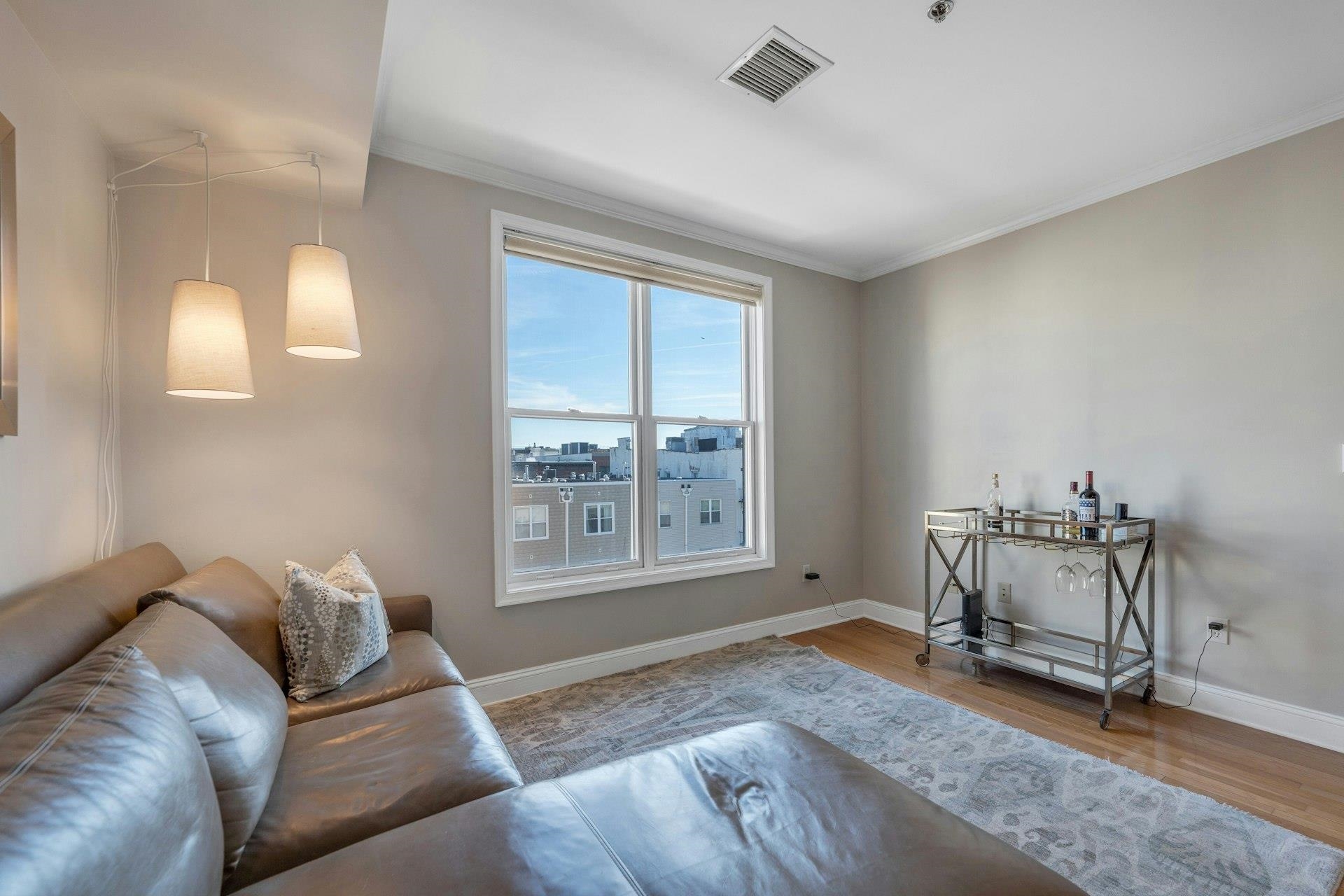 Sunny and bright Top-Floor Condo in an elevator building with Empire State Building views. Upgraded open kitchen includes waterfall quartz countertops and room for a dining room table! Ideal for entertaining. It is easy to park in the deeded parking space which has additional storage in front. Oversized bathroom and crown moldings complete this move-in-ready oasis. Charles Court owners enjoy a FULLY equipped exercise room. Recently upgraded Stainless steel appliances, new water heater and HVAC, and your own in home washer and dryer, make this a do not miss home.