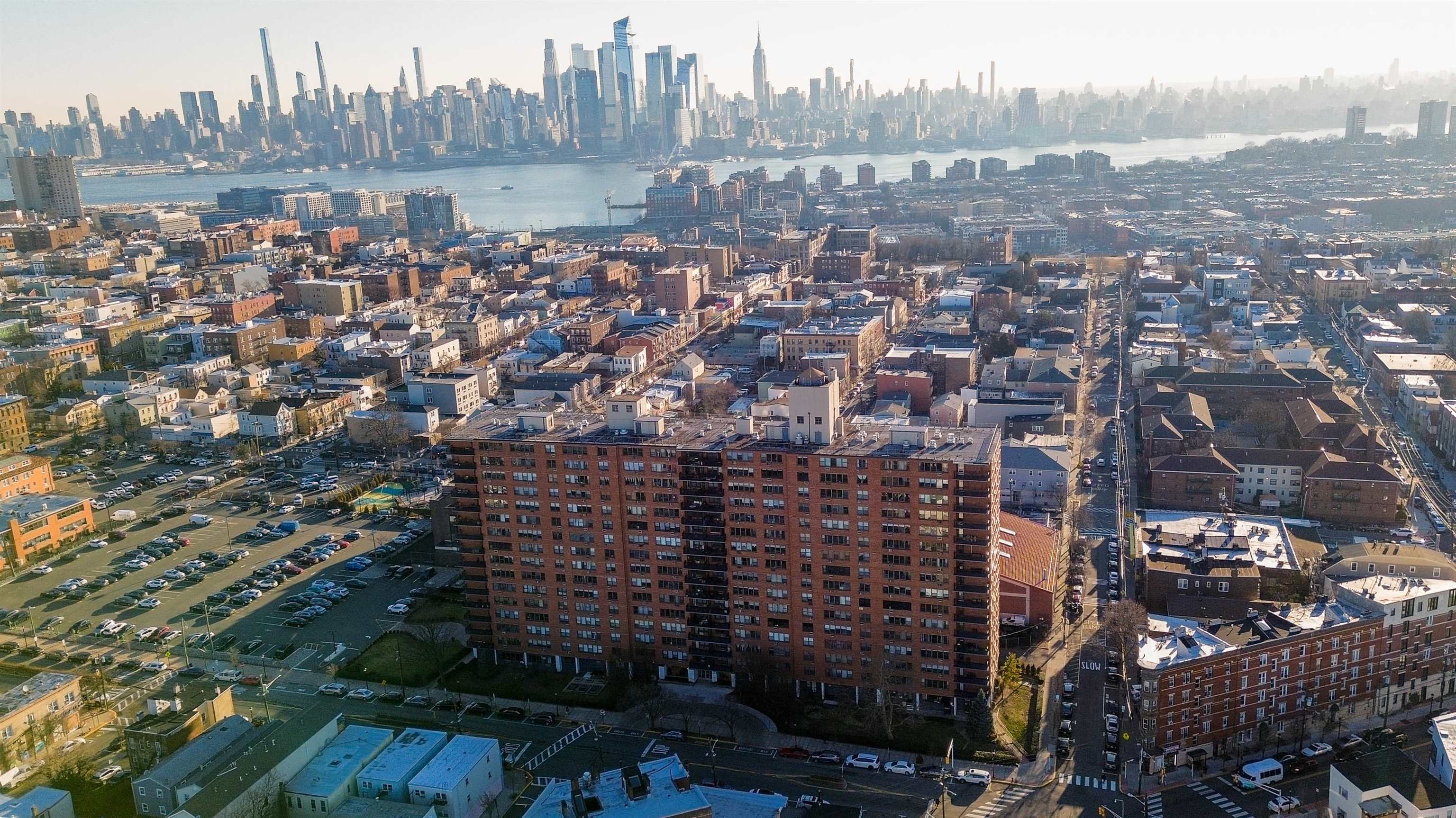 The Union City is situated atop the ridge of the lower Hudson Palisades. Due to a high elevation, the city offers clear views of surrounding municipalities like New Jersey Meadowlands and New York City Skyline. It shares its borders with other parts of Hudson County, such as Jersey City, Hoboken, Weehawken, North Bergen and West New York.