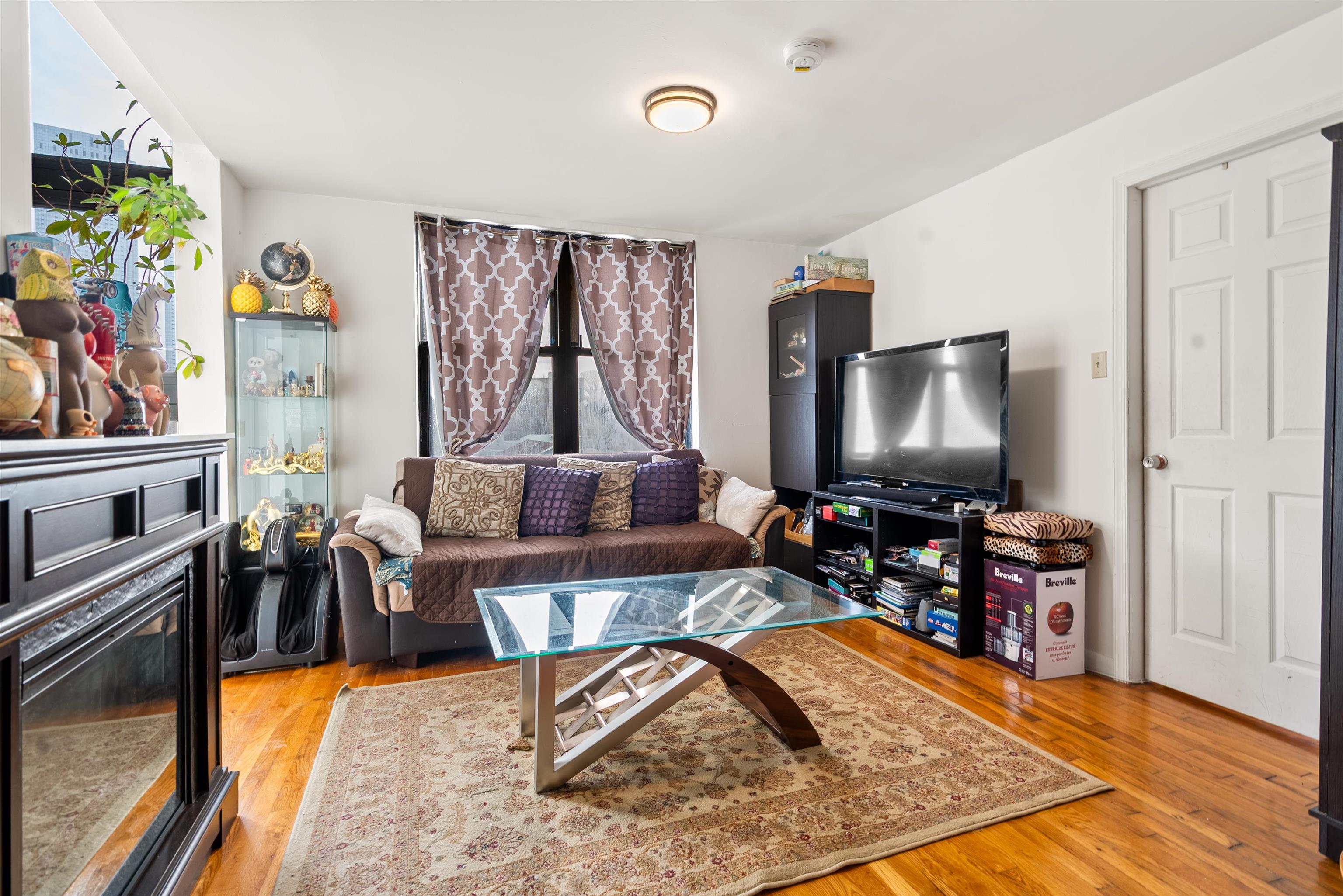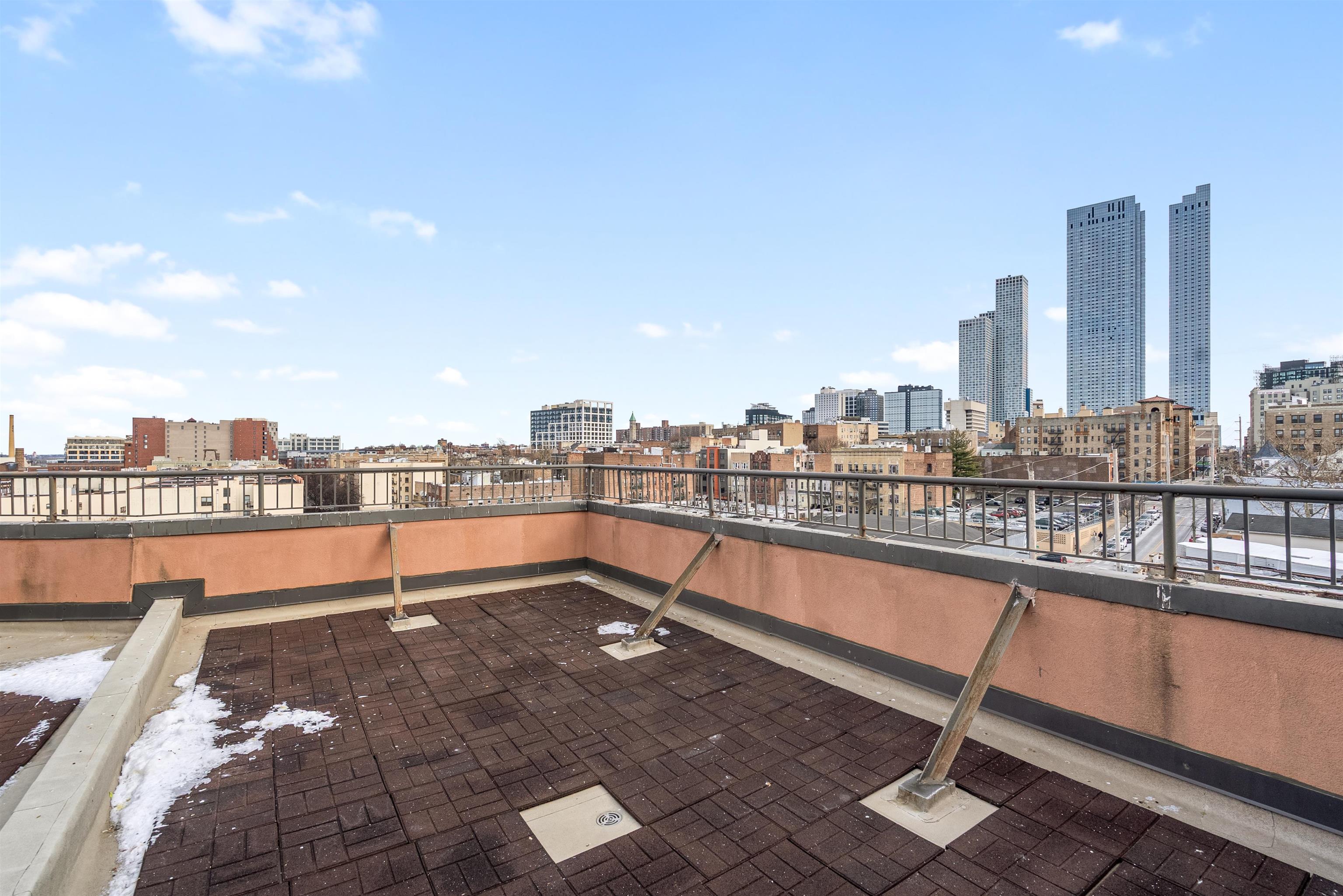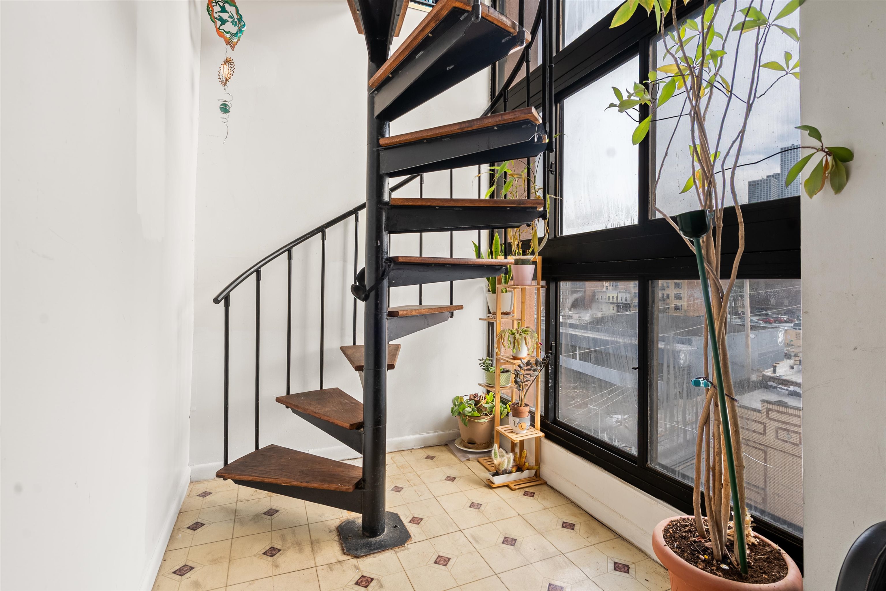 Value-add opportunity in a prime Journal Square location. This spacious 2-bedroom, 1-bath condo offers 810 sq ft of interior living space plus a rare 300 sq ft private roof deck an exceptional amenity that enhances both resale and rental appeal. Located on the 6th floor of an elevator building, the unit features an open kitchen with a pass-through to the dining/living area and a spiral staircase leading to the private rooftop. The building offers a common laundry room conveniently located on the same floor and a shared gym/fitness room. Includes a dedicated parking space in a secured lot an increasingly valuable feature near mass transit. Nearby the Journal Square PATH train with easy access to NYC, Hoboken, Harrison, and Newark. This home presents an excellent opportunity for an investor or end user to add equity in a high-demand, transit-oriented neighborhood.
