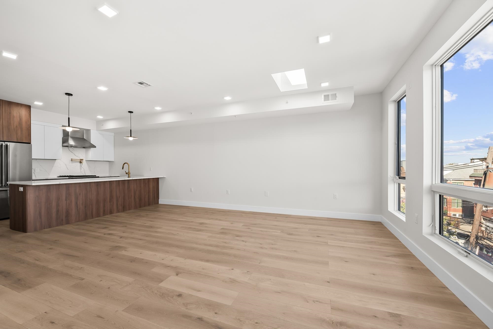 Fully renovation beautiful and spacious three 3b/2b unit located in desirable Jersey City Heights. This sunlit top-floor residence offering 3 spacious bedrooms, 2 full baths with elegant double vanities, and a private rooftop deck with sweeping skyline views. Extra storage room available in the basement. Outfitted with brand new Viking stainless steel appliances, custom cabinetry, hardwood floors, and in-unit laundry, this home seamlessly blends luxury and convenience. Located on a peaceful street with easy access to NYC-bound buses and shoppings.