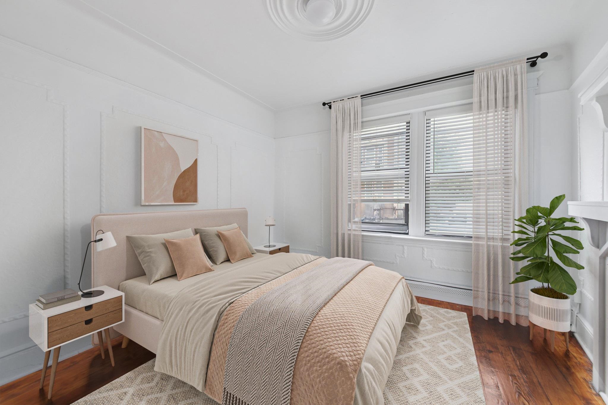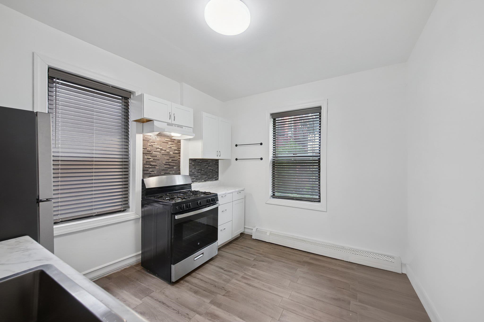 This spacious first-floor apartment offers three bedrooms and one bathroom. Step inside to a modern kitchen with sleek stainless steel appliances, complemented by classic prewar moldings throughout each room. The bathroom is updated with a clean, contemporary design, while the apartment as a whole radiates warm prewar charm with real wood floors throughout the bedrooms and living room. Beyond the apartment, the location can’t be beat. Just steps from Journal Square, commuting to New York City is quick and easy with multiple transportation options nearby. You’ll also be only minutes from Liberty State Park via car, where you can enjoy waterfront views of the Manhattan skyline and the Statue of Liberty. The neighborhood is vibrant and diverse, offering a variety of shops, cafes, and some of the best Italian, Thai, and Korean restaurants in New Jersey—all within walking distance. —schedule a viewing today!