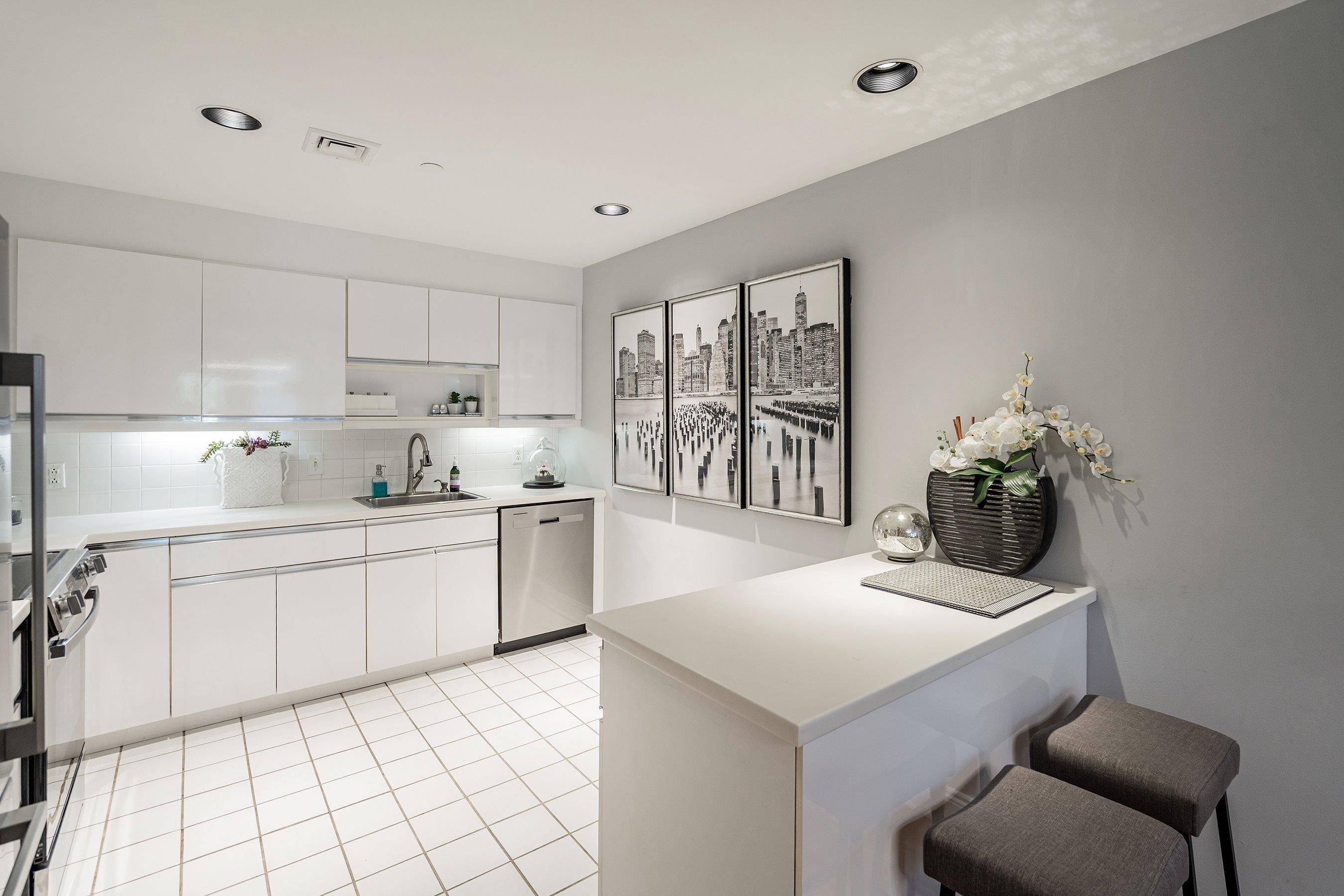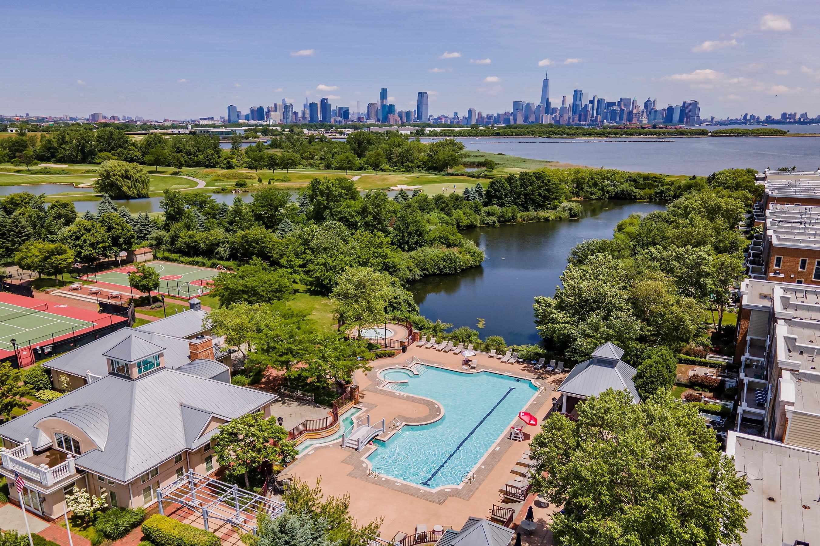 Port Liberte - Stylish, Spacious and Smart are the best words to describe this home. Condo offers over 960 sf of sophisticated ambience. Step into the formal entry and there is an abundance of closets, with both coat and linen. It’s all here in this open floorplan 1 bedroom/1.5 bath home with your very own balcony and space galore. The open living and dining rooms will accommodate just about any sized furnishings. Great for your many get-togethers the home offers and open kitchen that will delight the would-be gourmet. Kitchen offers brand new stainless steel appliances an abundance of cabinets and oversized corian workspaces. The hallway powder room with its pedestal sink is great for guests. The primary suite is separate and private with two double walk-in closets and built-in cabinetry. Bedroom closets are large enough to make into an office/desk area. There is a full size washer/dryer within the suite. Hotel style bath with white marble and jacuzzi tub. Home also features garage parking and central air conditioning. Port Liberte offers world class amenities with two resort style pools, tennis courts, basketballs courts, tot lot, waterfront walkways, 24 hour gated security and a professional fitness center. The maintenance fee covers all of the amenities, garage parking, water and your heat. Easy commute to NYC via on-site ferry to Downtown NYC or ride the shuttle to the Grove St. Path.