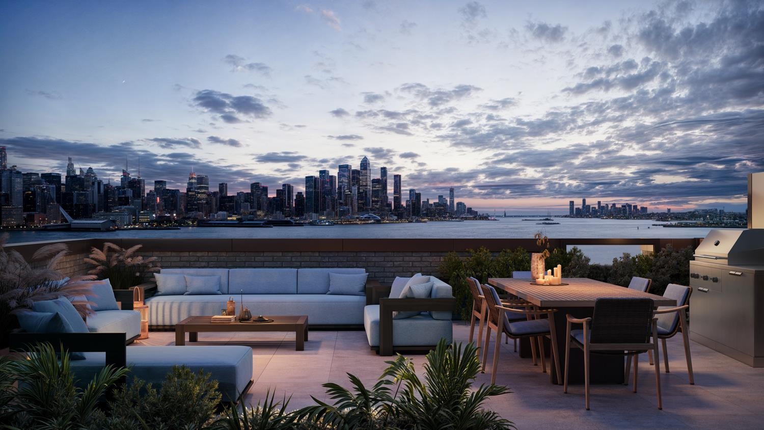 Experience elevated urban living with Residence 4K at Vista Pointe at Port Imperial, West New York’s newest premier condominium community. This thoughtfully designed 1380 sq. ft. two-bedroom, two-bathroom home blends modern form with refined function. Expansive south-facing windows overlook a landscaped courtyard and offer views of NYC. White oak floors and 9' ceilings create a lofty feeling throughout. The open-concept kitchen effortlessly integrates the living and dining areas and is appointed with custom painted matte gray cabinetry, quartz countertops, and Bosch and Thermador appliances – including a gas stove. The home includes a full-sized Whirlpool washer and dryer. The primary suite offers a peaceful retreat, featuring a spacious layout with a walk-in closet and a spa-inspired ensuite bathroom with dual custom vanities, Kohler fixtures, and elegant porcelain tile accents. The second bedroom offers remarkable versatility, featuring a walk-in closet easily adapting to either a comfortable bedroom or a sophisticated home office, providing both comfort and functionality for a range of lifestyle needs. Located at 8 Avenue at Port Imperial on the Hudson River waterfront-- with the New York City skyline as a backdrop-- the 9-story building features 73 residences. Homes range from 1- to 4-bedrooms, with many larger homes offering dens. Residents enjoy access to world-class amenities, including an attended lobby, children’s playroom, game room, pet wash, fitness center, steam room & sauna, library, café, maker space, demonstration kitchen, seasonal outdoor pool, outdoor grills, and terraces on the third floor and rooftop. Every home comes with an EV-enabled parking space. Located just moments from the Port Imperial NY Waterway Ferry station, with easy access to the NJ Transit bus to Port Authority NYC, Vista Pointe at Port Imperial offers unparalleled convenience and sophistication.