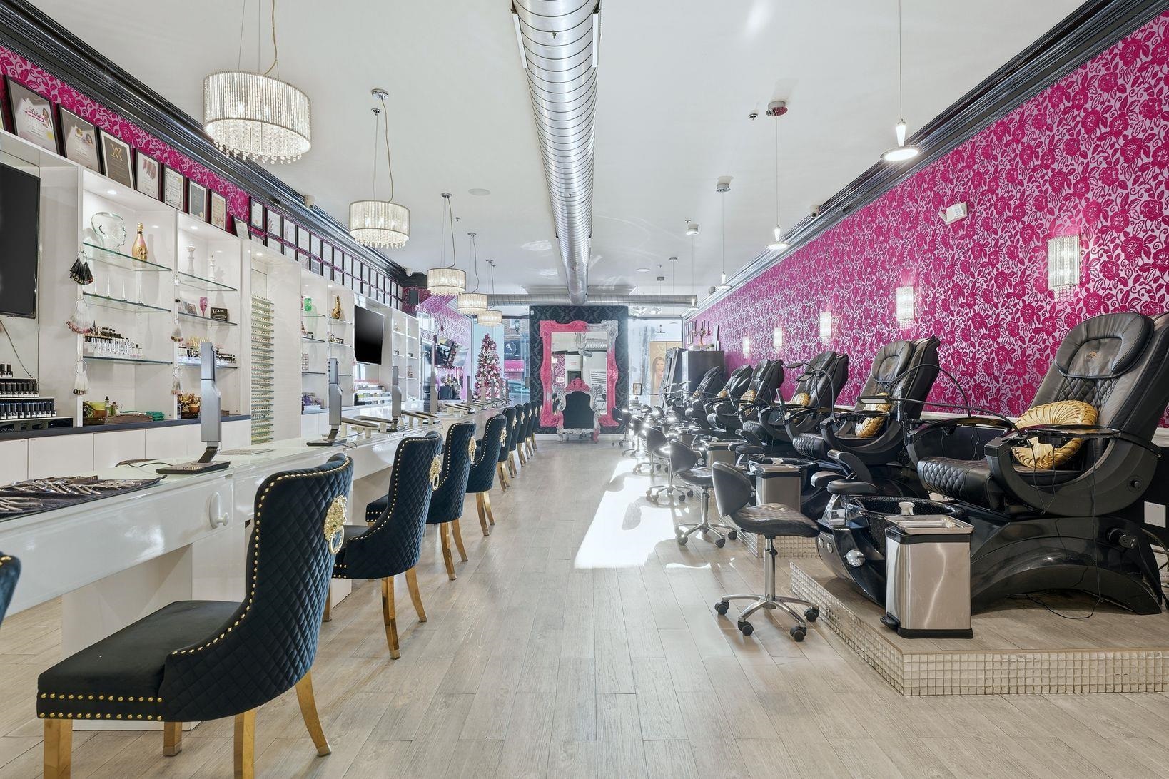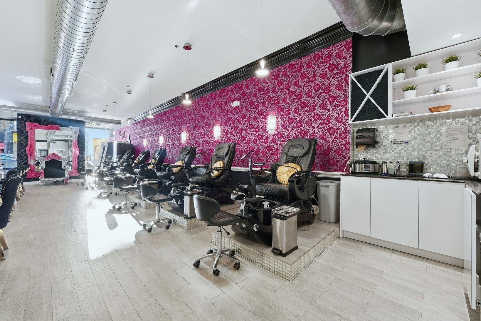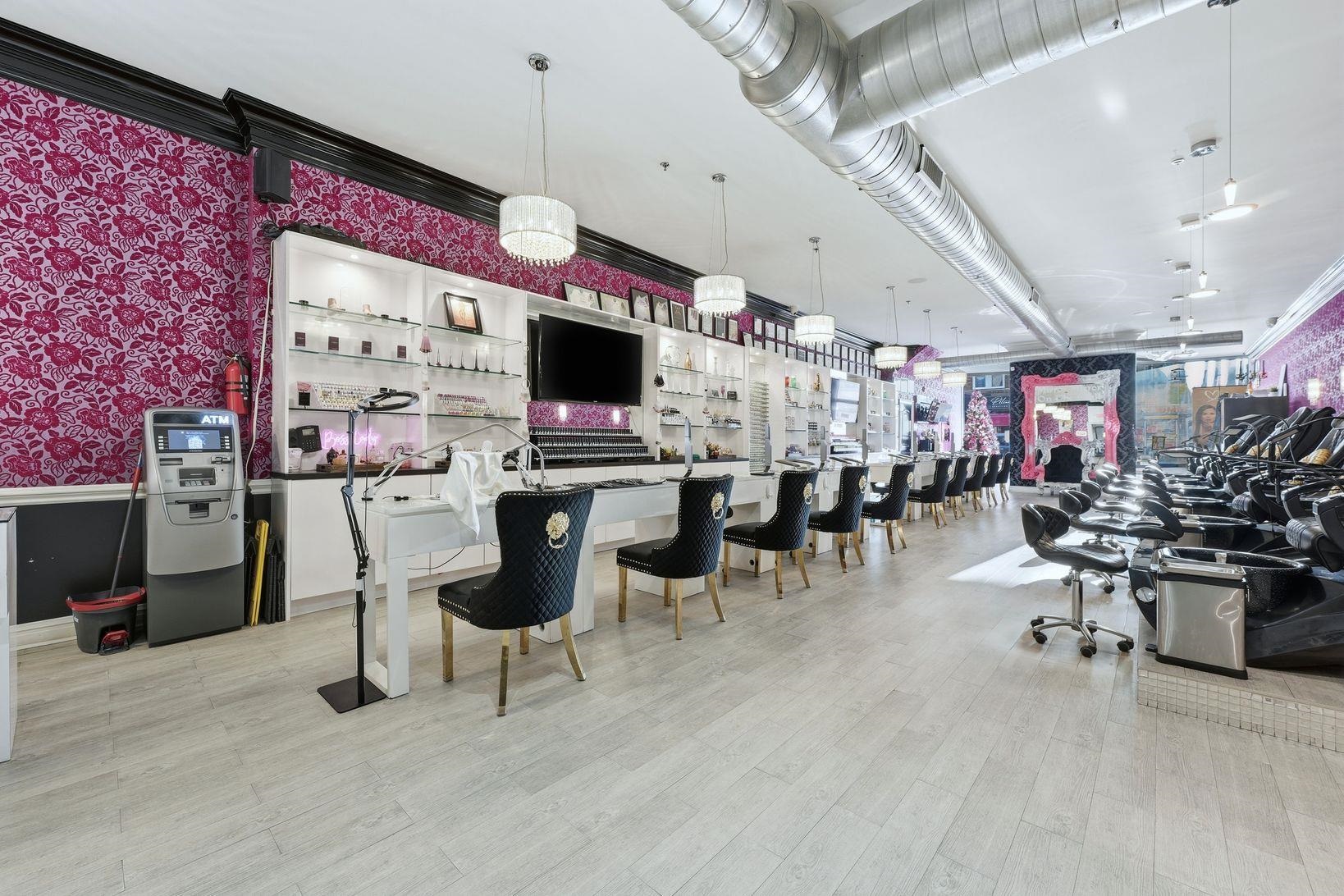 Step into a beautifully designed upscale nail salon and spa, offering a refined atmosphere and a fully built-out, turnkey operation. This sophisticated space blends modern elegance with comfort, creating an inviting experience for a loyal and growing clientele. The salon features a stylish reception and retail area with custom cabinetry, designer lighting, and premium finishes throughout. The open yet thoughtfully arranged layout allows for a seamless flow between manicure, pedicure, and spa service areas, while maintaining privacy and relaxation. The spa is equipped with high-end manicure stations and luxury spa pedicure chairs, all meticulously maintained. Additional private treatment rooms provide flexibility for spa services such as waxing, facials, or specialty treatments. Every detail — from flooring to fixtures — reflects a high-end brand aesthetic. Public Parking available in front or behind the building.